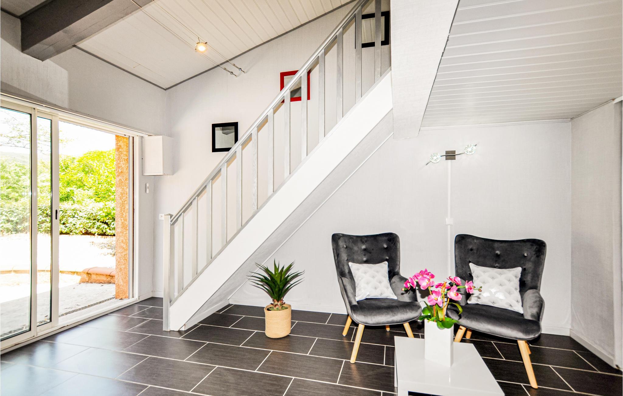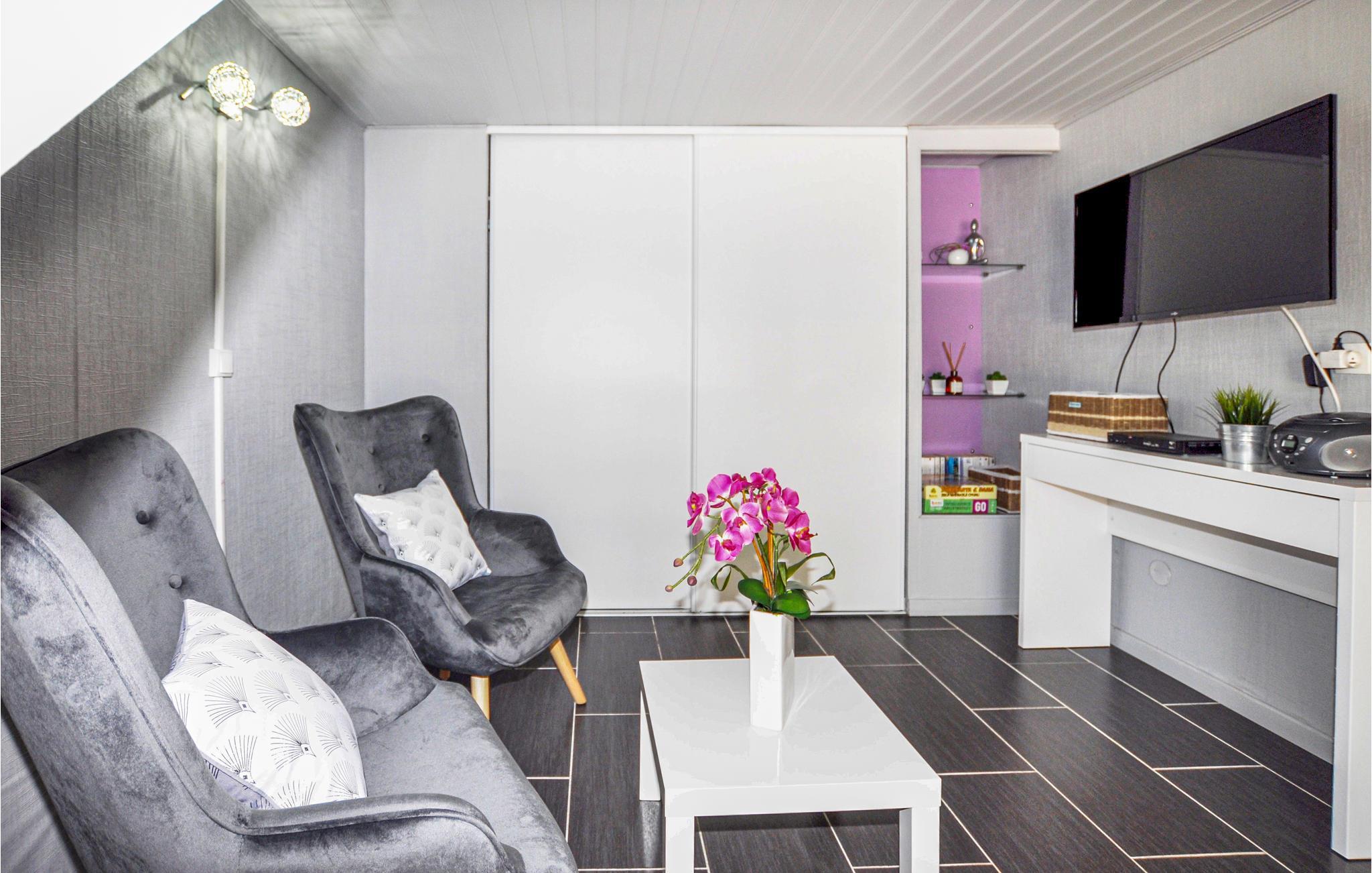 Dieses Ferienhaus bietet Ihnen eine authentische Fassade und modernes Design, das von schwarz-weißen Einrichtungen und leichten Farbakzenten geprägt ist. Dasselbe ist ideal für zwei Personen, die ausreichend Platz, Ruhe und Entspannung genießen wollen. Nutzen Sie den Grill auf der Terrasse, um gemeinsame Stunden und Abende besonders schön ausklingen zu lassen, oder setzen Sie sich schon am Morgen ins Freie, um die ersten Sonnenstrahlen willkommen zu heißen.