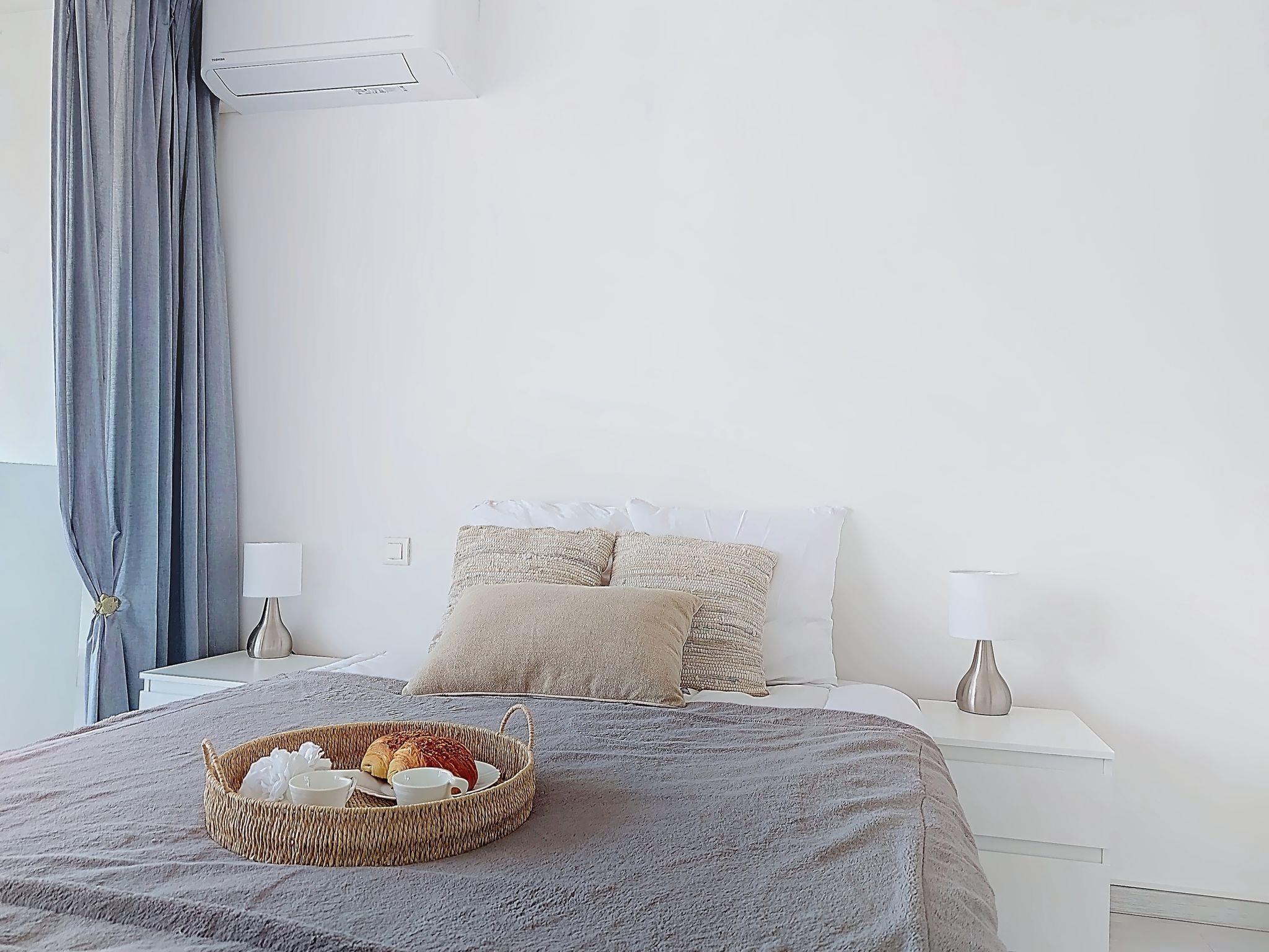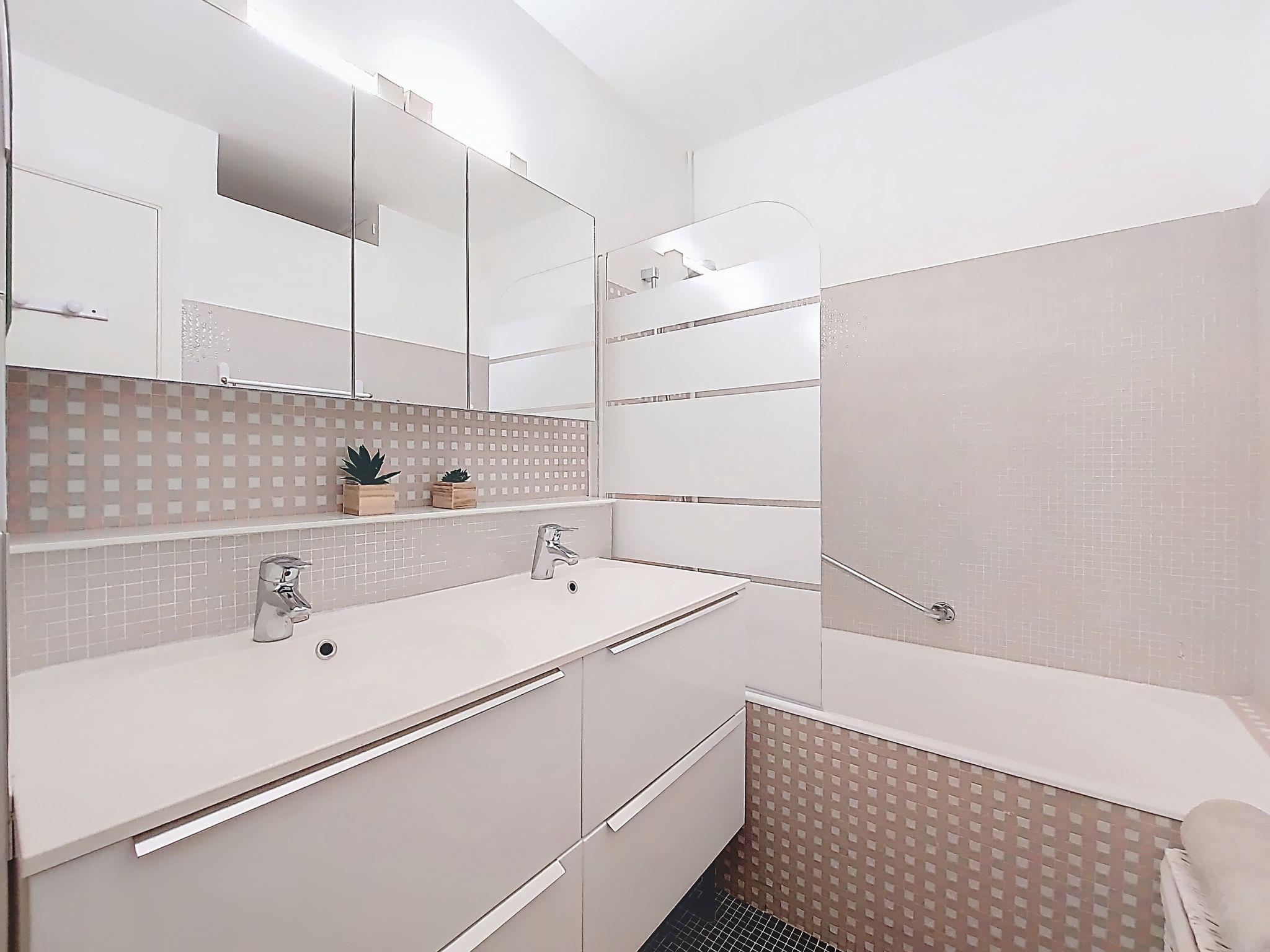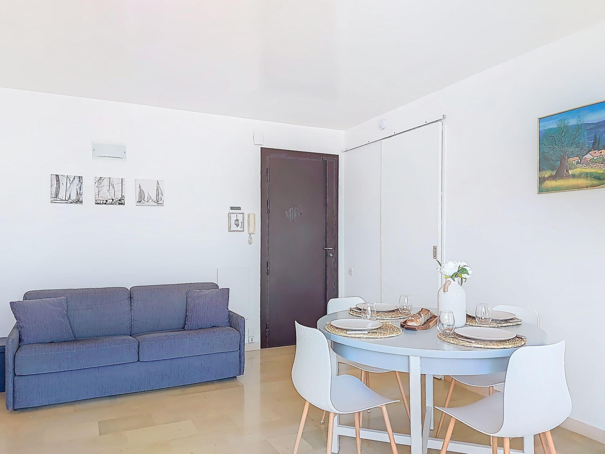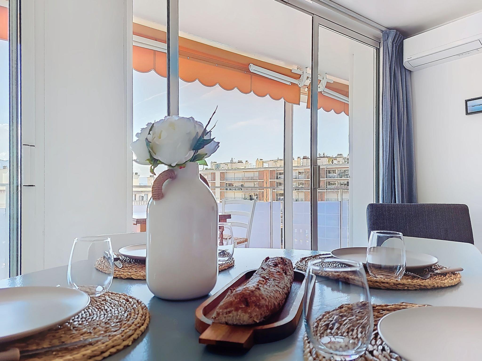 2-room apartment 47 m2 on 4th floor. Bright, comfortable furnishings: living/dining room with 1 double sofabed (140 cm, length 190 cm), flat screen and air conditioning. Exit to the terrace. 1 room with 1 double bed (140 cm, length 190 cm), air conditioning. Exit to the terrace. Kitchen (oven, dishwasher, 3 ceramic glass hob hotplates, toaster, kettle, microwave, electric coffee machine). Exit to the terrace. Bathroom, sep. WC. Large terrace 15 m2, east facing position. Terrace furniture, sitting area. View of the sea, the mountains and the resort. Facilities: washing machine. Internet (WiFi, extra). Parking. Please note: parking space for small car only. 1 small pet/ dog allowed. Smoke alarm. Offer by a private individual according to Art. 155, IV of CGI. 06104001557LR