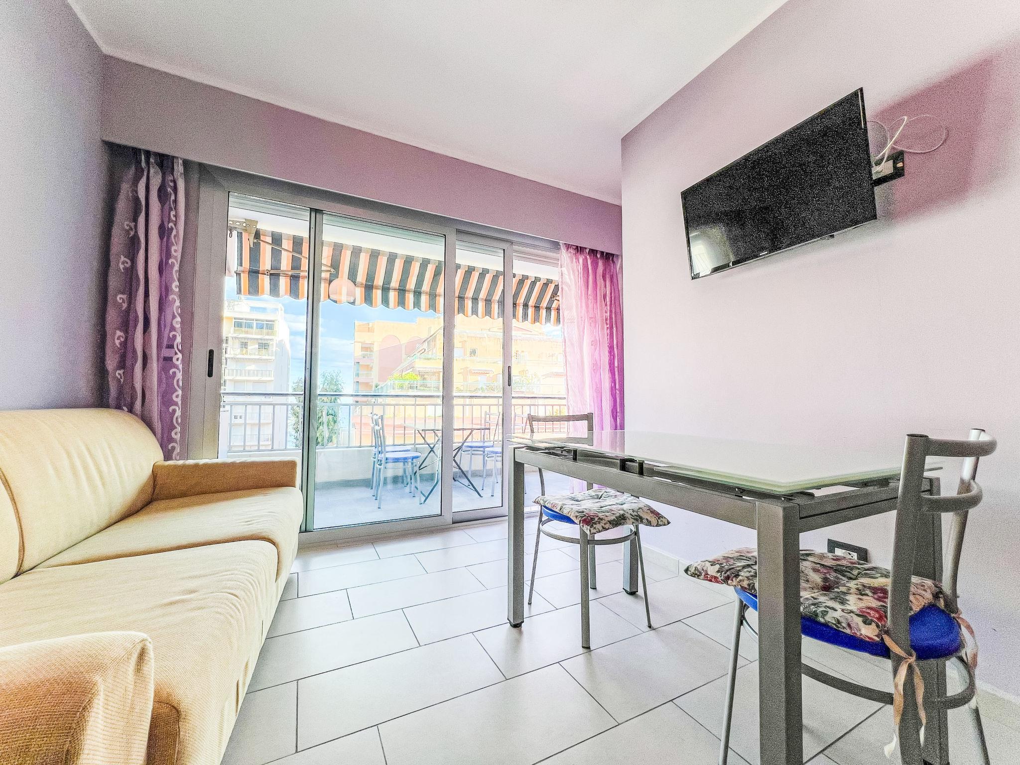"JAD", 2-room apartment 34 m2 on 3rd floor, south-east facing position. Comfortable furnishings: living/dining room with 1 double sofabed (140 cm, length 180 cm), TV. Exit to the balcony. 1 room with 1 french bed (160 cm, length 190 cm), air conditioning. Exit to the balcony. Kitchenette (oven, 2 induction hot plates, toaster, kettle, freezer, electric coffee machine). Shower/WC. Air-conditioning. Balcony 10 m2, south-east facing position. Balcony furniture. Facilities: washing machine. Parking space n 55 (1 car). Please note: non-smokers only. Smoke alarm. Offer by a private individual according to Art. 155, IV of CGI. 06104001723KF