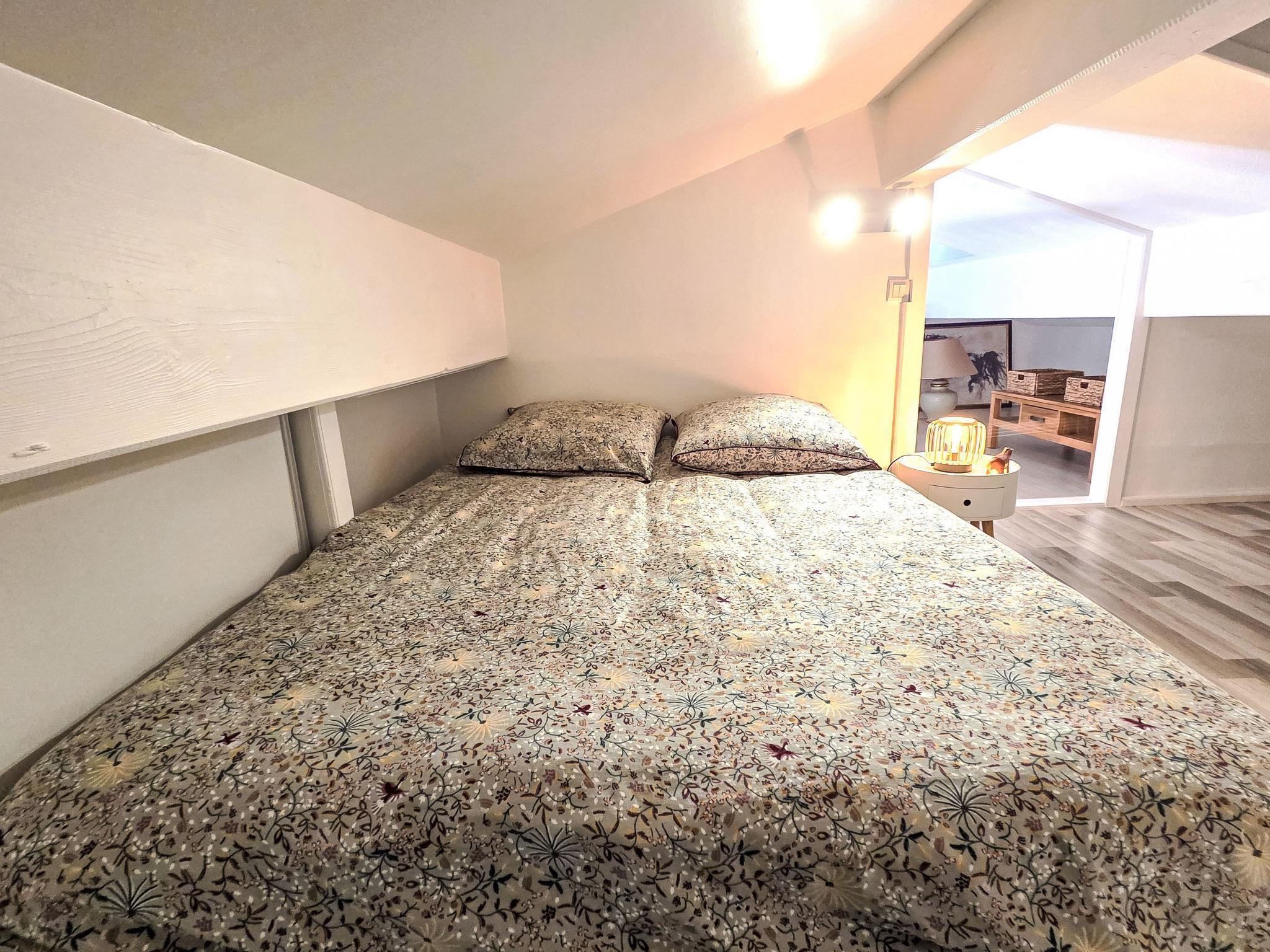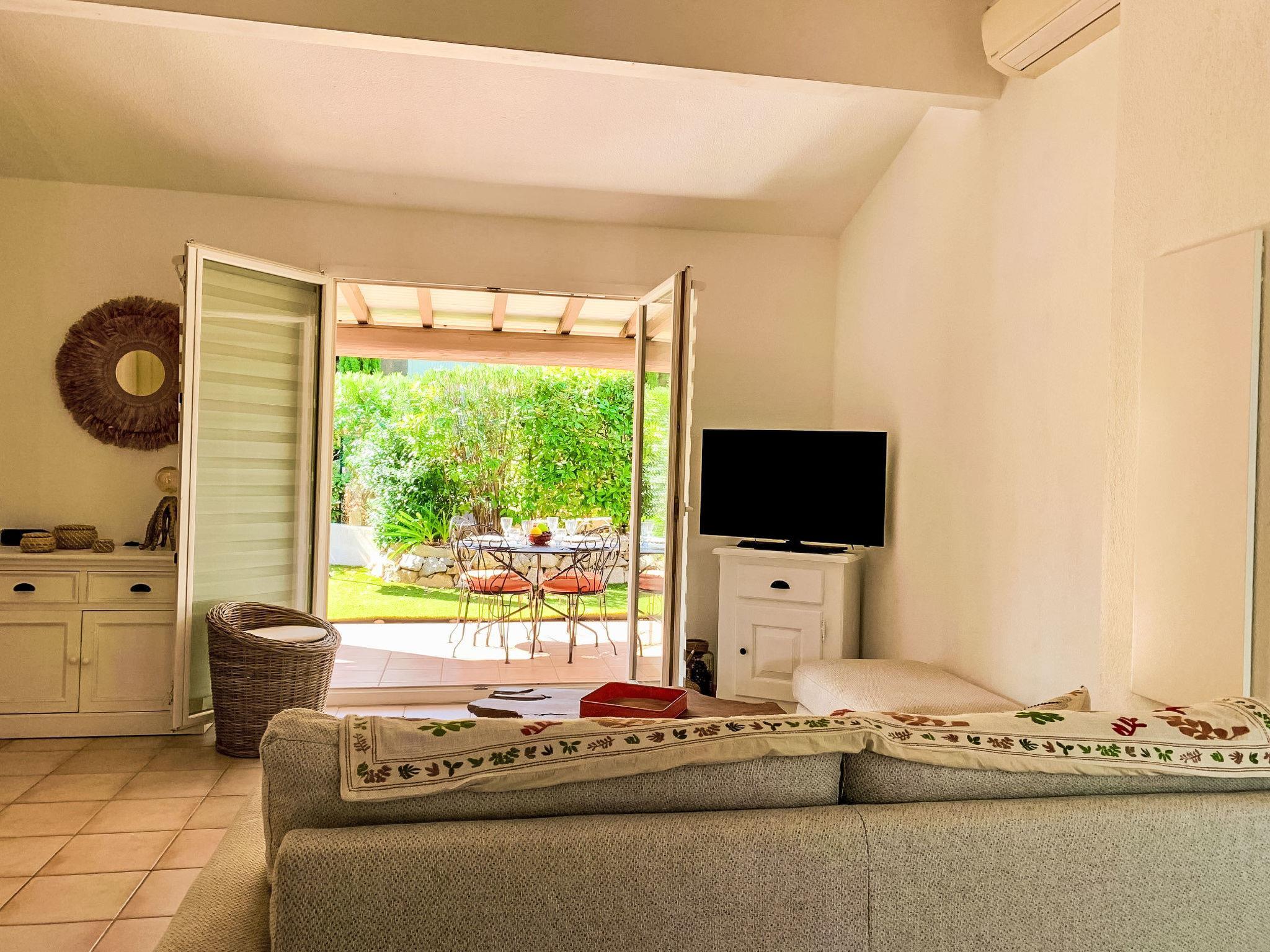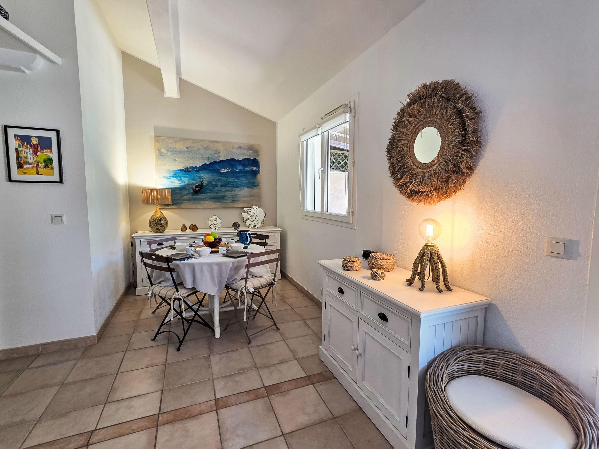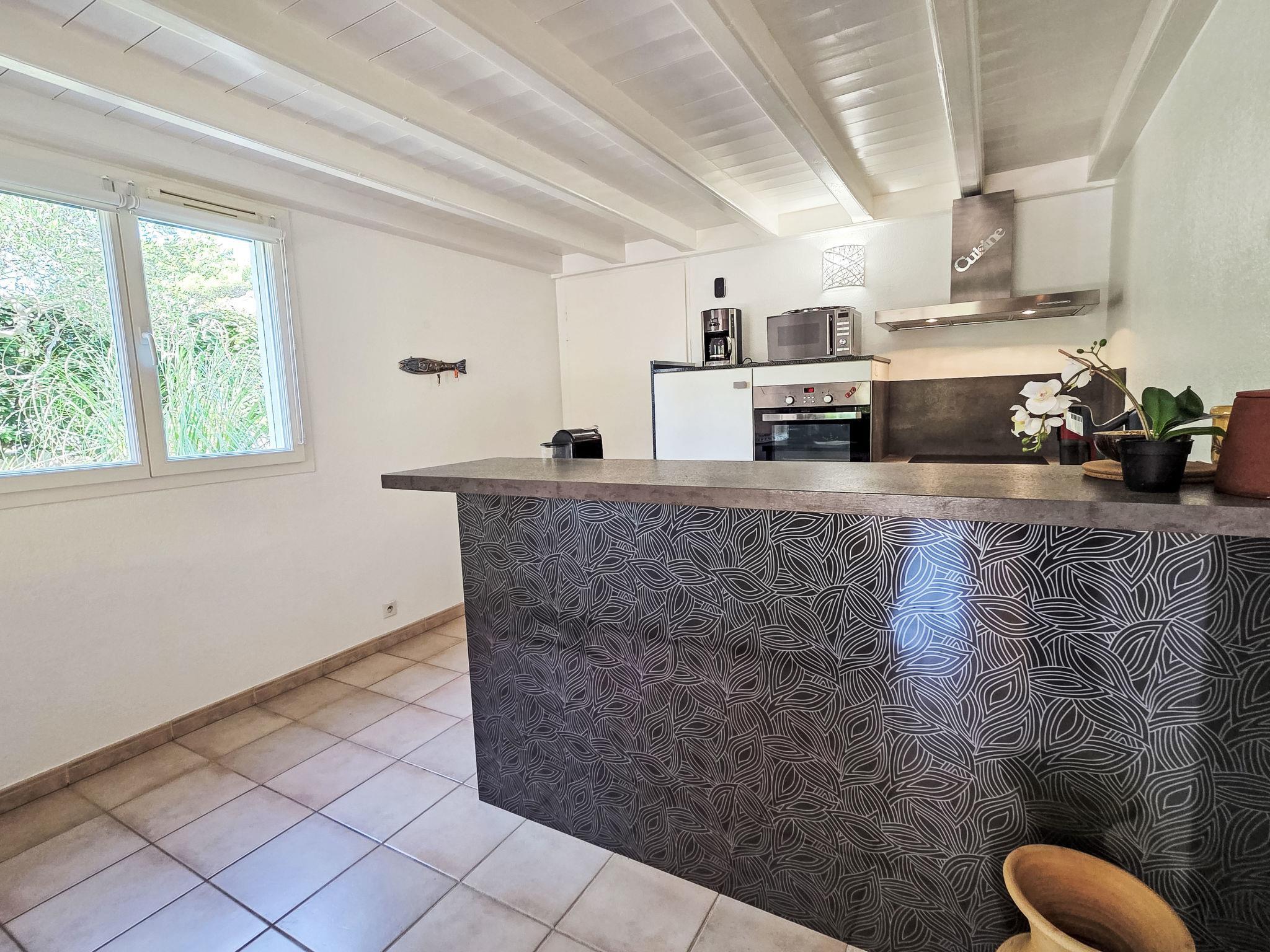 3-room terraced house 74 m2, on the ground floor. Modern furnishings: living/dining room with TV (flat screen). Exit to the terrace, to the patio. 1 room with 1 french bed (1 x 160 cm, length 190 cm). 1 large room 26 m2, with sloping ceilings with rooflight with 1 french bed (1 x 140 cm, length 190 cm), air conditioning. Open kitchen (oven, dishwasher, 4 induction hot plates, toaster, kettle, microwave, freezer, electric coffee machine, Capsules for coffee machine (Nespresso) extra). Shower, sep. WC. Electric heating. Terrace 420 m2, large patio 70 m2. Terrace furniture, electric barbecue. Facilities: iron, hair dryer. Internet (WiFi, free). Parking space n 78 (2 cars). Please note: smoke alarm. Offer by a private individual according to Art. 155, IV of CGI. 83107002152U6
