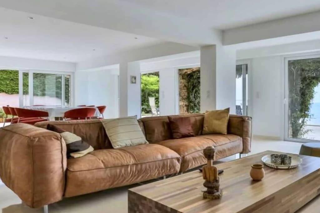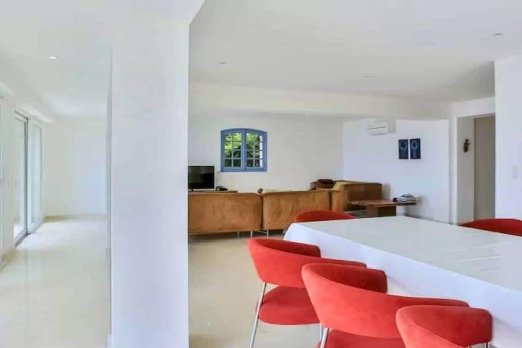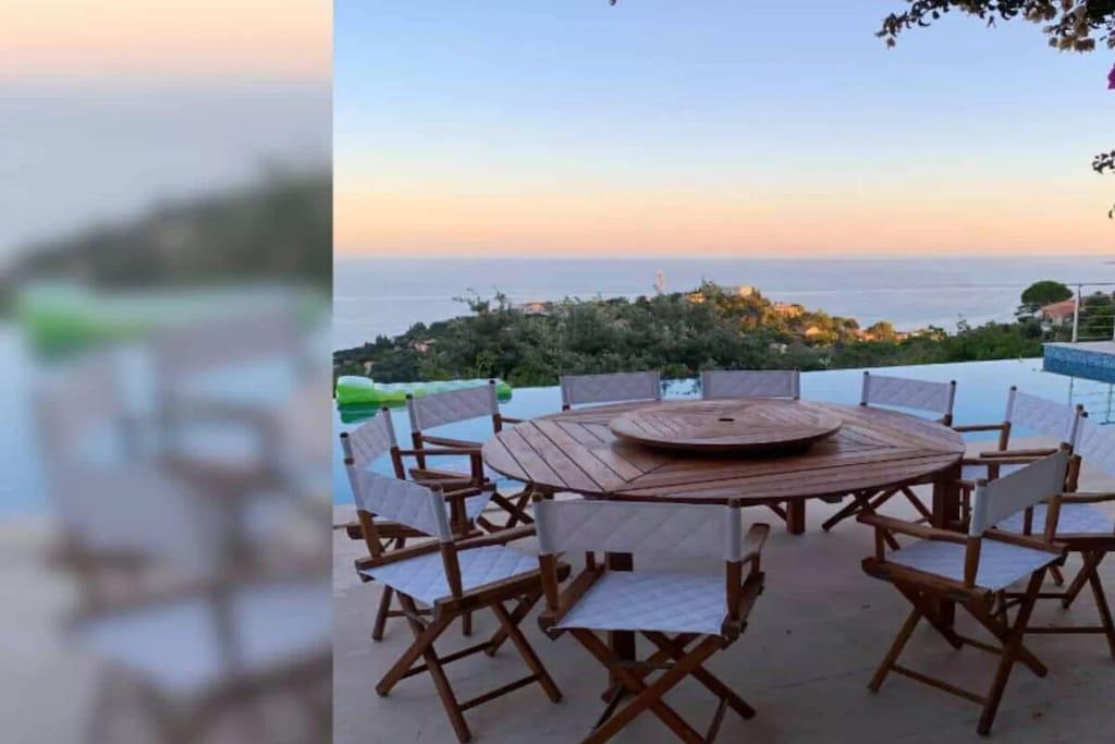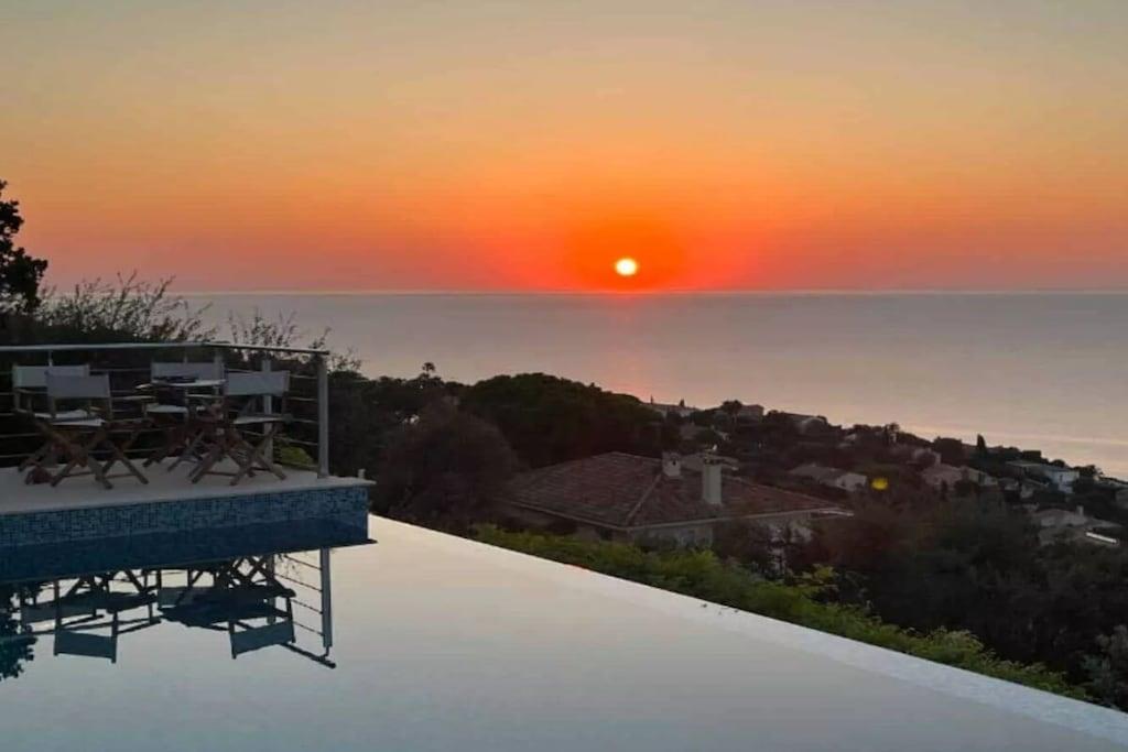 This beautiful Provençal villa offers an unforgettable experience with breathtaking 180° sea views, stretching from Saint-Raphaël to the Bay of Saint-Tropez. Located in the Estérel Natural Park, this villa is ideal for leisurely strolls and adventurous mountain bike rides. This recently restored 4-bedroom villa with a heated infinity pool is perfect for 8 adults. The property features 3 bedrooms and 2 bathrooms. There is also a separate 1-bedroom studio with an en-suite bathroom, accessible from the terrace. The spacious living room is furnished with a sitting area, a large dining table, TV, Wi-Fi, and a sound system, all within a comfortable and inviting interior. The kitchen is fully equipped with all necessary appliances, including an American-style refrigerator with an ice maker, an induction cooktop, multiple ovens, a dishwasher, and both filter and Nespresso coffee machines. The living room opens onto a generous terrace with a dining area, lounge furniture, sun loungers, and a gas grill. Enjoy the warm southern sun outdoors or relax in the shade of the various seating areas around the villa. Take a refreshing dip in the infinity pool while taking in the magnificent views. A plancha grill and a gas barbecue are available on the terrace. Translated with DeepL.com (free version)