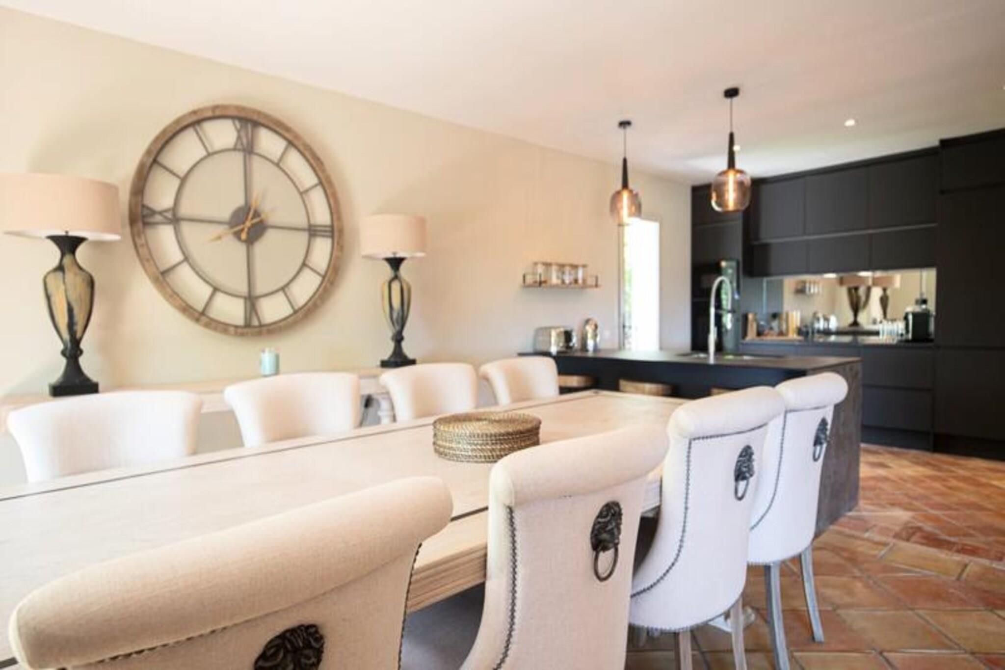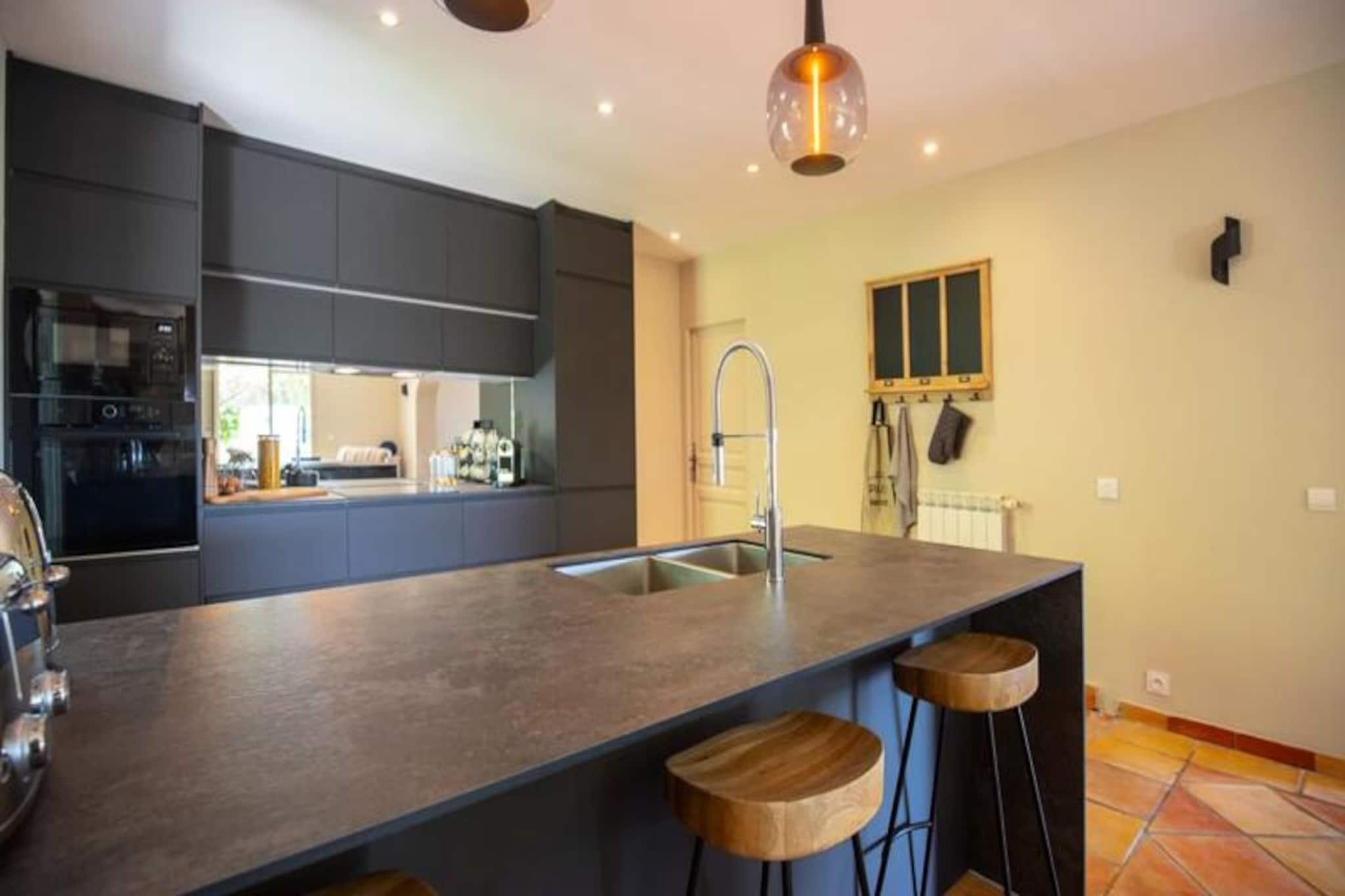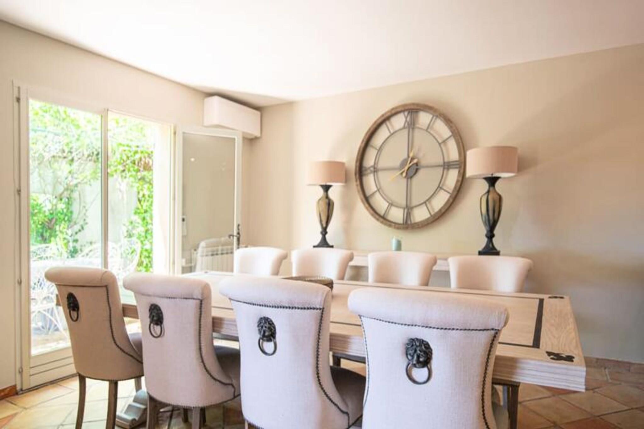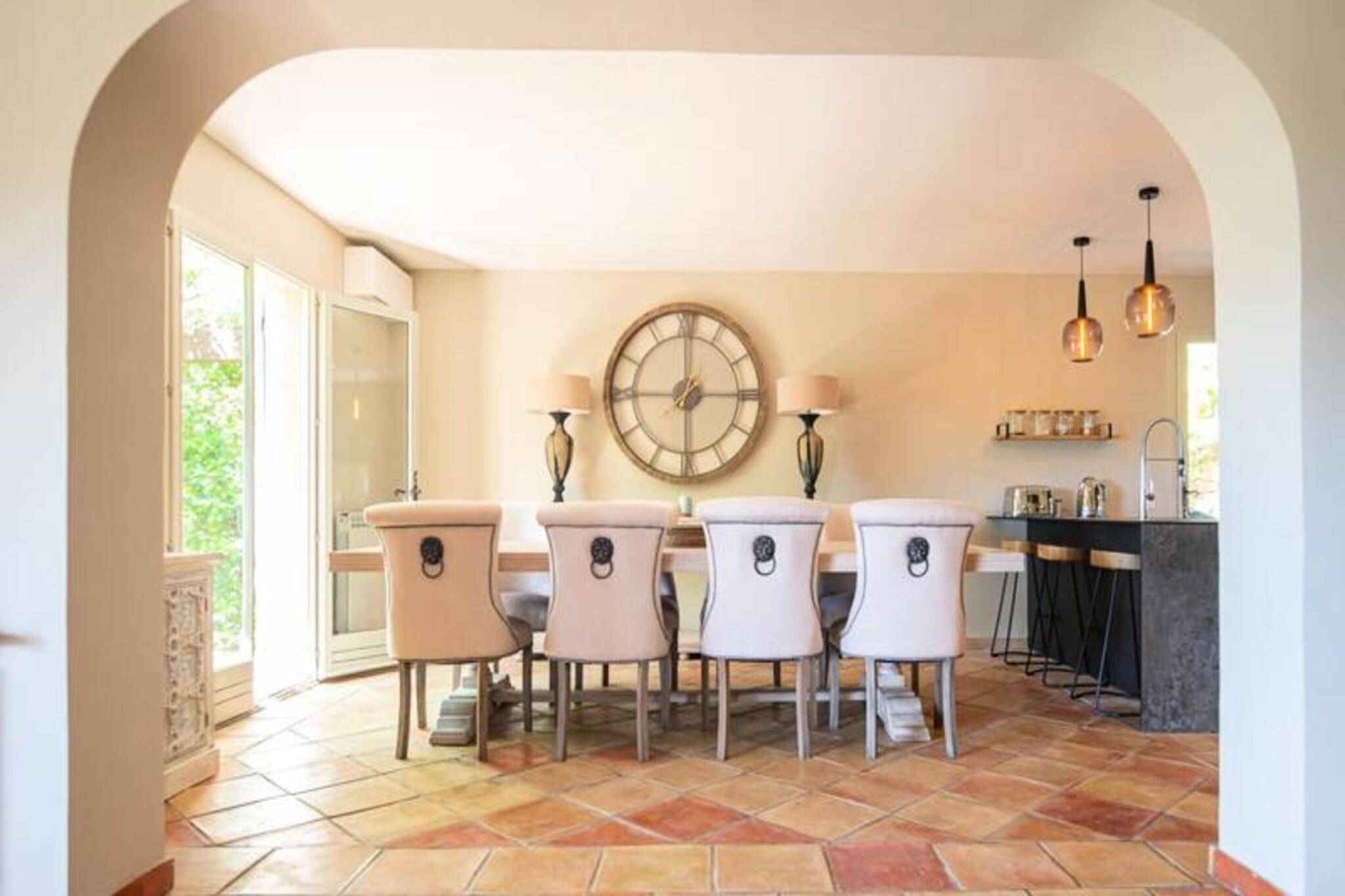 This spacious 200 m² villa, located in Roquebrune-Sur-Argens, is perfect for a relaxing getaway. With five beautifully furnished bedrooms, including double and single beds, it accommodates up to 10 guests. The property is pet-friendly, and linen is provided for your convenience. A large living room with comfortable seating and a flat-screen TV provides the ideal space for relaxation. The villa also features a high-quality kitchen and ample parking. Roquebrune-Sur-Argens offers an immersive Provençal experience with its nearby vineyards, hiking trails, and picturesque streets. Explore historic villages, vibrant local markets, and regional eateries. Fréjus and Saint-Raphaël are just a short drive away, offering pristine beaches, entertainment, and cultural landmarks. Nearby golf courses and the stunning Esterel Massif make this an ideal location for outdoor activities. The villa features a fully equipped kitchen, a spacious dining area, and multiple bathrooms, including a corner bathtub and an Italian-style shower. Outside, enjoy the private terrace with a BBQ area, a landscaped garden, and a secure swimming pool. For added entertainment, a ping-pong table is available. A laundry room with a washer and dryer ensures convenience throughout your stay.