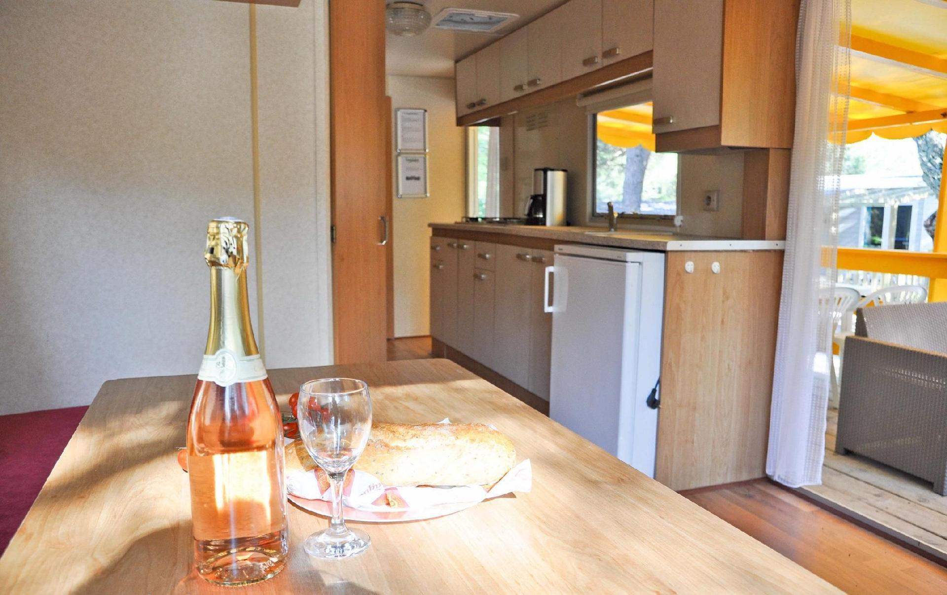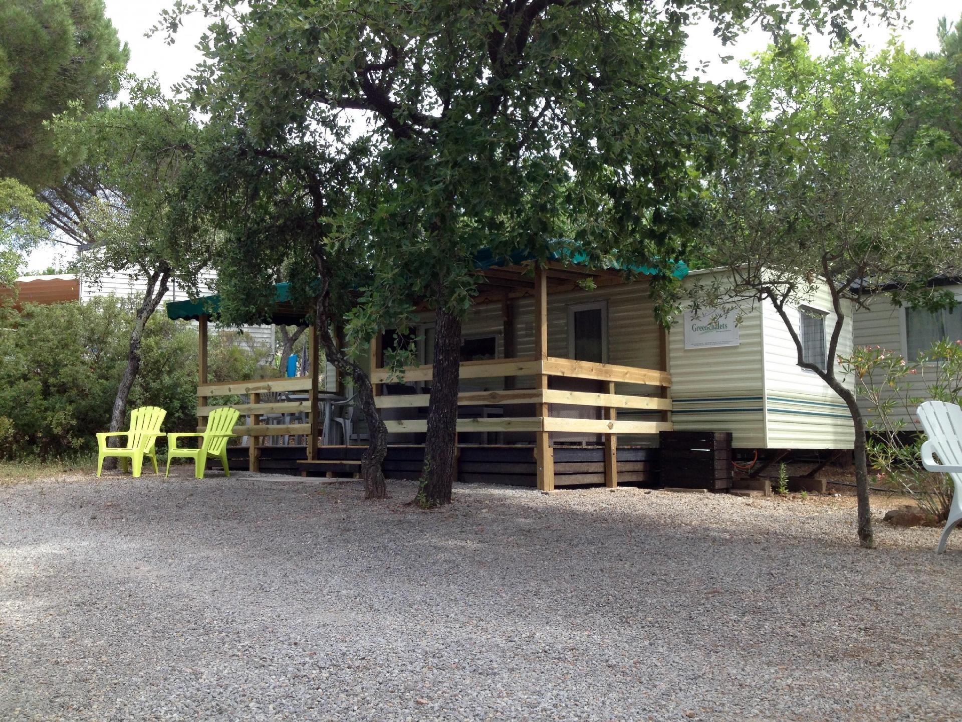 Welcome to Greenchalets at ANWB Camping Leï Suves on the Côte d'Azur, your ultimate destination for an unforgettable stay in the South of France. Located just a few kilometres from the beautiful Mediterranean Sea, our mobile homes (type C) offer you every comfort and tranquillity under the shade of cork oaks. Each of our well-equipped caravans accommodates five people and guarantees a holiday where convenience and nature come together in harmony.