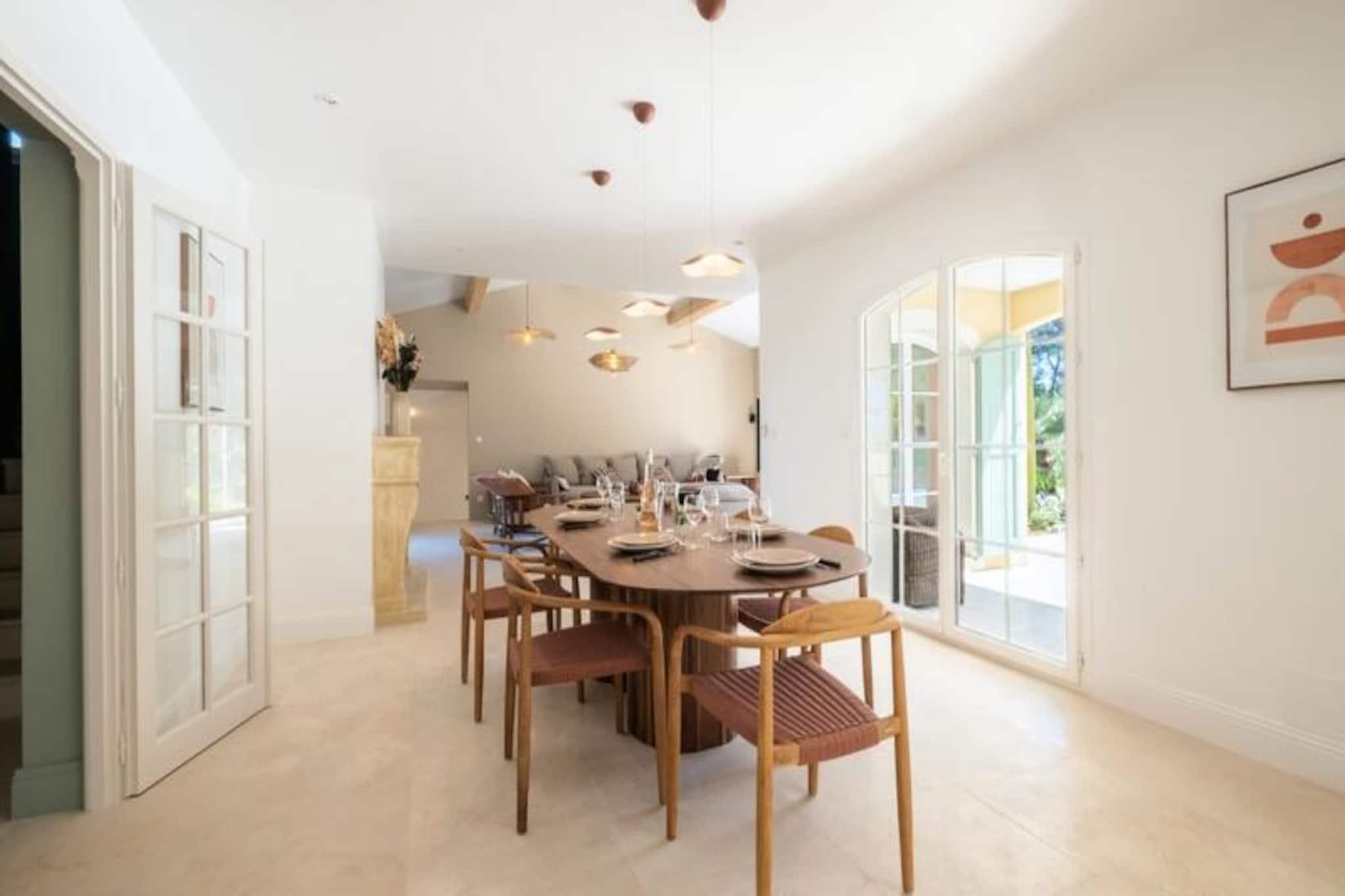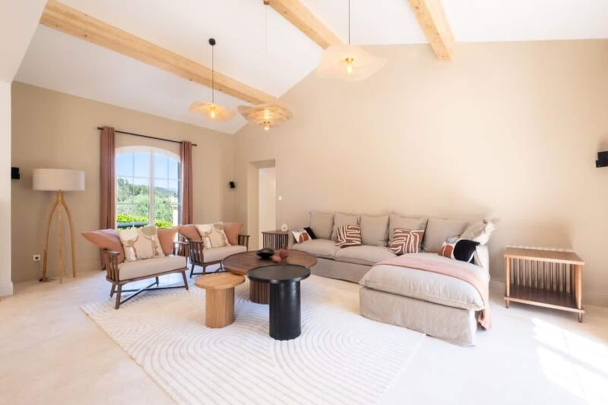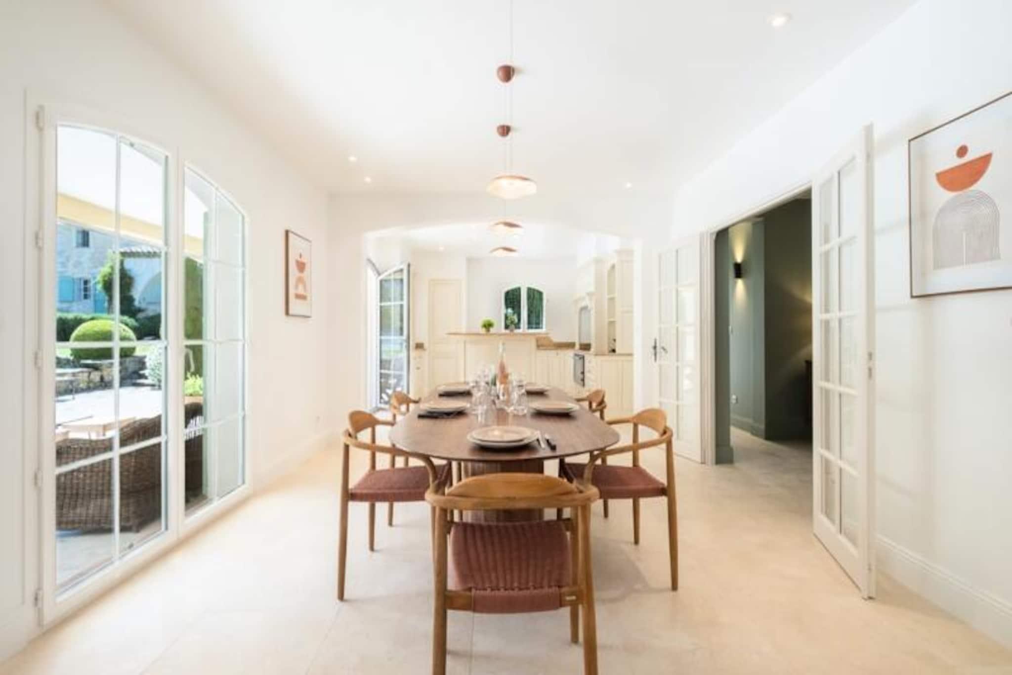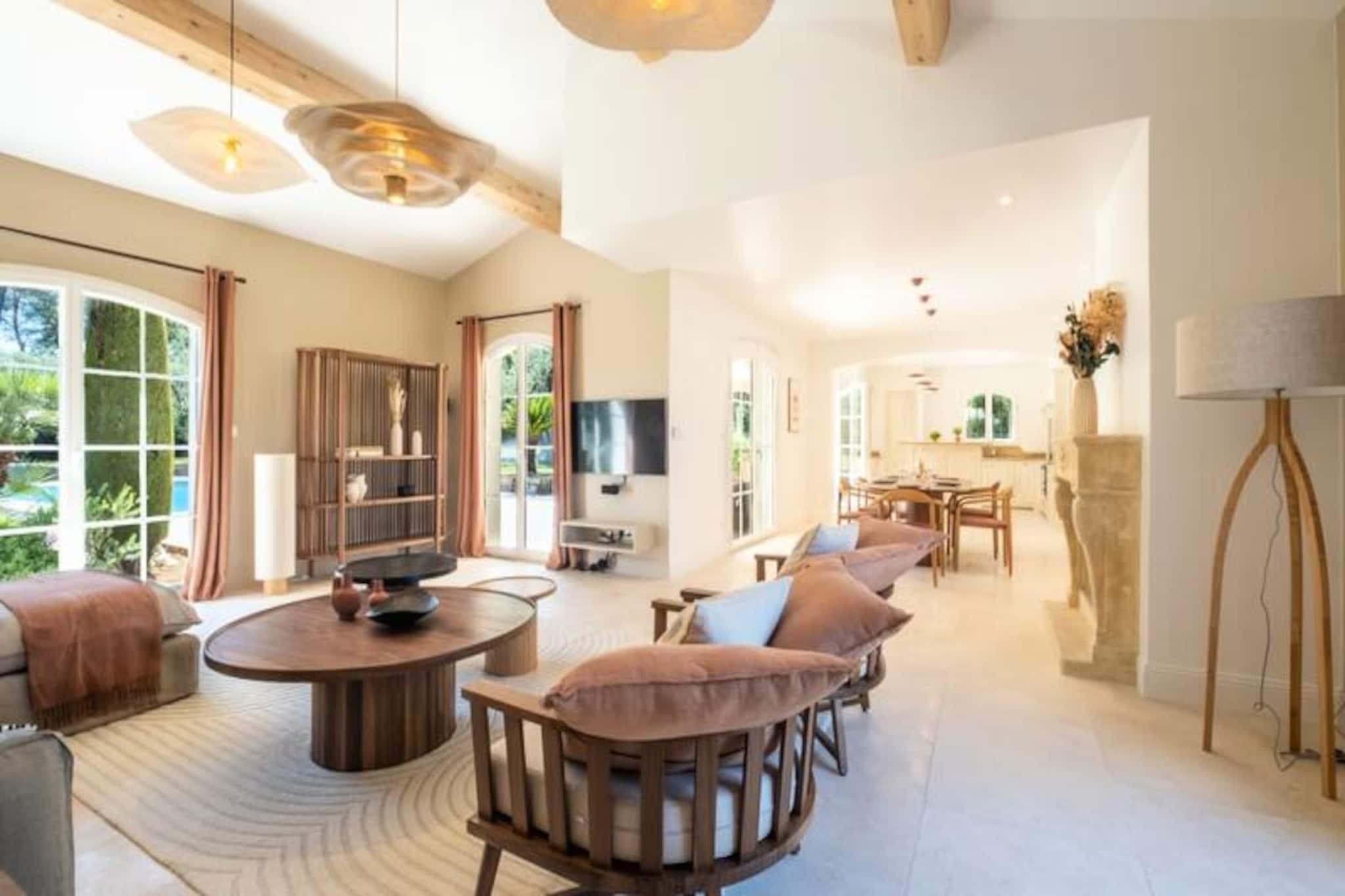 In the heart of the enchanting Provençal countryside, Villa La Valentine offers a serene escape where Mediterranean charm meets modern luxury. Surrounded by a sprawling garden adorned with over 50 olive trees, this exquisite villa is a haven for families seeking tranquility and comfort. The scent of lavender and the gentle rustle of olive branches set the tone for a holiday filled with relaxation and unforgettable moments. Just a short drive from the sparkling beaches of Cannes and Nice, this property is perfectly positioned to explore the best of the French Riviera. \n\nStep inside to discover a beautifully renovated home, where every detail has been thoughtfully designed to enhance your stay. The villa boasts five spacious bedrooms, including two en suite rooms with private terraces, offering breathtaking views of the surrounding countryside. The open-plan living area, with its high ceilings and abundant natural light, flows seamlessly into a fully equipped kitchen and dining space, perfect for family gatherings. Modern amenities such as air conditioning, Wi-Fi, and a laundry room ensure a comfortable and stress-free stay. Outside, a large infinity pool invites you to cool off under the Provençal sun, while the shaded terrace provides an idyllic setting for al fresco dining. \n\nBeyond the villa, the region beckons with its rich cultural heritage and natural beauty. Wander through the charming streets of Valbonne, Biot, or Grasse, each offering unique experiences from bustling markets to world-renowned perfume factories. Golf enthusiasts will appreciate the proximity to several top-tier courses, while families can enjoy the sandy beaches of Antibes or a visit to Marineland. For business travelers, the Sophia Antipolis technology park is just 13 minutes away. \n\nWhether you’re savoring a glass of local rosé by the pool, exploring the picturesque villages of the Côte d'Azur, or simply unwinding in the villa’s peaceful surroundings, Villa La Valentine promises an unforgettable Provençal retreat.