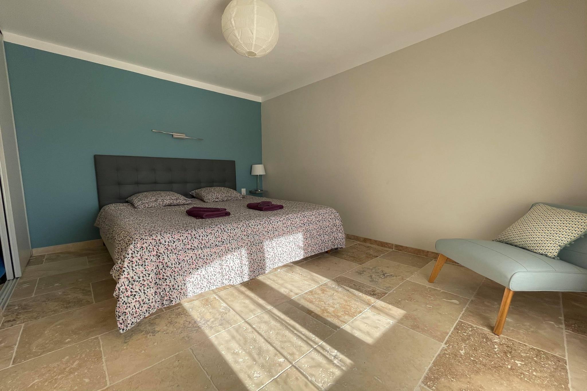 Tucked away in a quiet cul-de-sac in Roquemaure, this elegant Portuguese-style villa offers a serene escape for up to 6 guests. With 3 bedrooms and a private heated swimming pool, it's perfect for families seeking both comfort and adventure. The villa sits on a fenced 1800 m² domain dotted with olive trees and features a pool house with a kitchen, barbecue, pizza oven, and children's games-everything you need for a fun-filled stay. Roquemaure lies in the heart of the Côtes du Rhône vineyards, making it an ideal base to explore the Gard, Provence, Luberon, Drôme Provençale, and Ardèche. Nearby highlights include Avignon (23 km), Uzès (30 km), Orange (24 km), and the stunning Pont du Gard (23 km). Whether you're wine tasting in Tavel or hiking through lavender fields, the region offers rich cultural and natural experiences. Inside, the villa boasts a spacious living/dining room with a fireplace, satellite TV, and stereo unit. The open kitchen is fully equipped with an oven, microwave, dishwasher, and fridge-freezer. Additional amenities include air conditioning, WiFi, a washing machine, and a tumble dryer.