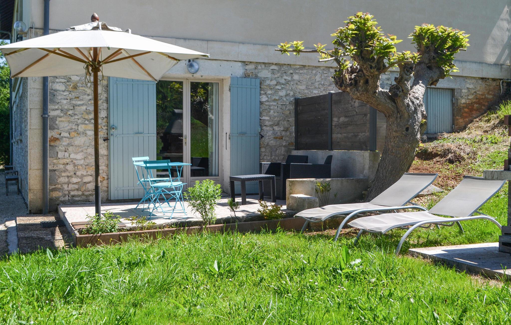 Die gemütliche Terrasse und der kleine Garten mit Sonnenliegen laden zum Verweilen im Freien ein. Grillen Sie am Abend und entspannen sich in der Sonne.