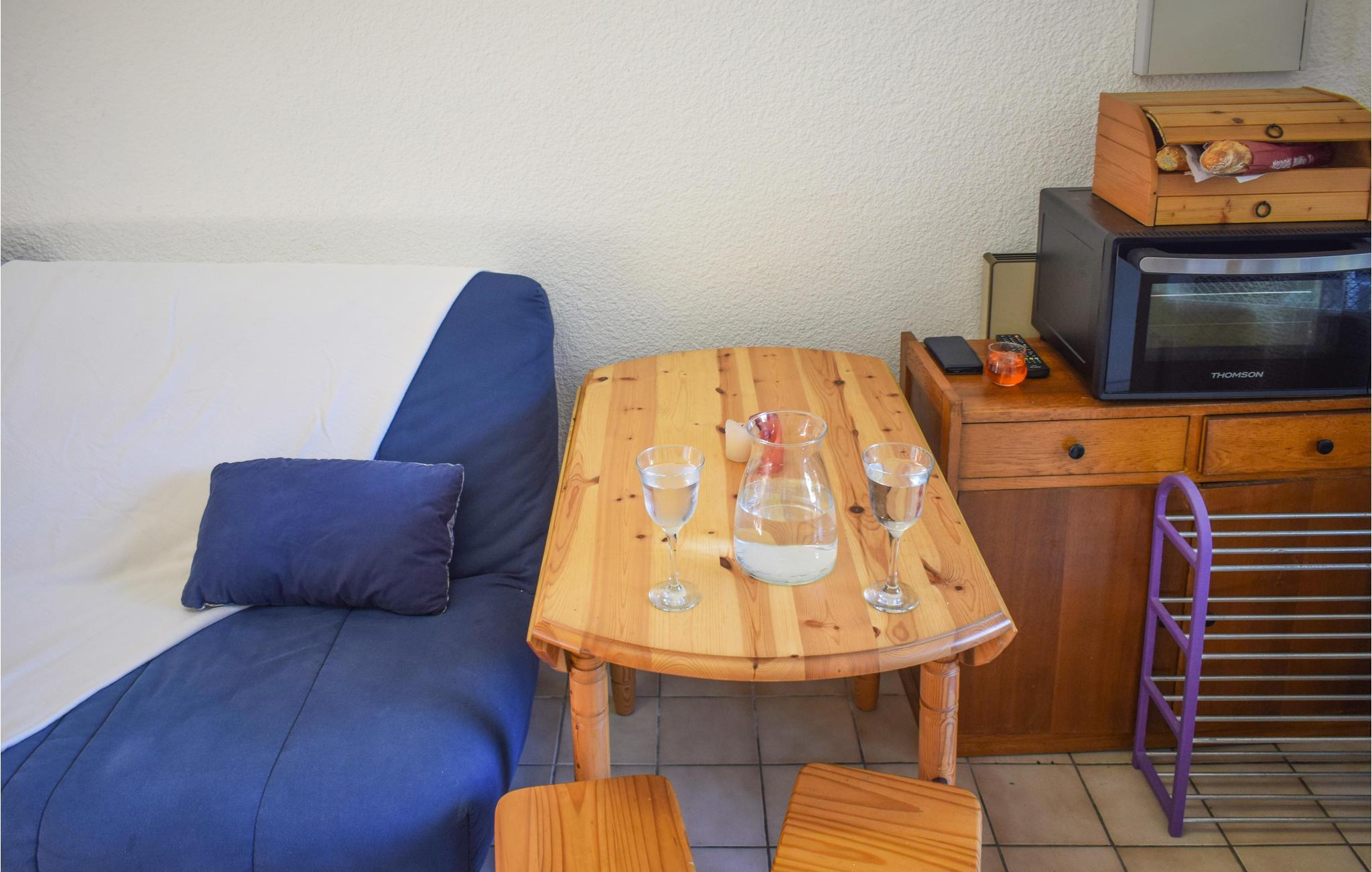 Verbringen Sie erholsame Tage in Ihrer kompakten Unterkunft, die Ihnen Nähe zum Meer bietet. Nutzen Sie die kurze Distanz zur Küste, um jeden Tag flexibel zu gestalten. Der kleine Wohnbereich ist mit einem Sofa, Fernseher und Esstisch ausgestattet. Die funktionale Ausstattung ermöglicht Ihnen einen unkomplizierten Aufenthalt, nach einem Tag am Wasser finden Sie hier Ruhe und Erholung.