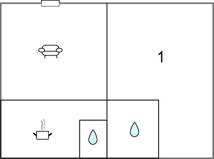Badezimmer 4m2 (nr. 1) - Warmes und kaltes Wasser. Dusche