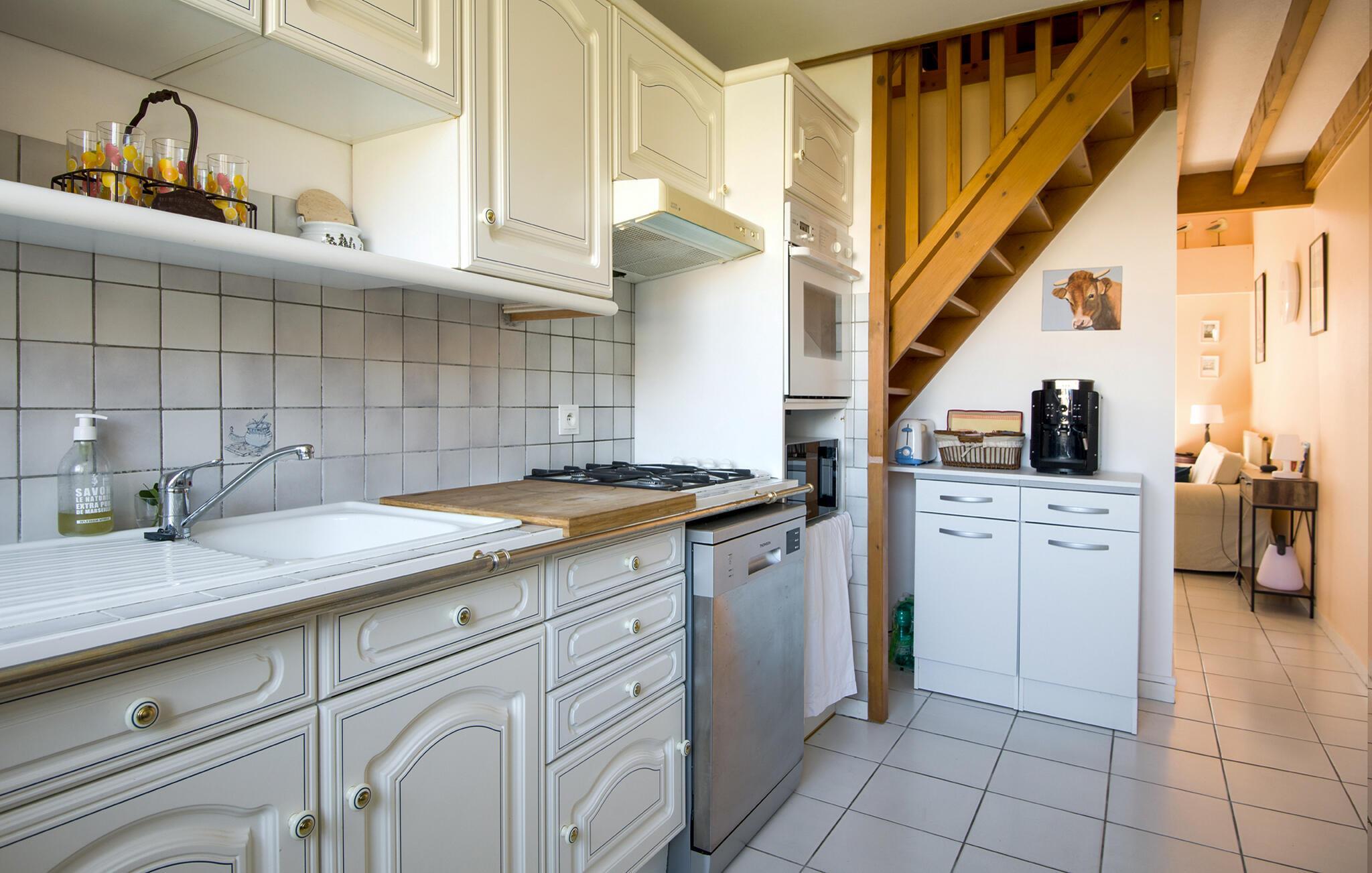 Im Herzen von Royan und nahe wunderschöner Strände lädt Sie dieses geräumige Ferienhaus zu einer harmonischen Auszeit mit Ihren Liebsten ein. Zaubern Sie in der hellen Küche leckere Mahlzeiten und nehmen Sie am einladenden Esstisch Platz. Machen Sie es sich nach einem erlebnisreichen Tag auf dem Sofa gemütlich, veranstalten Sie einen Spieleabend oder genießen Sie gute Gespräche bei einem Glas Wein.