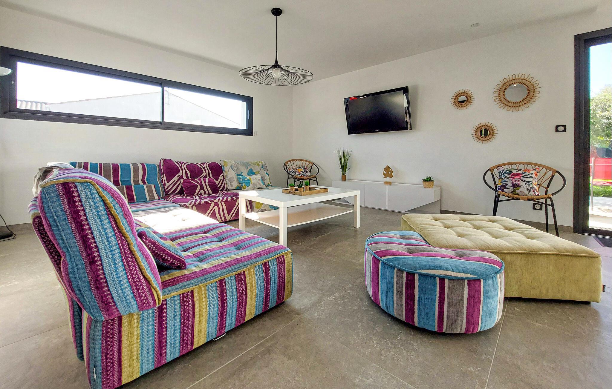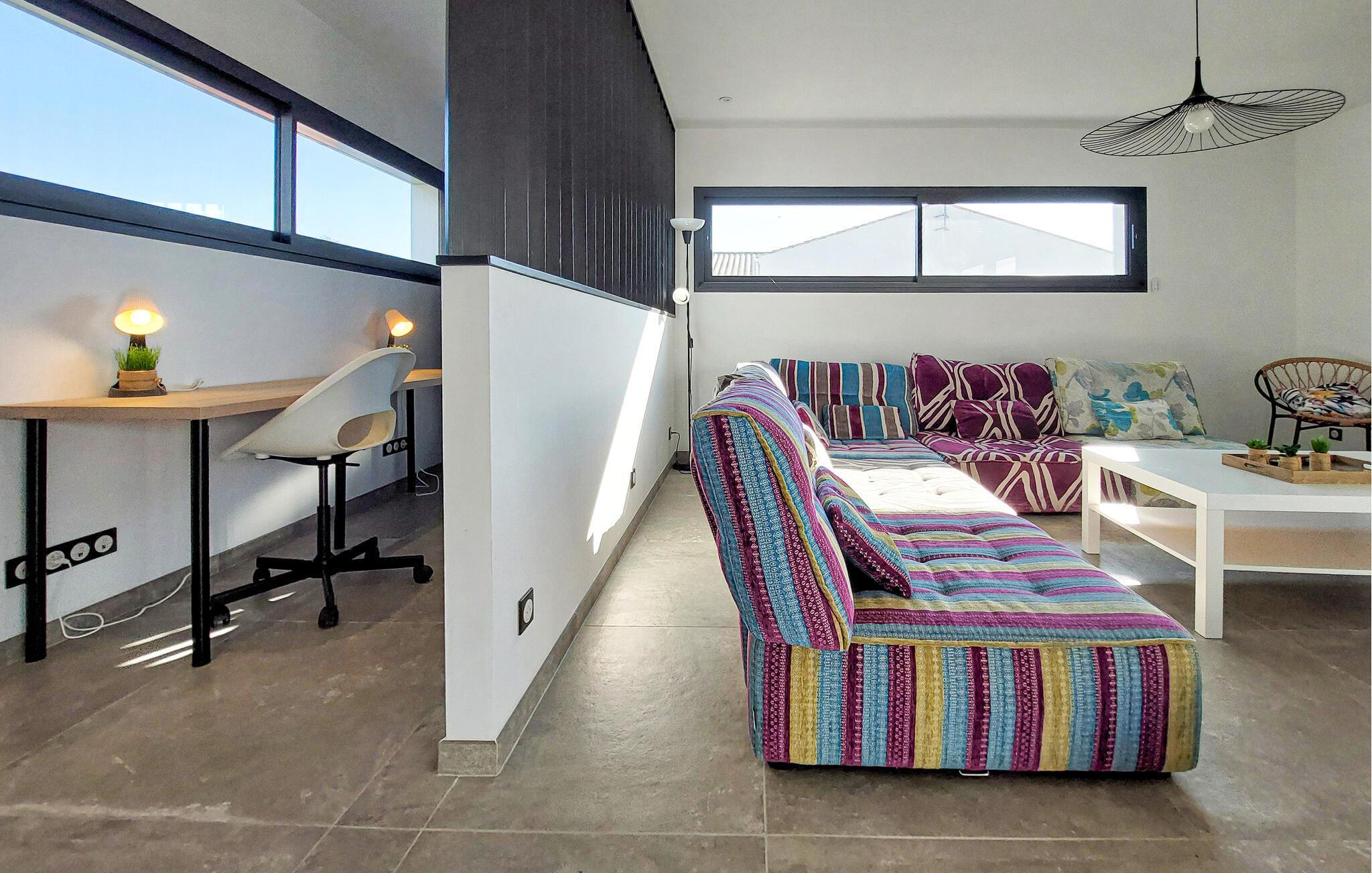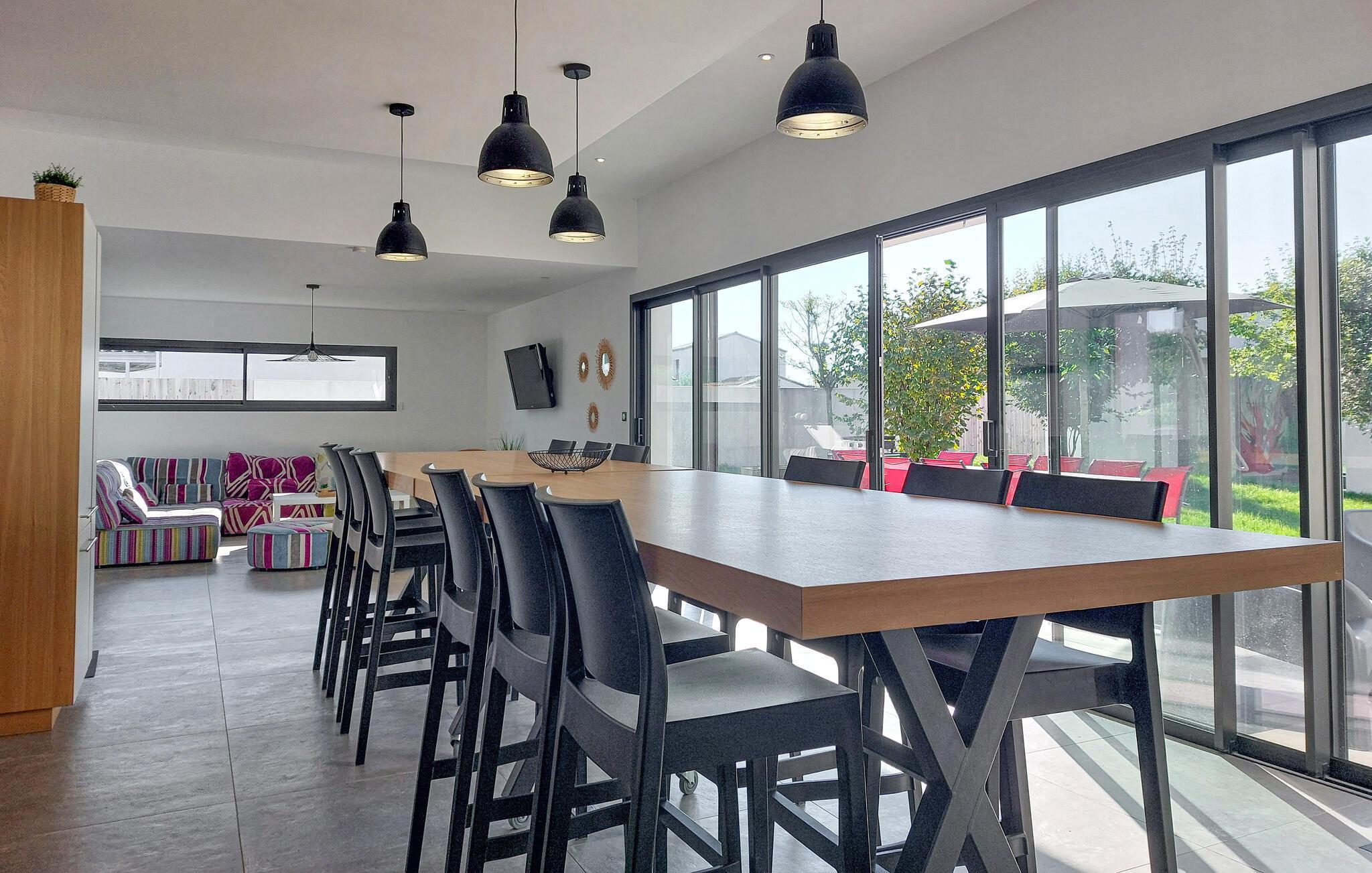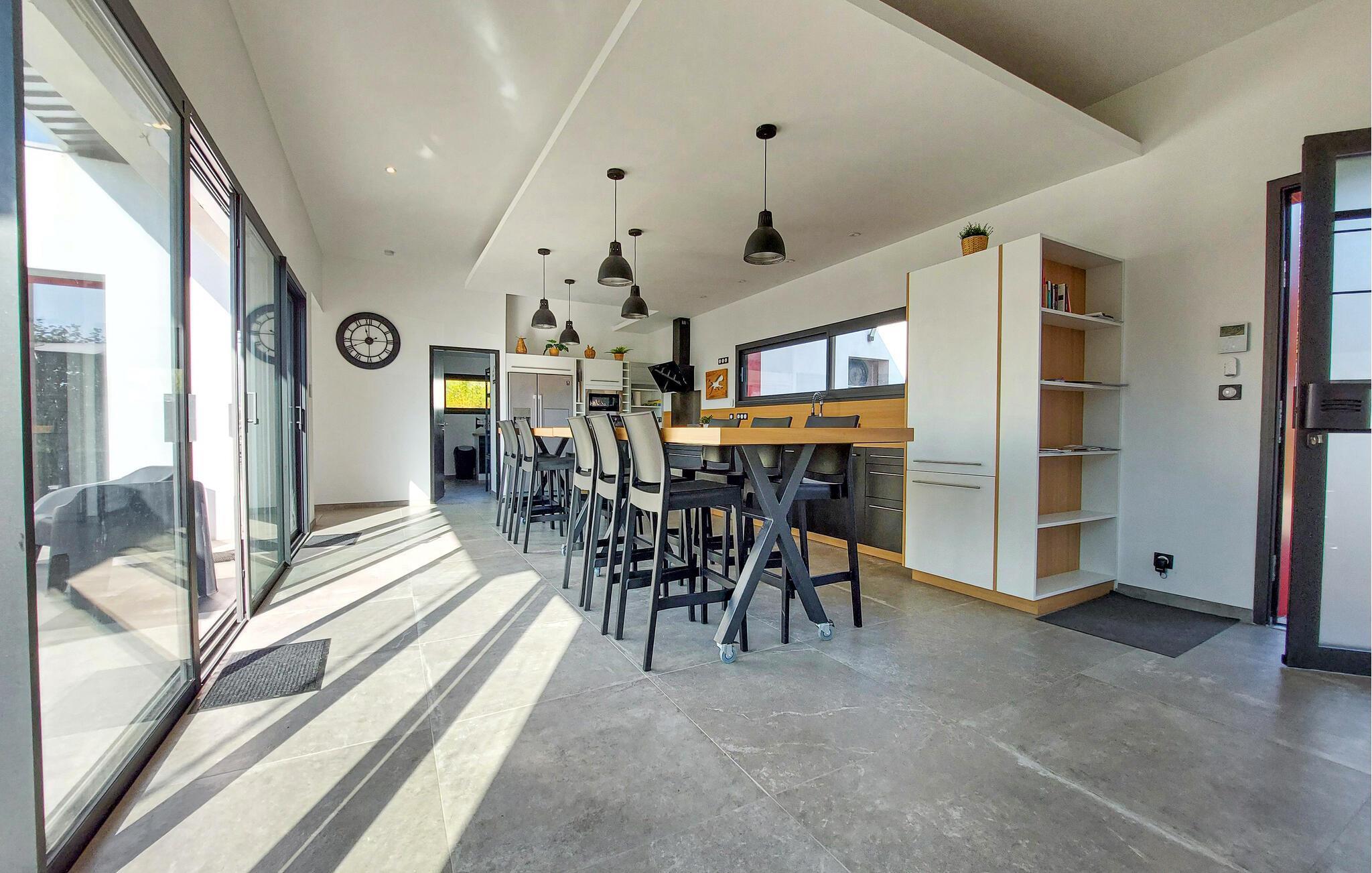 Dieses moderne und geräumige Ferienhaus begrüßt Sie mit einem lichtdurchfluteten und hochwertig eingerichteten Interieur, in dem Sie sich auch mit einer großen Familie oder einer Gruppe von Freunden vom ersten Tag an wohlfühlen werden. Veranstalten Sie fröhliche Kochabende, nehmen Sie am langen Esstisch Platz und treffen Sie sich für anregende Gespräche oder einen guten Film im eleganten Wohnzimmer.