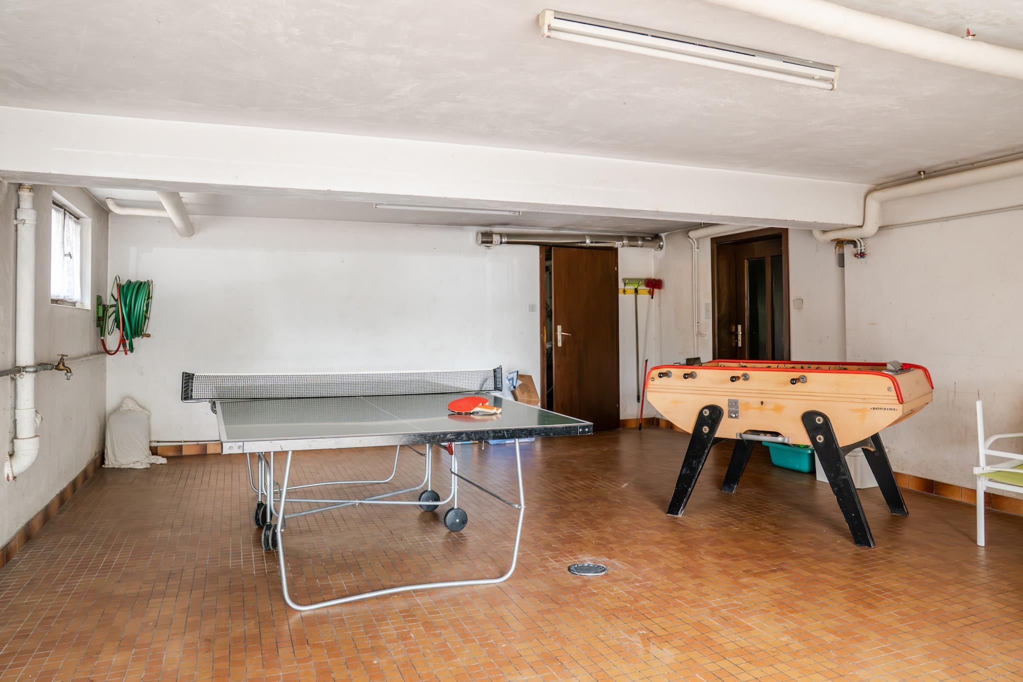 Ground floor: (hallway(stove), Living room(TV, fireplace), dining room, Kitchen(oven, microwave, dishwasher), bedroom(double bed(160 x 200 cm), TV), bathroom(bath tub, shower, 2x washbasin), toilet, conservatory/veranda) On the 1st floor: (bedroom(double bed(160 x 200 cm)), bedroom(double bed(140 x 190 cm)), bedroom(single bed(90 x 180 cm), 2x single bed(160 x 200 cm), TV), bathroom(shower, washbasin, toilet)) Basement: (bedroom(bunk bed(140 x 190 cm), TV)) garage, tumble dryer, washing machine, heating(central), terrace(private, roofed), garden(private, fenced), garden furniture, BBQ, play equipment, table tennis table, children's bed, high chair, playpen