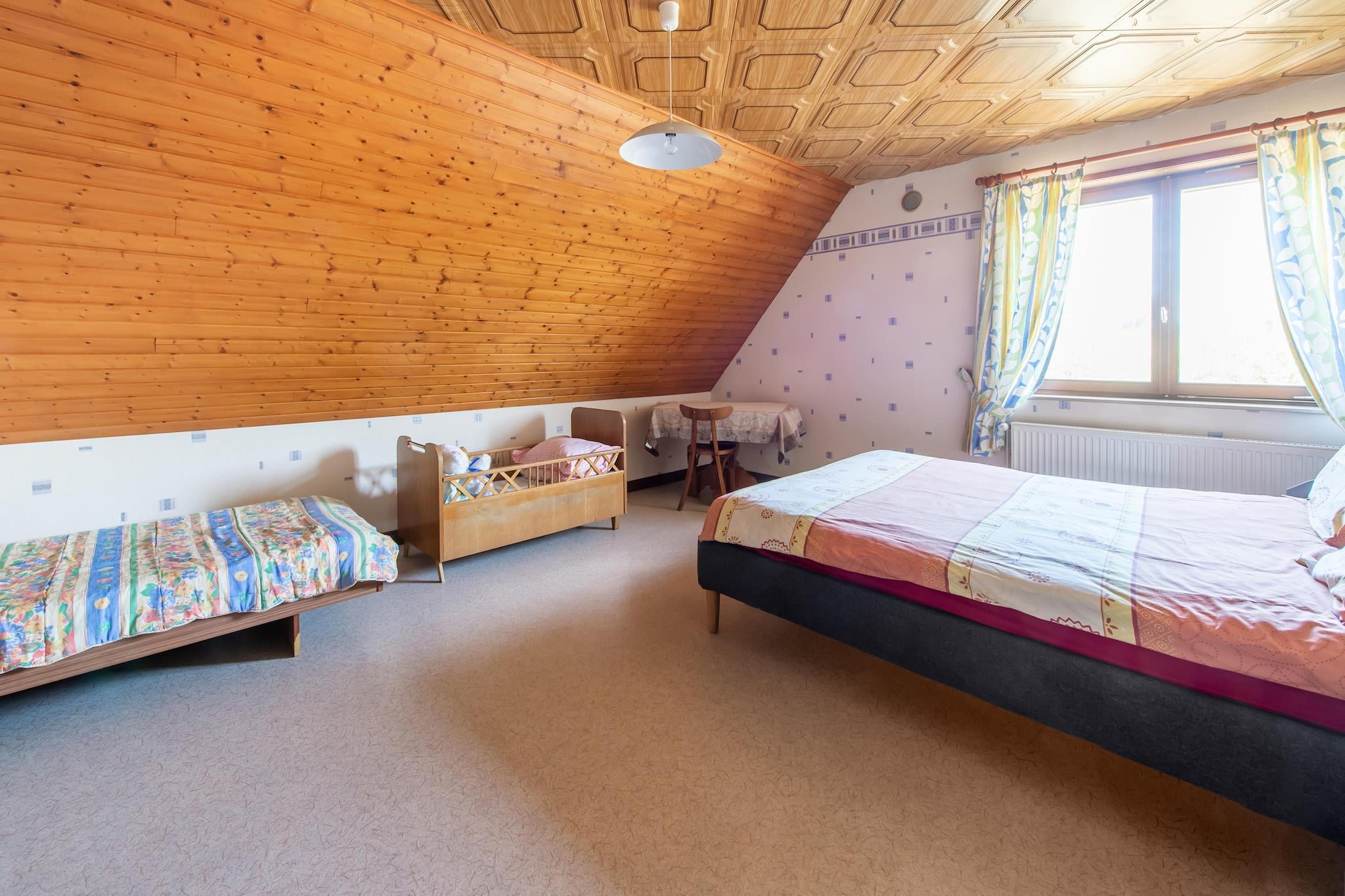 Situated in an area for nature, culture and gastronomic lovers, this is a 5-bedroom holiday home in Ruederbach. The private terrace is perfect to have delicious home cooked meals and enjoy barbecue evening. You can stay here in comfort with a family or group of 10 persons. At 3 km, you will find various supermarkets and restaurants for everyday services. For a pleasant experience in the evenings, you can head to the town centre at 5 km or the lake at 5 km. Cross country skiing can be enjoyed 18 km away. You can spend time notching a few birdees at LaLargue Golf Club or exploring the Ferrette Castle or Messeturm Basel. The holiday home has central heating and a woodstove in the hallway that creates a pleasant atmosphere. You can lie down reading a book or take a lazy afternoon nap in the fenced, furnished garden. There's a playground with a playpen for children's engagement. A children's bed and a high chair are present. There's a garage to park your car. The airport is 25 km. The property is located in a fully enclosed 20-acre garden, so animals cannot get out and are safe, as are vehicles. Bed linen is provided free of charge and beds are made upon arrival. Bath towels are available free of charge. The usual check-in is from 4 to 6 pm, unless there is an emergency which house owner will notify in advance.