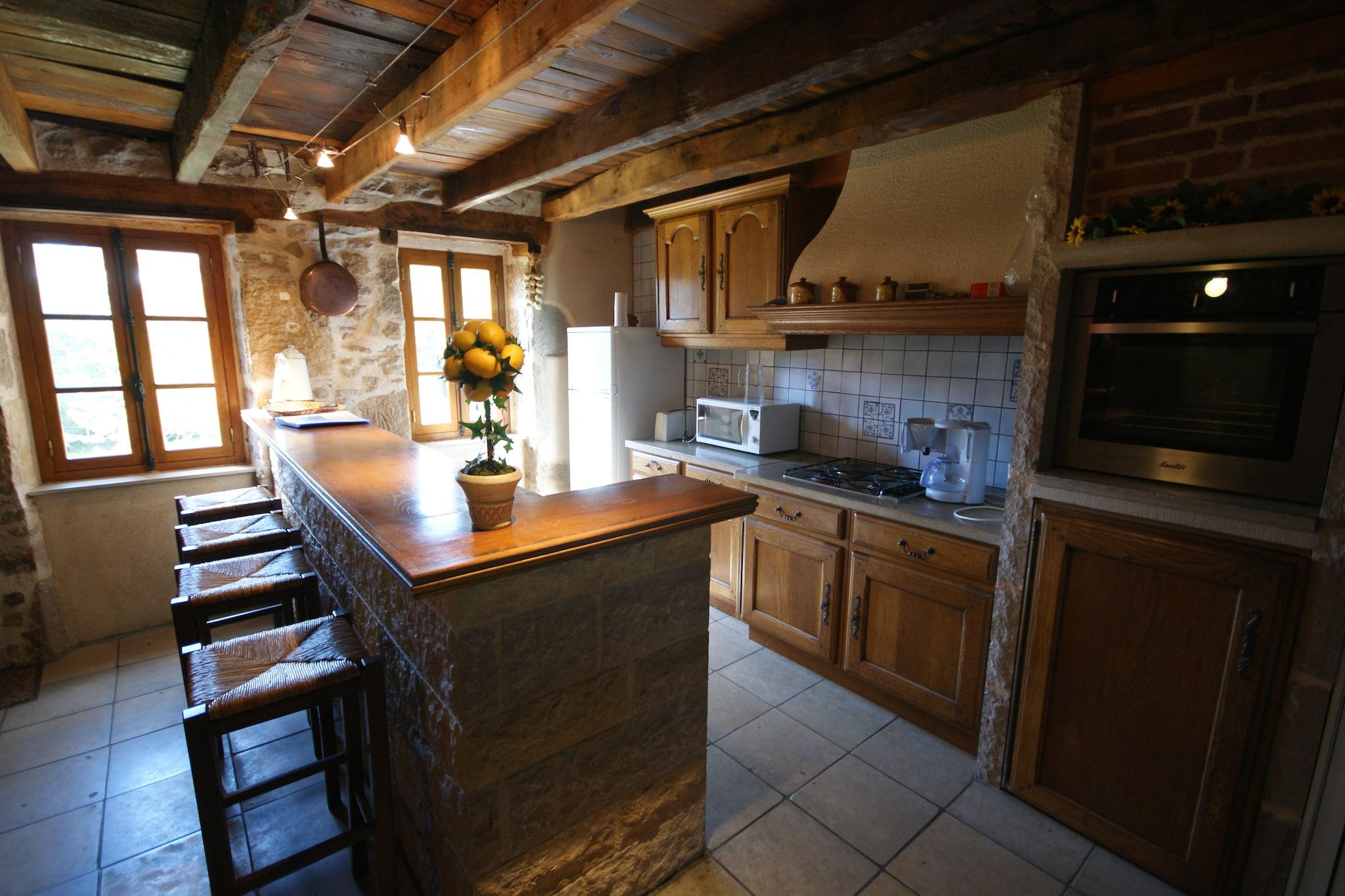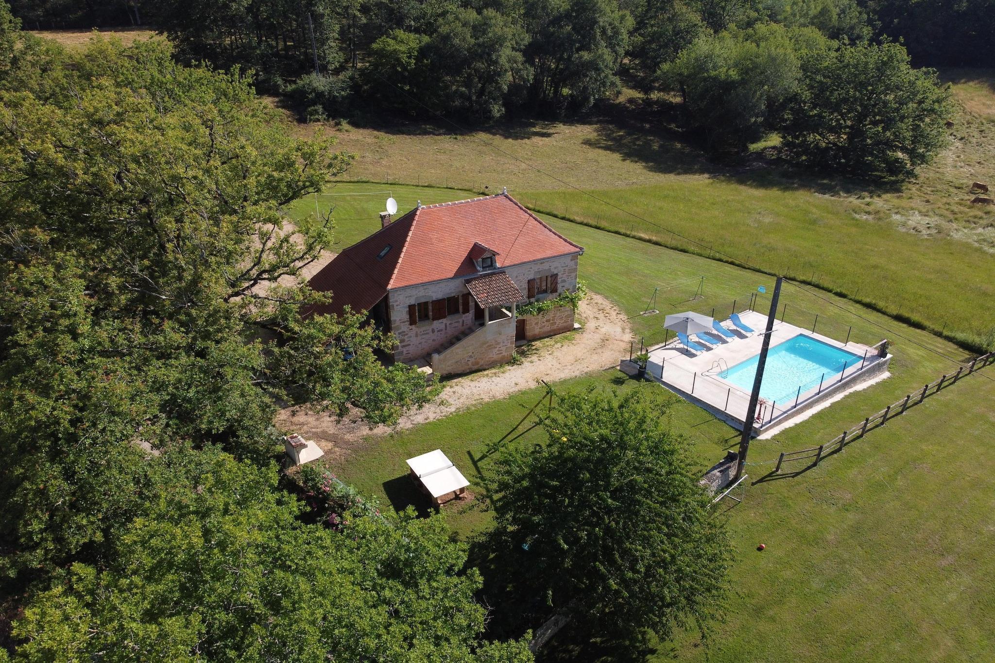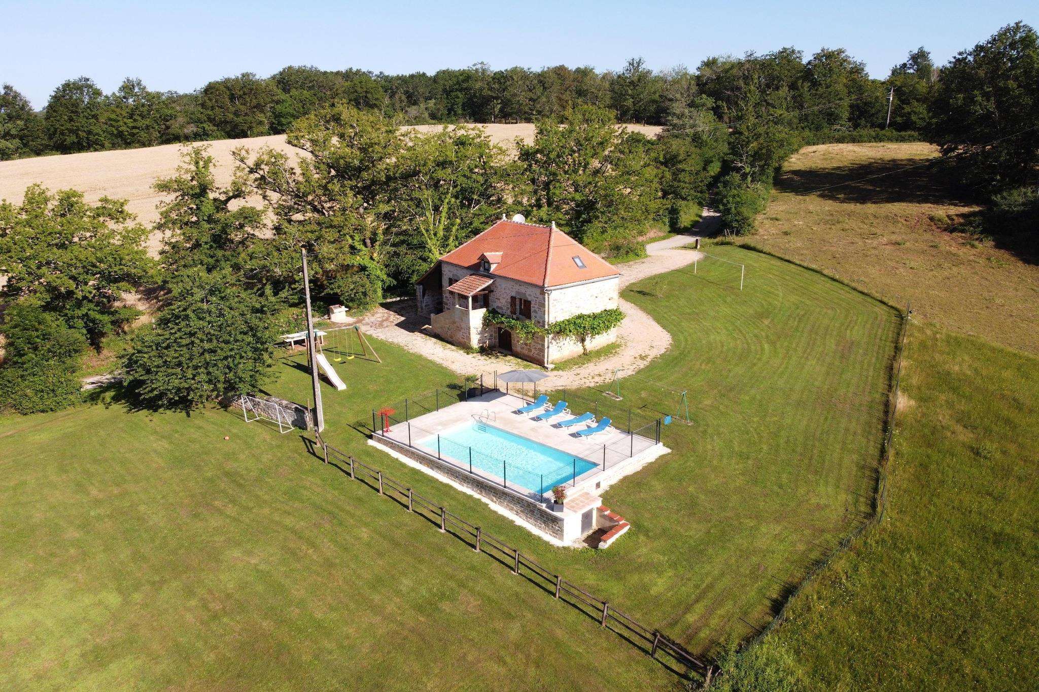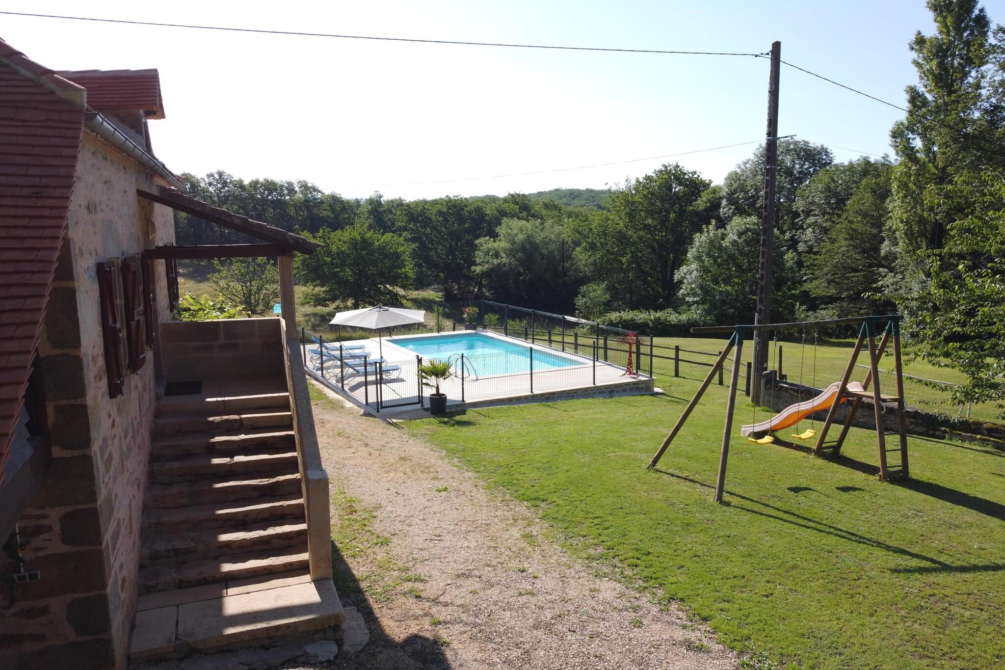 Set amidst forests, meadows, and rolling hills, this 3-bedroom holiday home in Rueyres offers a serene escape for families or groups of six. The fenced garden, private pool, sun terrace, and covered barbecue area create a perfect blend of relaxation and outdoor fun. Kids can enjoy the play equipment while adults unwind in the recently refurbished roofed terrace or cozy up by the fireplace indoors. Adventure awaits just beyond the doorstep-explore Gramat's animal park (15 km), the cliffside village of Rocamadour, or the stunning Gouffre de Padirac caves (22 km). Head south to Figeac (25 km) for riverside activities like canoeing and pedal boating. With five mountain bikes available, scenic cycling routes are yours to discover. Shops and restaurants are conveniently located just 7 km away. Inside, rustic charm meets modern comfort with wooden beams, stone walls, and thoughtful amenities like a cot, high chair, Senseo coffee maker, and free Wi-Fi.