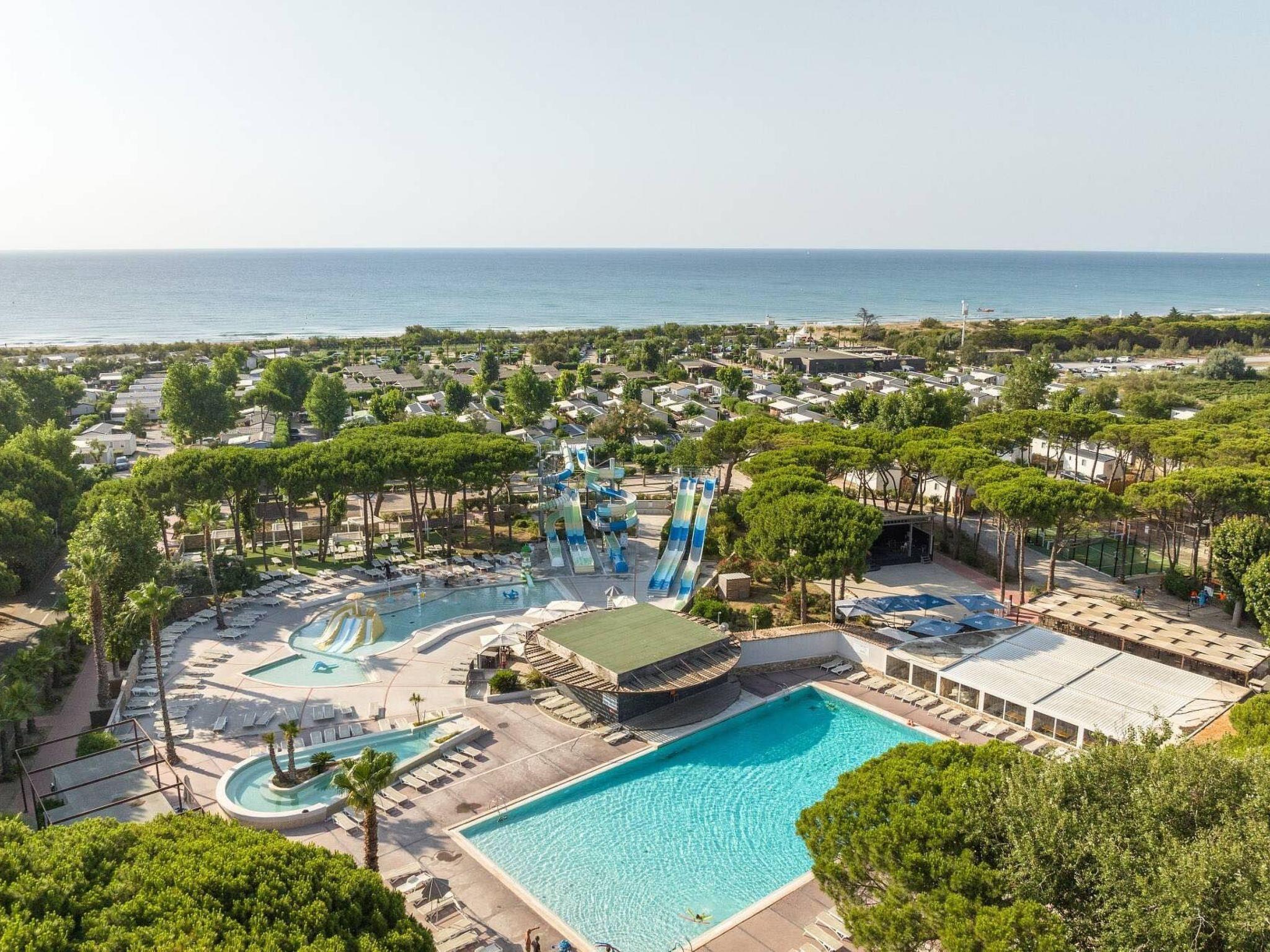 Discover the charm of our spacious mobile home in Sete, located in the prestigious 4-star Le Castellas campsite. Perfect for up to 8 people, this haven of peace is an invitation to a dream holiday between the pine forest and the Mediterranean Sea. Enjoy an unforgettable stay in comfort and relaxation.