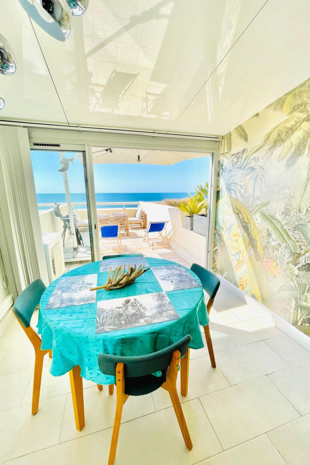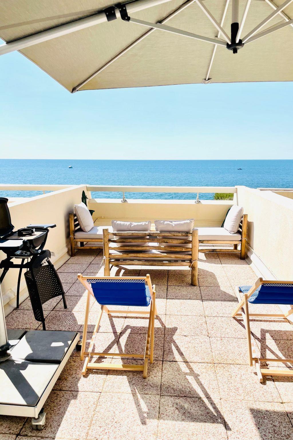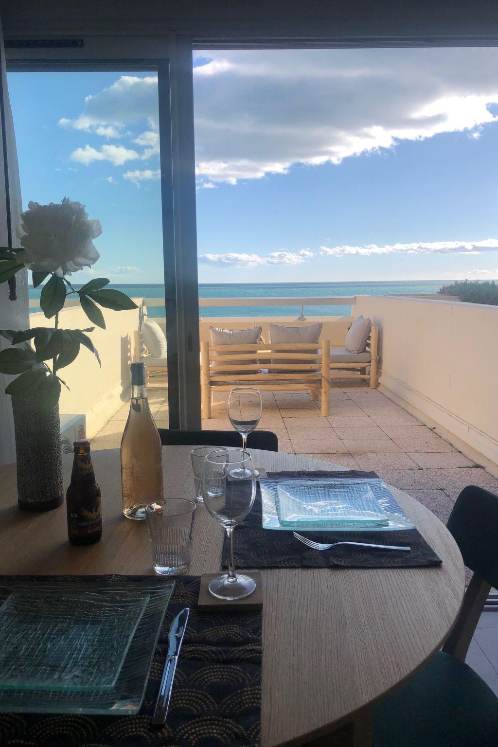 Large flat, south-facing, 2 bedrooms, garage, internet, 3 TVs, rare! This large, fully renovated 2-bedroom flat, located on the seafront in the highly sought-after Corniche district, is the ideal holiday home. It has no stairs, which is a great advantage as access is direct from this raised floor and less than 2 minutes from all the local shops. There is private access to the sea from the residence, and a cove for swimming or relaxing below. The south-facing loggia with its breathtaking views is extended by a 22m2 terrace. It's the perfect place to relax after a day in the sun. The flat is in the process of being classified (4 stars), everything has been thought of, of course the flat is air-conditioned, and has an unlimited wifi internet connection. Settle into the sofa (which can be converted into 2 beds) to contemplate the sea or take advantage of the facilities on offer, such as a Wi-Fi connection with numerous TV channels. You can prepare delicious recipes in the well-equipped kitchen, which is even over-equipped with a large dishwasher and ceramic hob, and then enjoy them around the dining table, which seats 4 or 6 guests and is located in the loggia, with the beautiful panorama as your backdrop. The flat has 2 bedrooms of 11m2, each with an independent flat-screen TV and large wardrobes, one with a 160cm double bed and the other with 2 80cm beds that can be converted into a 160cm bed, all with electric shutters. The bathroom has a large shower and washing machine. The toilet is separate. All cleaning equipment is available, including a hoover, ironing equipment and cleaning products. Please note that tourist tax is not included in the price. You can either bring your own linen or rent it. You can also bring your own bed linen or hire it. Each bed is equipped with 2 pillows, a bolster and a duvet. A deposit is required on arrival. The flat has a garage not far from the apartment. You can use it to park your car. Parking spaces are available opposite the residence. Smoking is not permitted inside (or in the loggia). Pets are allowed by prior arrangement. Description of the surrounding area This flat enjoys a privileged location, which will enable you to make the most of your stay in the region thanks to its excellent location. You can do it all on foot, 20 minutes from the centre of Sète, with this lovely walk along the Corniche, or 10 minutes by bike along the cycle path. A bus line leaves from the station and stops 150m upstream from the flat; all you have to do is get off and head for the sea. The same bus also serves the port and the town centre.
