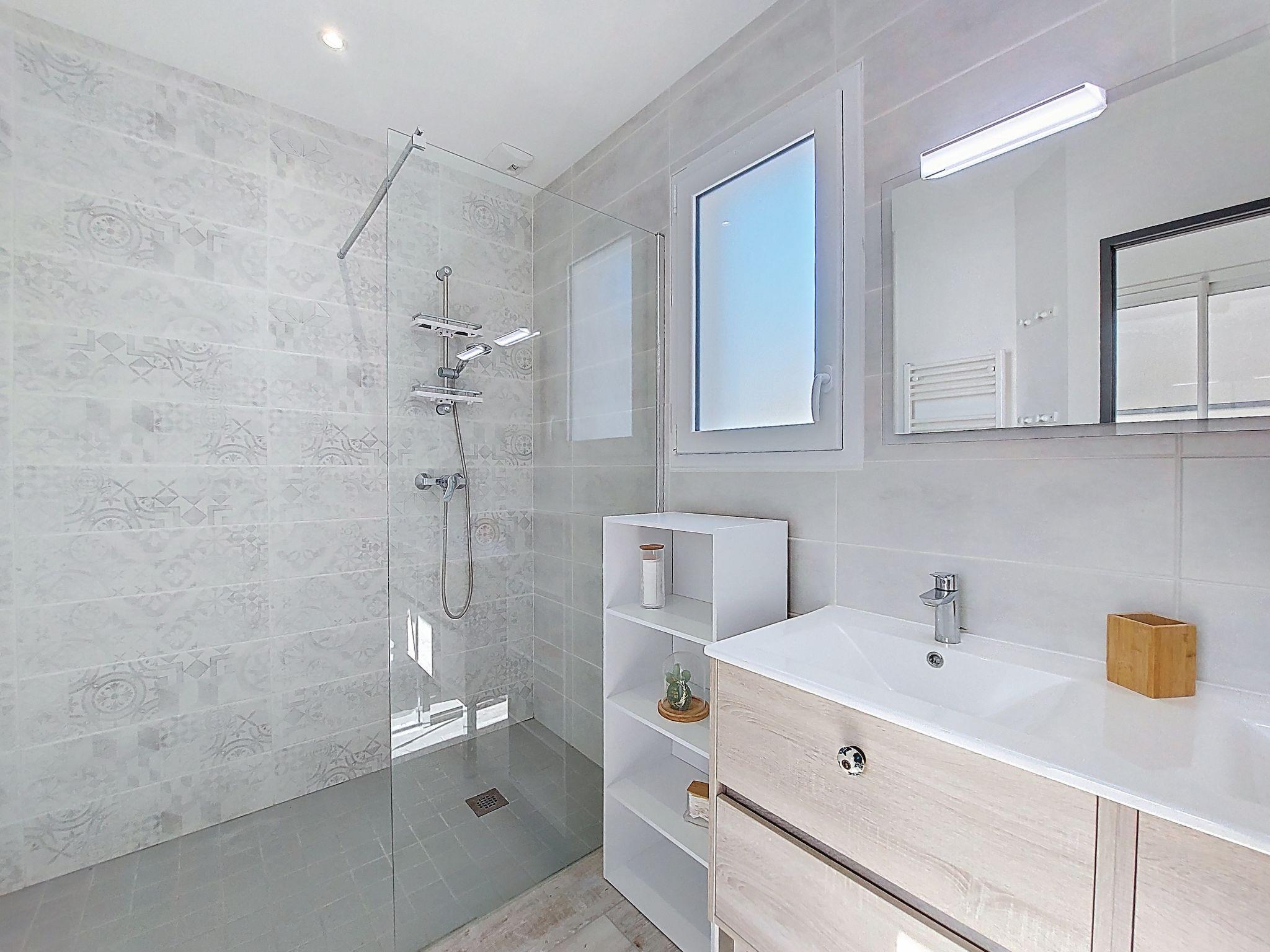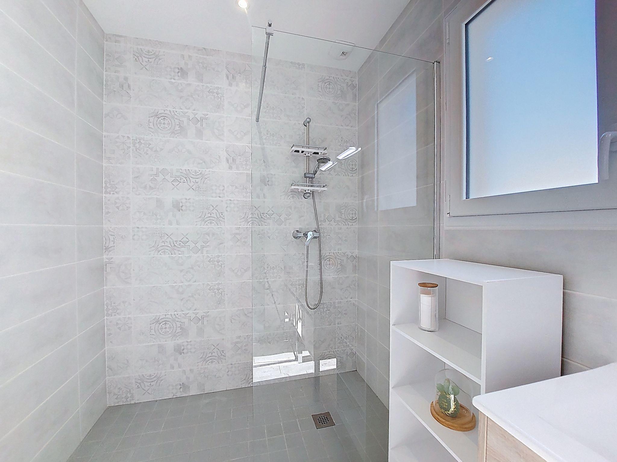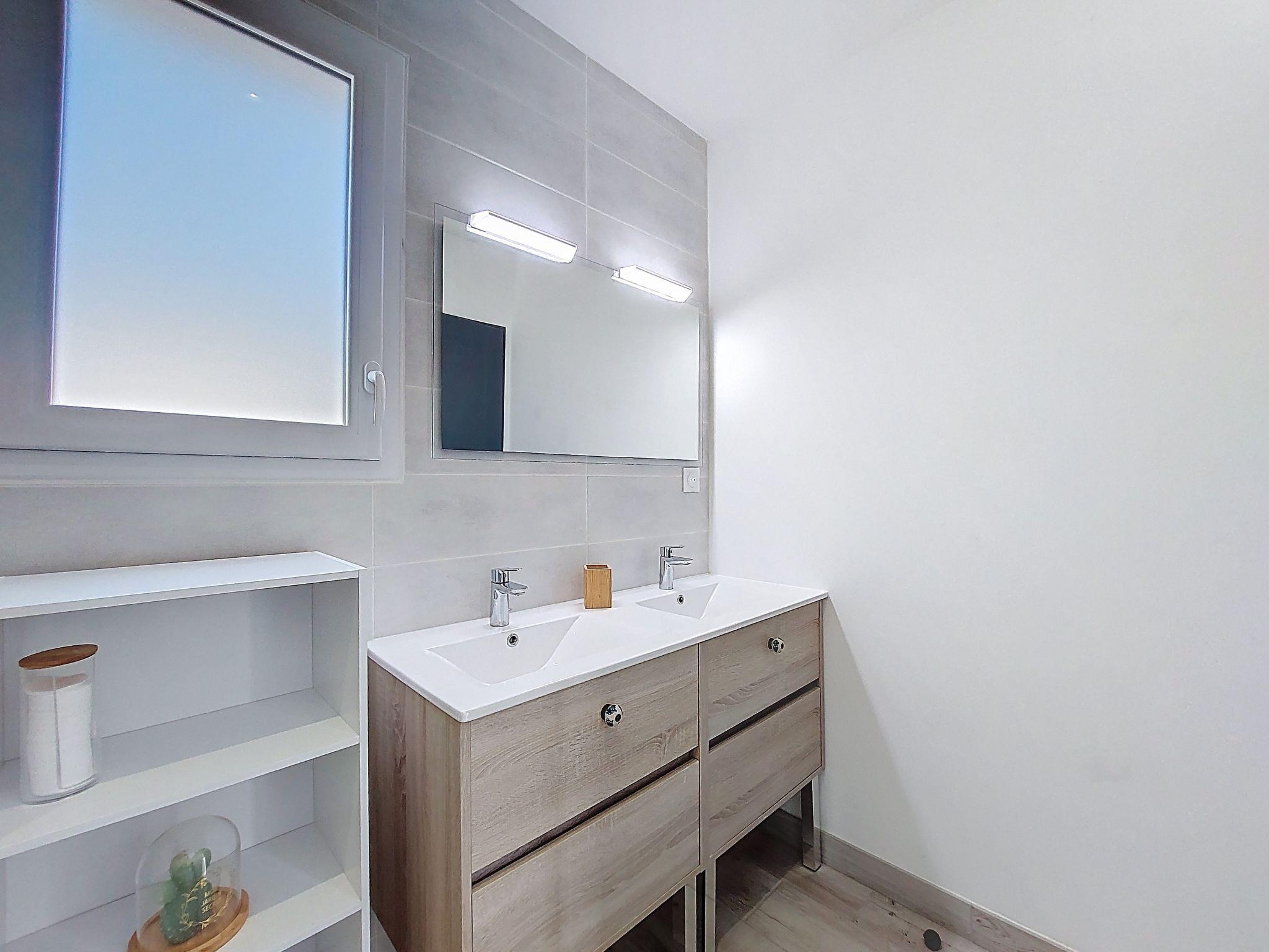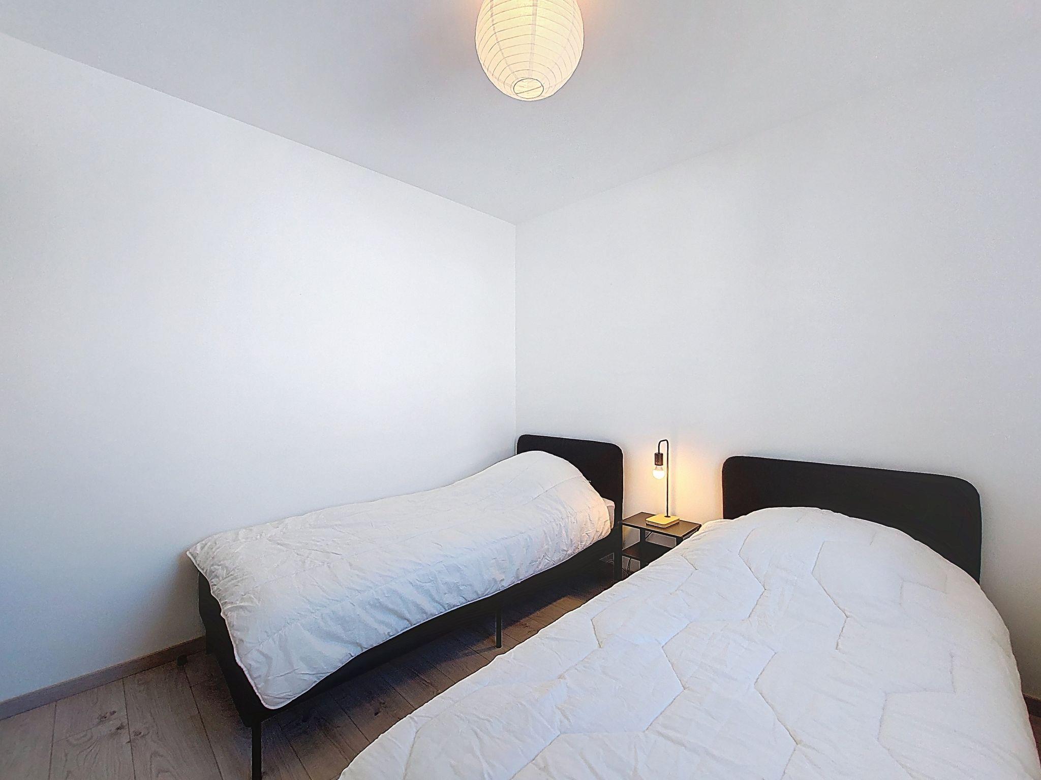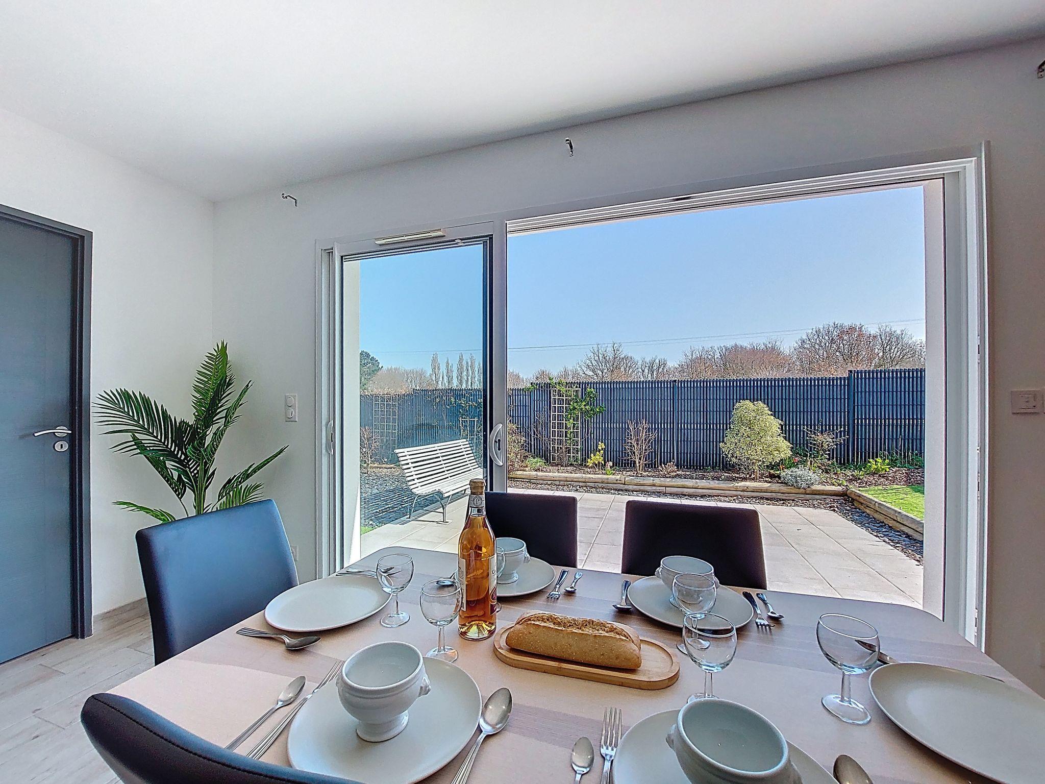 4-room terraced house 94 m2, south-west facing position. Modern furnishings: living/dining room with TV (flat screen), air conditioning. Exit to the terrace. 1 room with 1 french bed (1 x 160 cm, length 190 cm). 1 room with 1 french bed (1 x 140 cm, length 190 cm). 1 room with 2 beds (90 cm, length 190 cm). Open kitchen (oven, dishwasher, 3 induction hot plates, toaster, kettle, microwave, freezer, electric coffee machine). Shower, sep. WC. Large terrace 60 m2. Terrace furniture, electric barbecue. Facilities: washing machine, children's high chair, baby cot. Internet (WiFi, free). Parking (2 cars). Please note: maximum 1 pet/ dog allowed. Smoke alarm. Offer by a private individual according to Art. 155, IV of CGI.