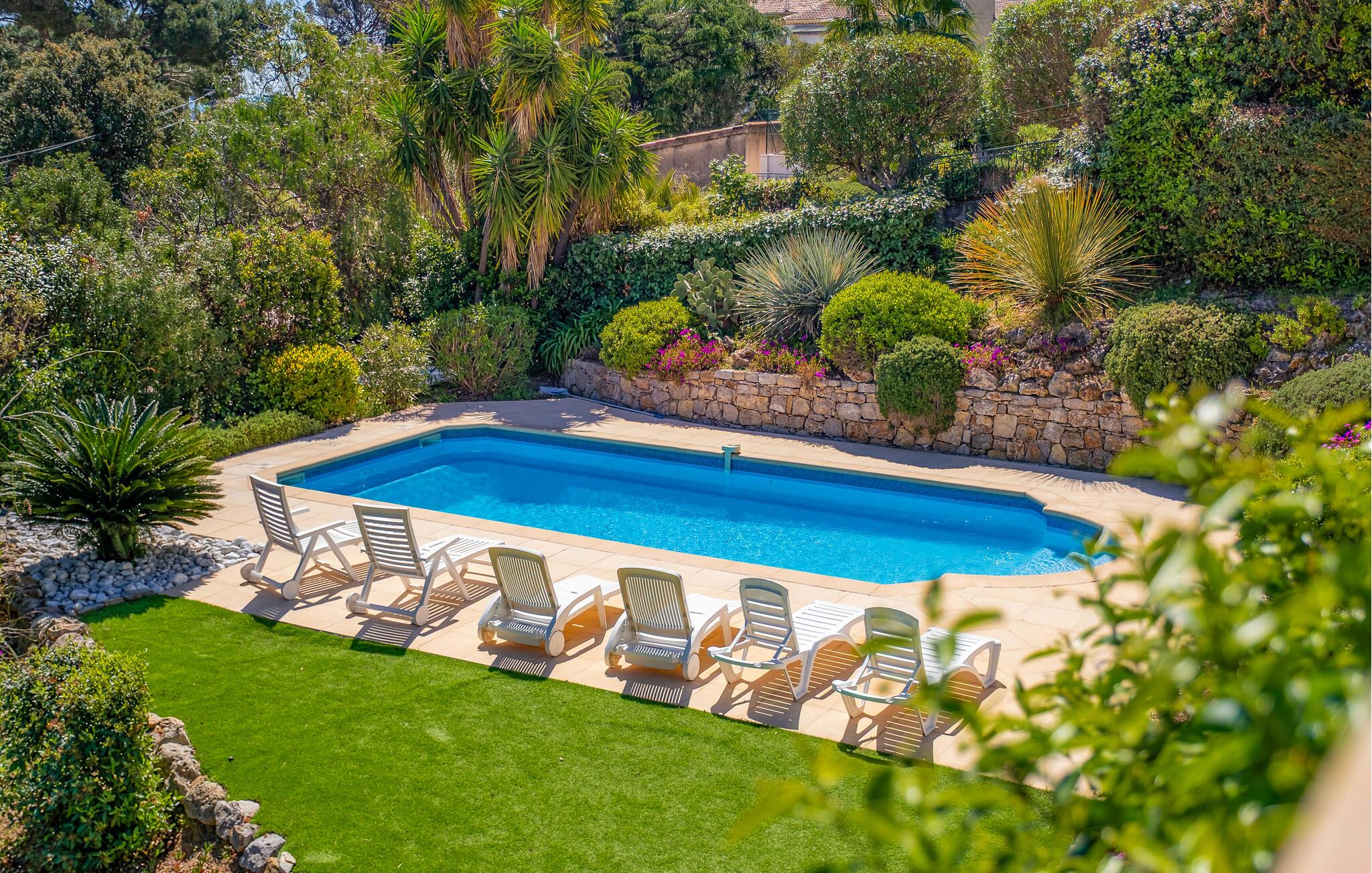 Starten Sie mit Croissants und frisch gepresstem Orangensaft auf der großzügigen Terrasse in den Tag oder ziehen Sie gleich nach dem Aufstehen ruhige Bahnen im herrlichen Pool. Tanken Sie Energie auf der Sonnenliege und entfachen Sie bei Sonnenuntergang den Grill.