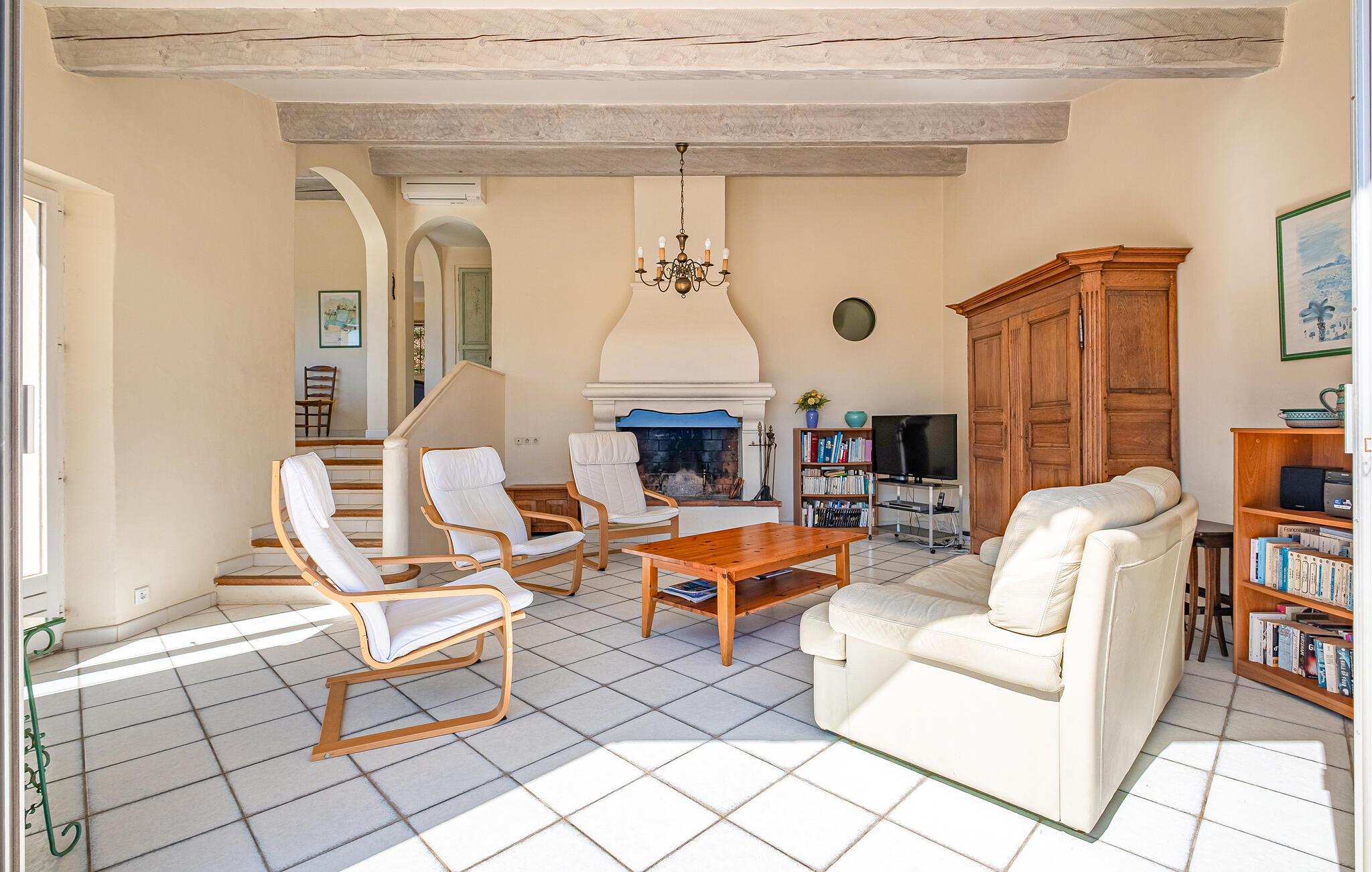 Ein helles Ambiente und ein atemberaubender Blick aufs Meer schaffen in diesem komfortablen Ferienhaus eine frische, mediterrane Atmosphäre. Bereiten Sie in der offenen Küche köstliche Gerichte zu und lassen Sie die angenehme Brise durch die Räume ziehen, während Sie Ihre Mahlzeiten am Panoramafenster genießen. Schmökern Sie in der hauseigenen Bibliothek nach einem guten Buch oder nutzen Sie die gemeinsame Zeit zum Plaudern bei einem Glas Wein.