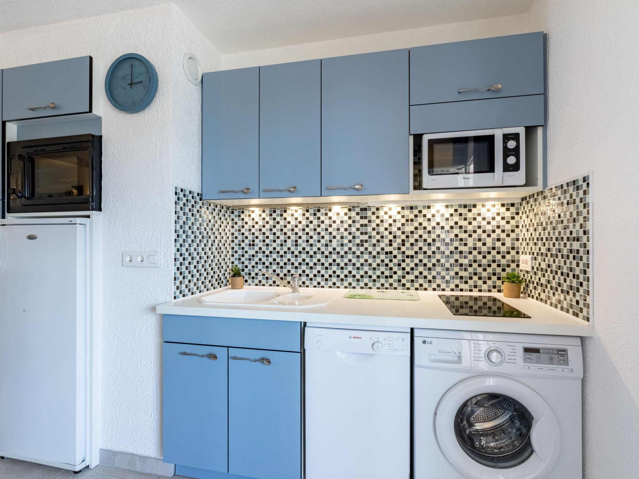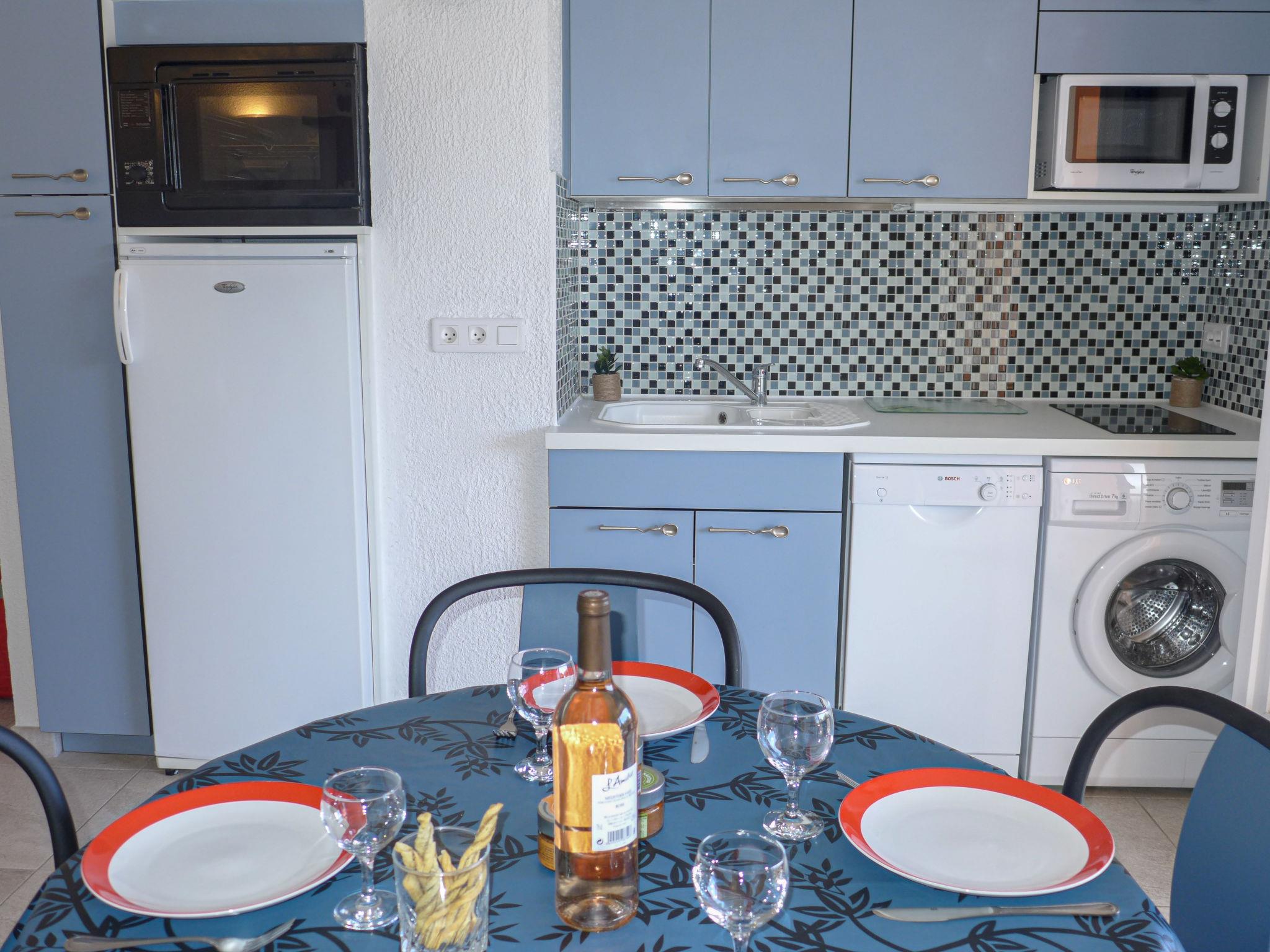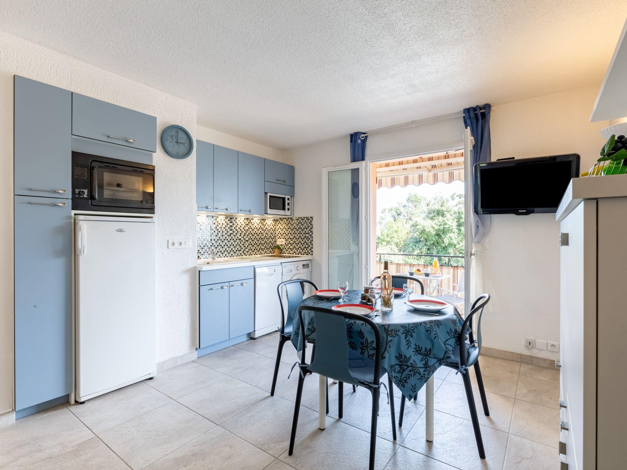 2-room apartment 30 m2 on 2nd floor, east facing position. Beautiful and modern furnishings: living/dining room with TV (flat screen). Exit to the balcony. 1 room with 1 french bed (1 x 140 cm, length 190 cm), air conditioning. Kitchenette (oven, dishwasher, 2 induction hot plates, toaster, kettle, microwave, freezer, electric coffee machine, Capsules for coffee machine (Nespresso) extra). Shower/WC. Heating. Balcony 7 m2. Terrace furniture. Partial view of the sea. Facilities: washing machine, iron, hair dryer. Internet (WiFi, free). Please note: non-smokers only. TV only FR. Smoke alarm. 739