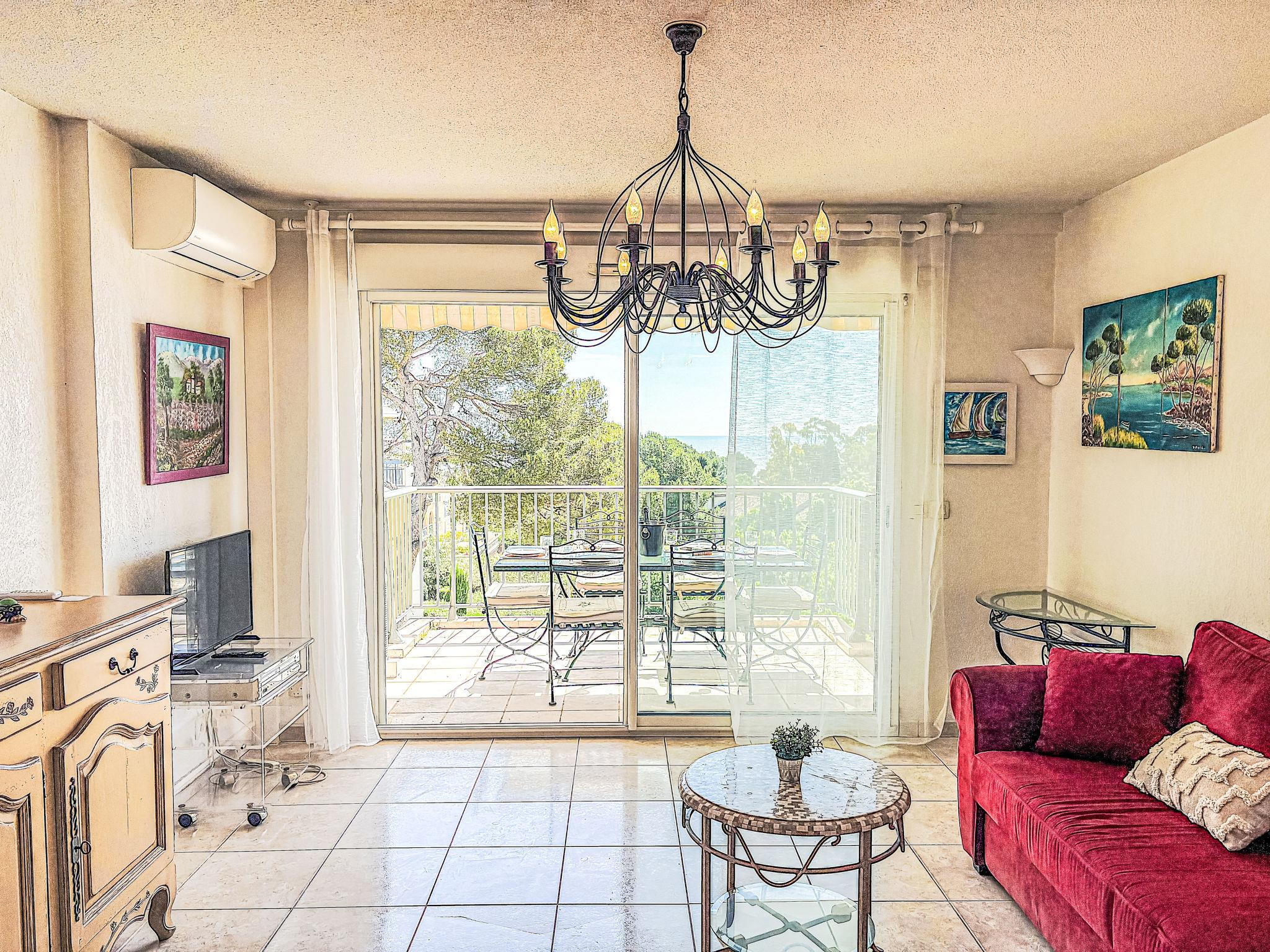 2-room apartment 53 m2 on 3rd floor, east facing position. Spacious, comfortable furnishings: living/dining room with 1 double sofabed (1 x 140 cm, length 200 cm), TV (flat screen), air conditioning and electric shutters. Exit to the terrace. 1 room with Dressing room with 1 bed (140 cm, length 200 cm), 1 x 1 bunk beds (90 cm, length 200 cm), air conditioning. Kitchen (mini-oven, 4 ceramic glass hob hotplates, toaster, kettle, microwave, freezer, electric coffee machine) with bar. Bathroom, sep. WC. Heating. Balcony 15 m2, south facing position and, east facing position. Balcony furniture. View of the sea and the swimming pool. Facilities: washing machine, iron, baby cot for up to 2 year olds, hair dryer. Internet (WiFi, free). Garage space n 70 (1 car), height 190 cm, width 240 cm. Please note: TV only FR. Smoke alarm. Offer by a private individual according to Art. 155, IV of CGI. LEBT0B7W