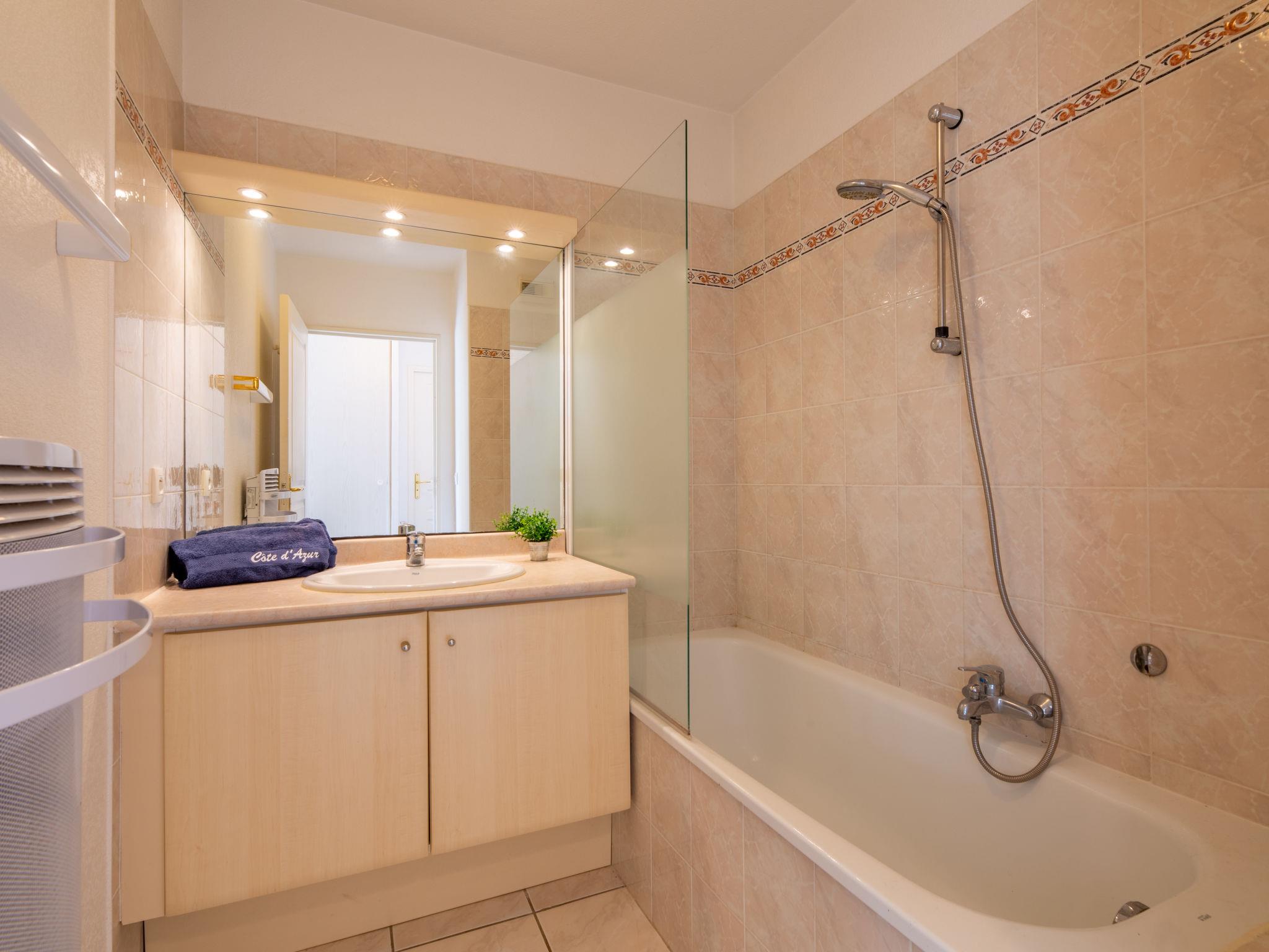 Modern, beautiful residence "Les Calanques du Parc", 4 storeys, built in 2003, surrounded by trees. In the resort, 200 m from the centre, in the residential district, 300 m from the sea, 300 m from the beach. For shared use: park (fenced), swimming pool angular fenced (seasonal availability: 15.May. - 28.Sep. pool opening hours: 09:00-20:00). Children's pool. In the complex: lift. Roofed, parking. Shop 350 m, shopping centre 5 km, 5 minute walk to the centre, bus stop "Grand Parc" 260 m, railway station "Fréjus" 6 km, sandy beach 500 m, park "Areca" 100 m, diving center 6 km, thermal baths "Thalasso de Port Fréjus" 6 km. Sports harbour 500 m, golf course (18 hole) 8 km, sailing school 7 m, riding stable 1 km, sports centre 500 m. Nearby attractions: Lunapark, Aqualand 5 km, Fréjus 6 km, Saint Raphaël 8 km, St Tropez 30 km, Cannes 47 km, Nice 71 km. Well-known ski regions can easily be reached: Auron, Isola 2000 150 km. Well-known lakes can easily be reached: Lac de St Cassien 45 km, Lac du Du Verdon 90 km. Hiking paths: Estérel 16 km, Sentier du Littoral 300 m. The keys‘ handover takes place by the agency Interhome in Saint Aygulf.