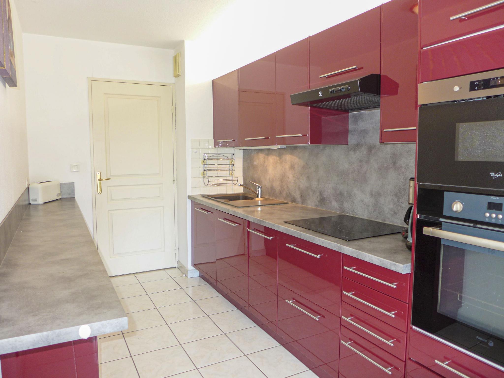3-room apartment 72 m2, on the upper ground floor. Comfortable and modern furnishings: living/dining room with panoramic window with 1 double sofabed (1 x 140 cm, length 190 cm), TV, flat screen and air conditioning. Exit to the terrace. 2 rooms, each room with 1 french bed (1 x 160 cm, length 200 cm). Kitchen (3 hot plates, oven, dishwasher, toaster, kettle, microwave, freezer, electric coffee machine). Bathroom, sep. WC. Electric heating. Terrace 20 m2. Terrace furniture, deck chairs (2). Facilities: washing machine, iron. Internet (WiFi, extra). Garage space n 41, height 200 cm. Please note: suitable for families apartment street side. TV only FR. Smoke alarm. FJS1061HT