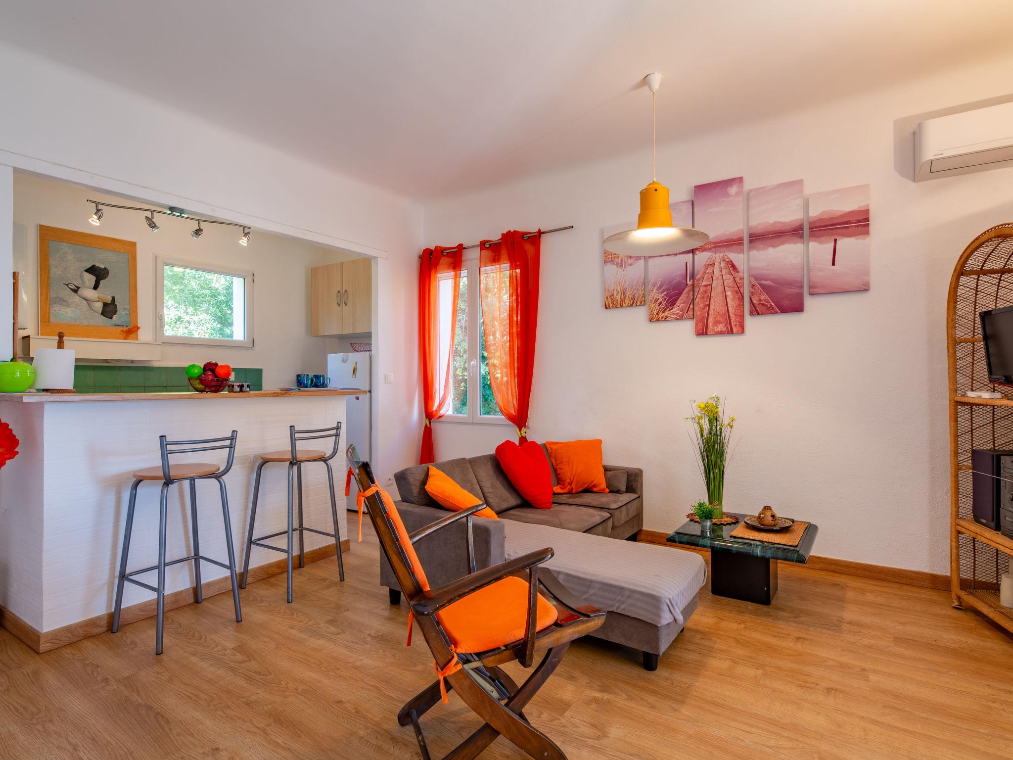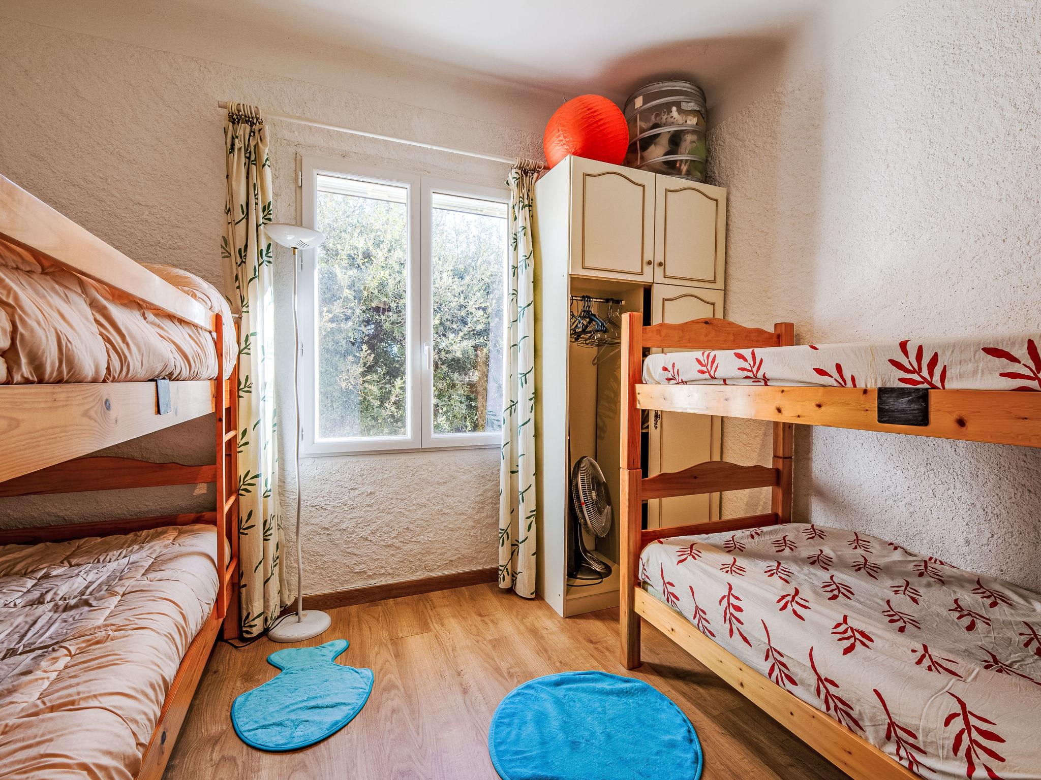 3-room house on 1st floor. Cosy furnishings: living/dining room with panoramic window with TV (flat screen), hi-fi system and air conditioning. Exit to the terrace. 1 room with 1 french bed (2 x 80 cm, length 190 cm), fan. 1 room with 2 x 1 bunk beds (90 cm, length 190 cm), fan. Open kitchen (3 induction hot plates, toaster, kettle, microwave, freezer, electric coffee machine, Capsules for coffee machine (Nespresso) extra). Shower/WC. Electric heating. Large terrace 15 m2, roofed, east facing position. Terrace furniture. View of the sea. Facilities: washing machine, iron, hair dryer. Internet (WiFi, extra). Parking. Please note: suitable for families. Maximum 1 small pet/ dog allowed. TV only FR. Smoke alarm. Offer by a private individual according to Art. 155, IV of CGI.