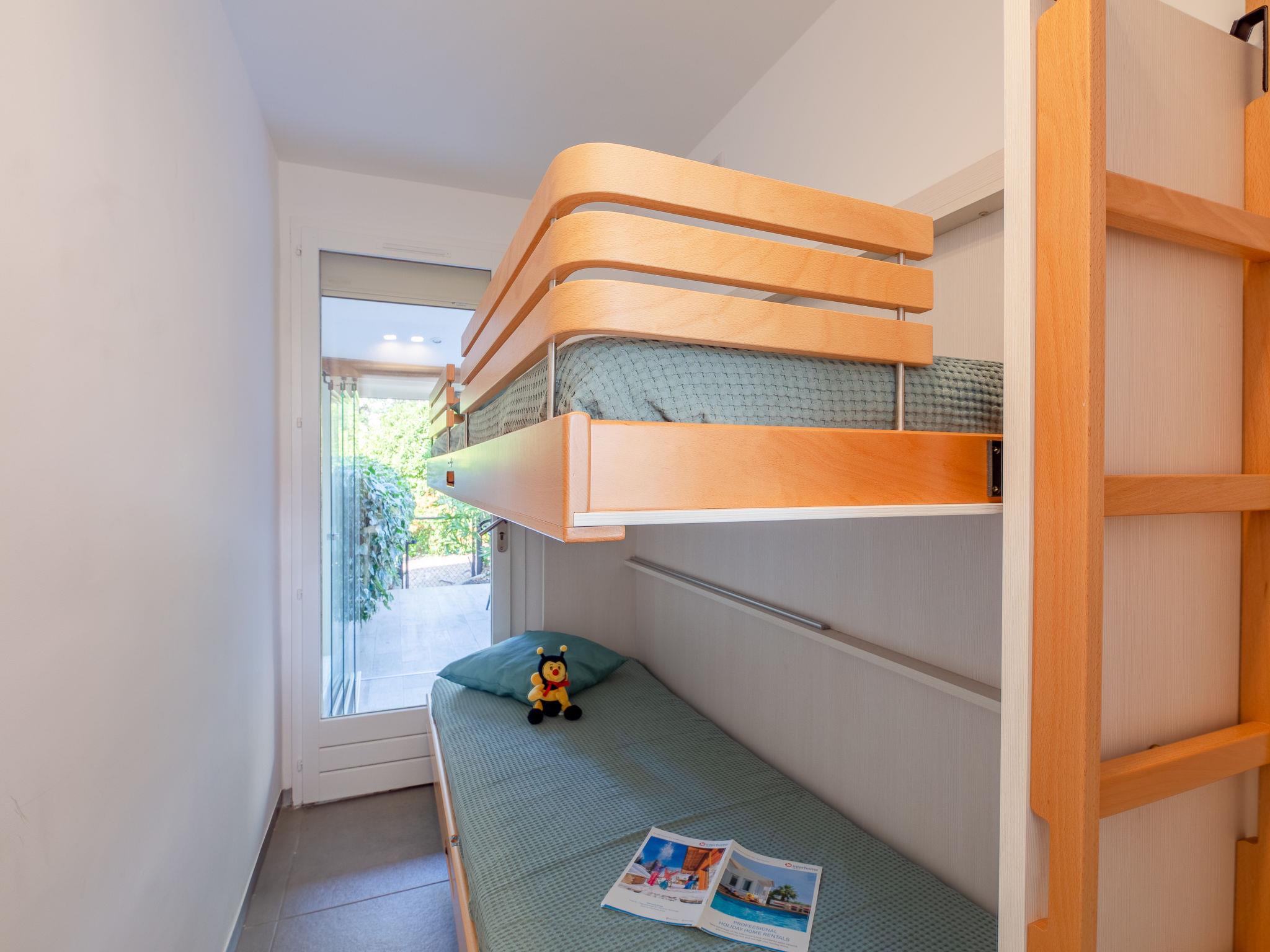 3-room apartment 42 m2, on the upper ground floor, south-east facing position. Object suitable for 2 adults + 2 children. Bright, renovated in 2022, simple and comfortable furnishings: dining room with TV (flat screen), air conditioning. Exit to the terrace. 1 small room with 1 x 2 bunk beds (80 cm, length 190 cm). 1 room with panoramic window Dressing room with 1 french bed (1 x 140 cm, length 190 cm), fan. Open kitchen (oven, dishwasher, 3 induction hot plates, toaster, kettle, microwave, freezer, electric coffee machine). Exit to the terrace. Shower, sep. WC. Heating. Terrace 15 m2 partly roofed, east facing position terrace 23 m2, west facing position. Terrace furniture, deck chairs (2). Facilities: washing machine, dryer, iron, hair dryer. Internet (WiFi, free). Parking space n 21 (1 car). Please note: non-smokers only. Smoke alarm. Offer by a private individual according to Art. 155, IV of CGI. QEFCSN