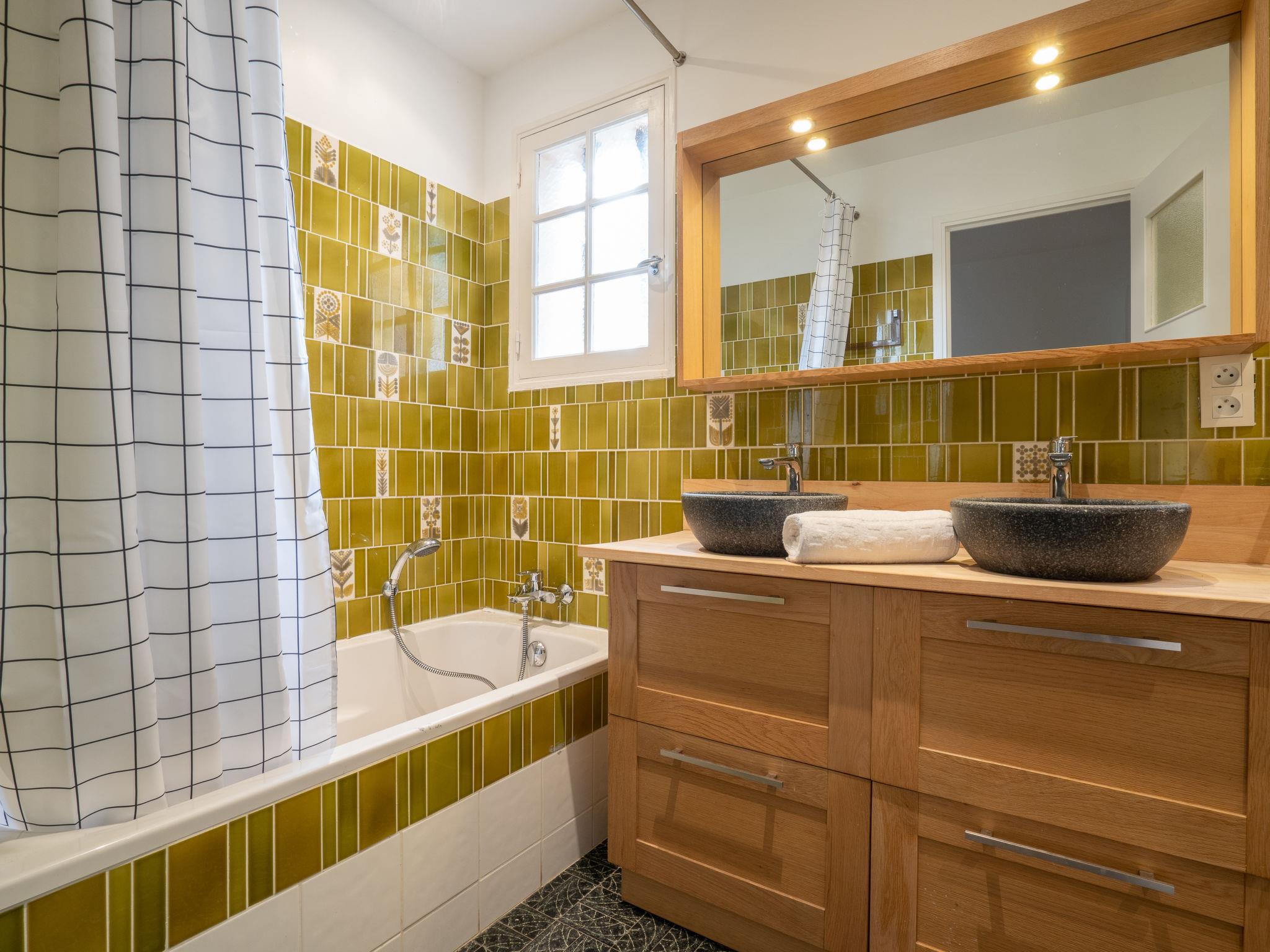 6-room villa 150 m2 on 2 levels, south-west facing position. Simple furnishings: living/dining room with TV, digital TV, flat screen and fan. Exit to the terrace. 1 room with 1 french bed (1 x 140 cm, length 190 cm). Exit to the garden. 1 room with 1 french bed (1 x 140 cm, length 190 cm), air conditioning. Exit to the balcony. 1 room with 2 beds (80 cm, length 190 cm). Exit to the garden. Kitchen (mini-oven, dishwasher, 4 ceramic glass hob hotplates, toaster, kettle, microwave, freezer, electric coffee machine). Bathroom, sep. WC. Heating. On the lower ground floor: 1 room with 1 french bed (1 x 160 cm, length 200 cm), fan. Exit to the garden. 1 room with 2 beds (80 cm, length 200 cm), fan. Exit to the garden. Bath/shower, sep. WC. Heating. Terrace, garden. Terrace furniture, barbecue, deck chairs (8). Distant view of the sea. Facilities: washing machine, iron, baby cot for up to 2 year olds, hair dryer. Internet (WiFi, free). Parking. Please note: TV only FR. Smoke alarm. FJS663HT