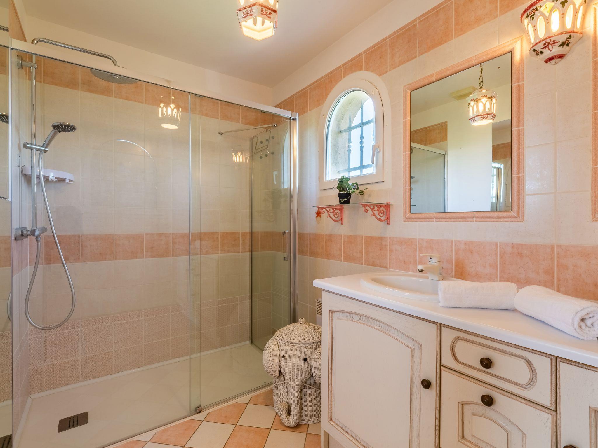 6-room villa 130 m2 on 2 levels. Beautiful furnishings: large living/dining room with panoramic window with TV (flat screen), hi-fi system and air conditioning. Exit to the terrace, to the swimming pool. 1 children's room with 1 x 2 bunk beds (80 cm, length 190 cm), hand-basin and shower. 1 room with 2 beds (90 cm, length 200 cm), hand-basin and shower. Exit to the terrace, to the swimming pool. Large kitchen (oven, dishwasher, 4 ceramic glass hob hotplates, toaster, kettle, microwave, freezer, electric coffee machine) with small dining table. Exit to the terrace, to the swimming pool. Sep. WC. Electric heating. Upper floor: 2 rooms, each room with 1 french bed (1 x 160 cm, length 200 cm), hand-basin, shower and air conditioning. Exit to the balcony. Sep. WC. Large terrace 120 m2, south facing position, small porch. Terrace furniture, barbecue, deck chairs (4). Facilities: washing machine, safe, iron, children's high chair, baby cot for up to 3 year olds, hair dryer. Internet (WiFi, free). Parking (2 cars). Please note: suitable for families. Non-smoking house. TV only FR. Smoke alarm. 2YN5BZ