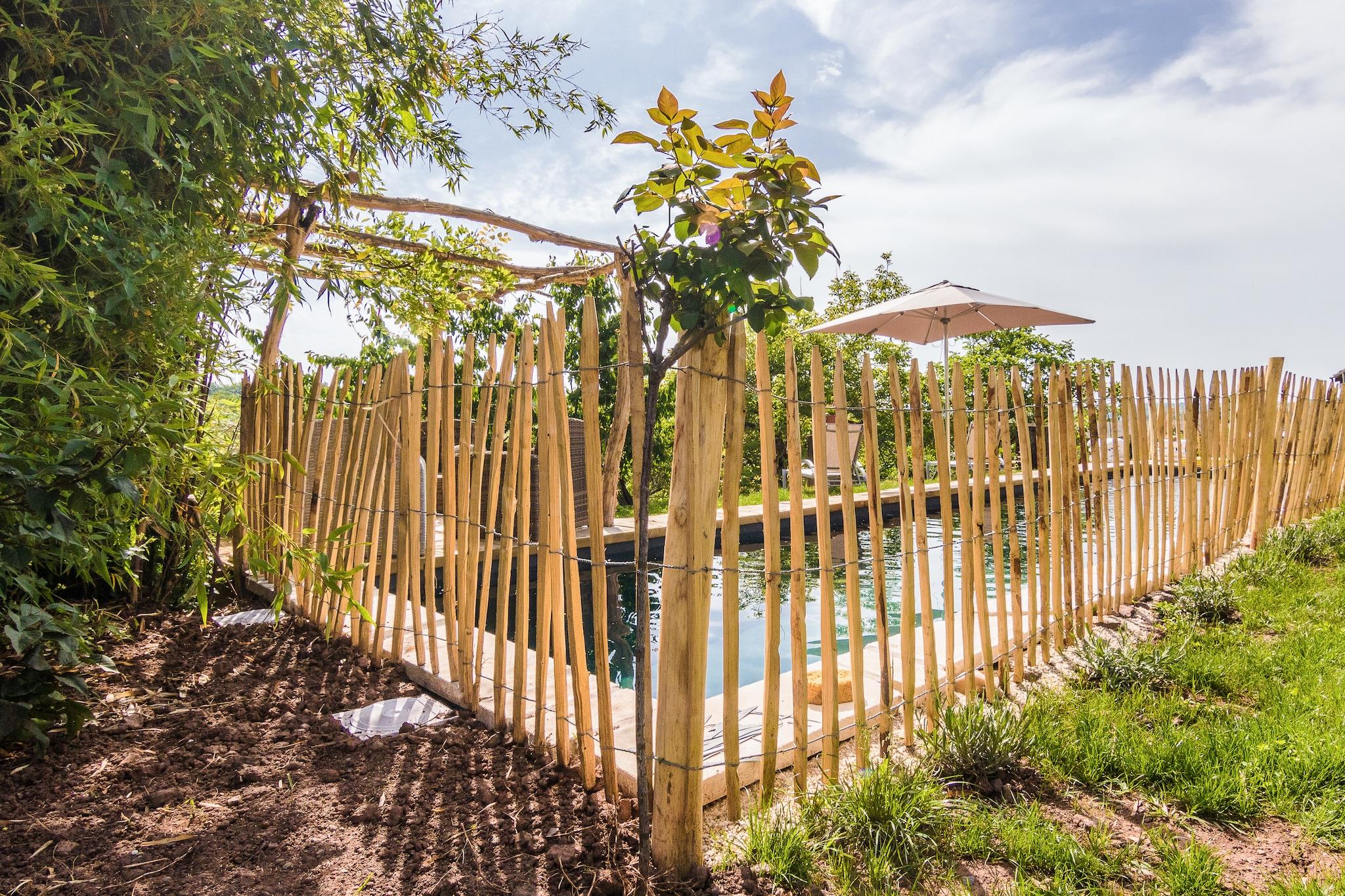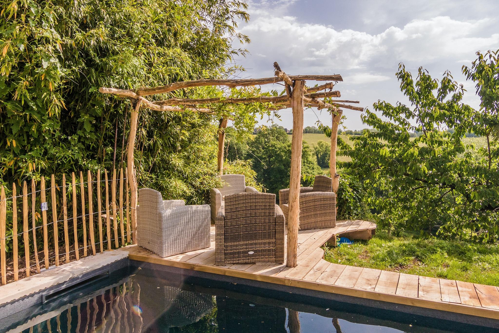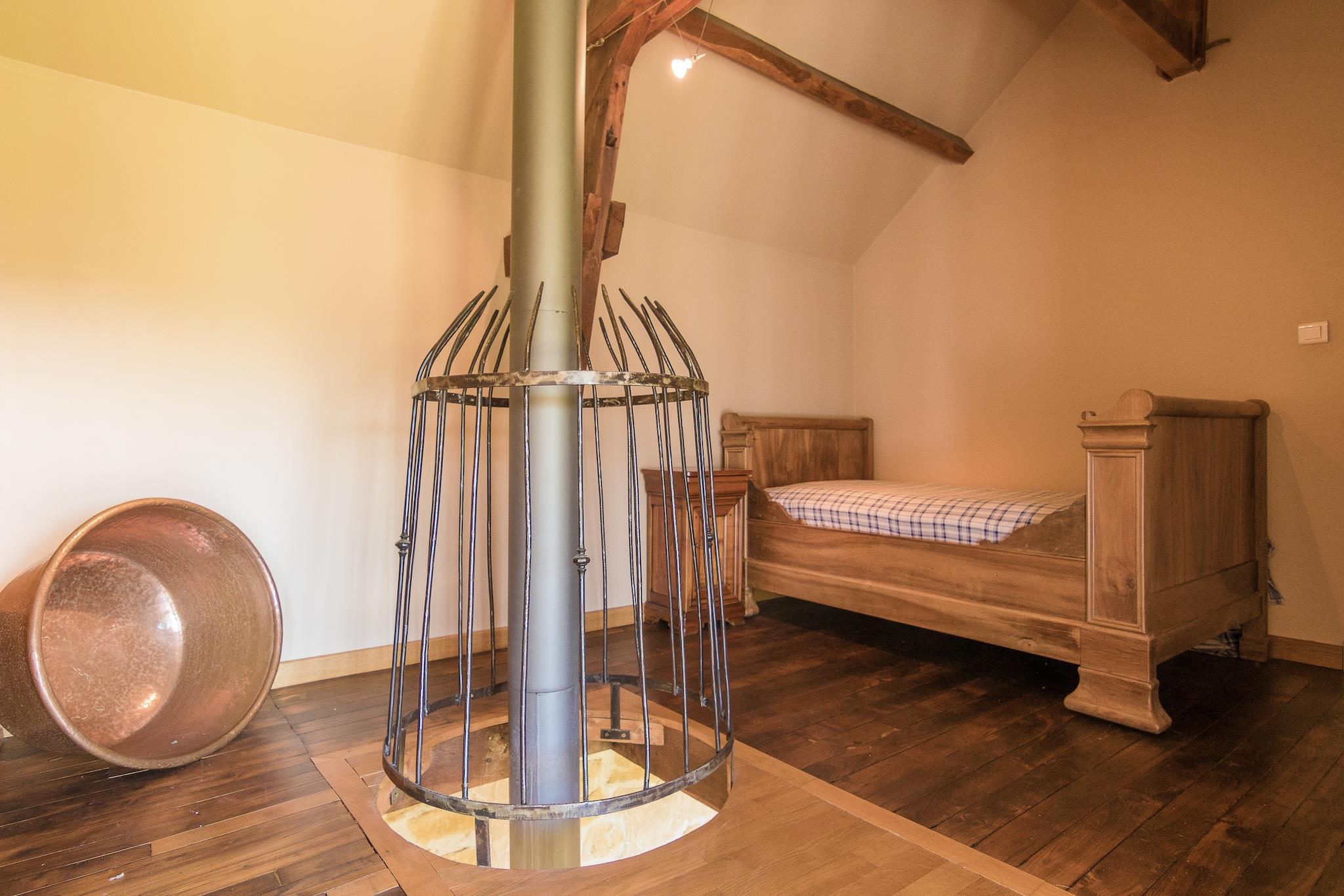 Ground floor: (Living room(dining table(6 persons)(TV, seating area), stove(wood)), open kitchen(electric kettle, toaster, cooker(4 ring stoves, gas, induction), hood, coffee machine, oven, dishwasher, fridge-freezer), toilet) On the 1st floor: (bedroom(double bed(boxspring, twin duvet , synthetics, 140 x 190 cm), toilet, balcony), bedroom(single bed(duvet, synthetics, 90 x 200 cm), single bed(duvet, synthetics)), Gallery bedroom(double bed(twin duvet , synthetics, 110 x 190 cm)), bathroom(shower, washbasin)) Guest house ground floor: (Living room(dining table(4 persons), stove(wood), seating area), open kitchen(hob(induction), coffee machine(filter), oven(mini), fridge-freezer), bathroom(shower, washbasin, toilet)) Guest house on the 1st floor: (bedroom(double bed)) camping cot, terrace(private), garden(private), garden furniture(7 persons), BBQ, BBQ, parking, deckchairs, swimming pool(private, outside, fenced, 12 x 3 m., opened from Jan upto and including Jan), Sunscreen, Swing set