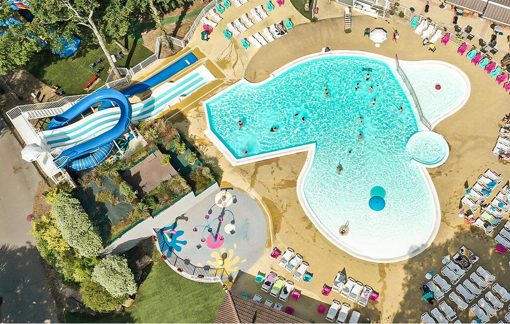 Auf Ihrer Terrasse können Sie gemeinsame Mahlzeiten im Freien genießen oder einfach die frische Atlantikluft einatmen. Auf dem Campingplatz erwarten Sie zudem zahlreiche Annehmlichkeiten wie ein Wasserpark mit Rutschen, ein Animationsteam und Sportmöglichkeiten – ein Urlaub voller Erholung und Spaß! Um alle Aktivitäten und den Wasserkomplex nutzen zu können, müssen Sie auf dem Campingplatz einen Fun Pass kaufen.