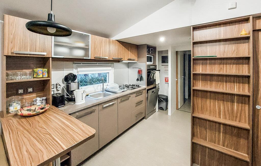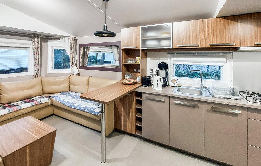 Dieses charmante Mobilheim liegt auf dem 4-Sterne-Campingplatz Siblu Les pierres Couchées und bietet mit gemütlichen Schlafzimmern und einem Badezimmer die ideale Unterkunft für Familien. Genießen Sie entspannte Urlaubstage in einer modernen und einladenden Umgebung. Die Küche und der Wohnbereich sind perfekt ausgestattet, um es sich nach einem Tag am Strand bequem zu machen.