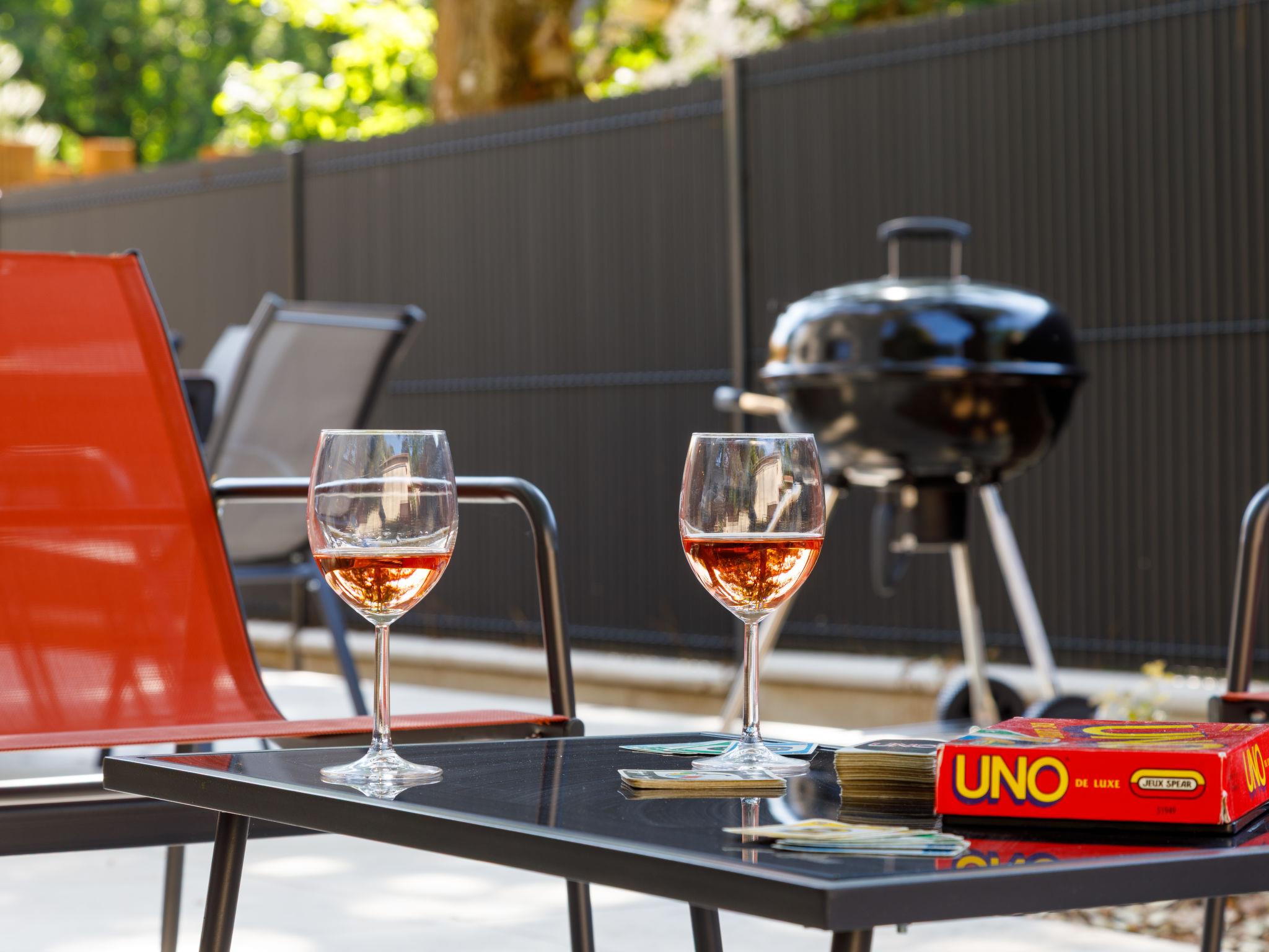 "Ohana", 4-room house 100 m2 on 2 levels, south-west facing position. Living/dining room with Scandinavian wood stove (only for decoration), dining table and TV (flat screen). 1 room with Dressing room with 1 french bed (1 x 160 cm, length 200 cm), shower. Open kitchen (oven, dishwasher, 1 induction hot plates, 3 gas rings, microwave, freezer). Sep. WC. Upper floor: 1 room with 1 french bed (1 x 160 cm, length 200 cm). 1 room with 1 bed (90 cm, length 190 cm), 1 double wall-trunk bed (2 x 80 cm, length 200 cm). Shower/WC. Underfloor heating. Terrace 50 m2, south facing position and west facing position, garden 330 m2, south facing position and west facing position. Terrace furniture, barbecue. Facilities: washing machine, iron, baby cot for up to 2 year olds, hair dryer. Internet (WiFi, free). Please note: non-smoking house. Smoke alarm. Offer by a private individual according to Art. 155, IV of CGI.