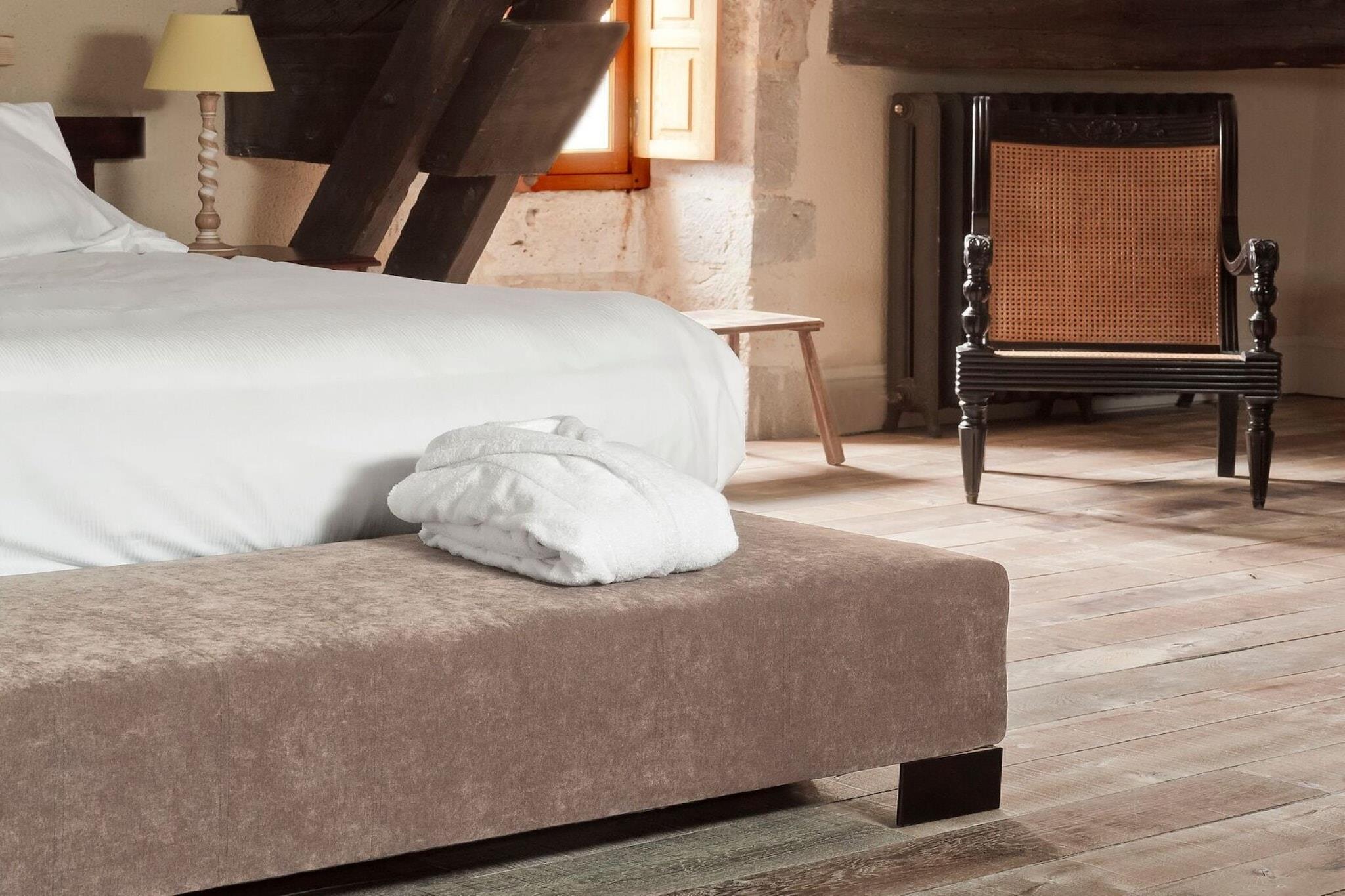 ?THE UNIQUE STORY, AS TOLD BY THE HOMEOWNER A stately, centuries-old castle in a remote village in the Nouvelle-Aquitaine region of southern France... It seems like the beginning of a romantic Hollywood film or a historical novella. But at Château La Colombie, that fairy-tale picture is pure reality. The history of this imposing castle dates back to the 1300s. Today, you can still find many traces of that rich past. You will discover many authentic elements inside. These are mixed with a handsome, contemporary style. Up to eighteen guests can stay here in spacious, luxurious rooms. With or without a comfortable en-suite bathroom. From the bed to the linen: all elements and building materials are of the highest quality. Yet each room radiates a homely, cosy atmosphere. And from the kitchen you can gaze out over the phenomenal, almost royal, garden. Outside, an impressive swimming pool and a sunny terrace await you. On one of the castle towers you will discover another hidden treasure: a bubble bath with a magnificent, panoramic view. Château La Colombie is for anyone who is searching for peace and quiet. Guests stay here in the middle of nature, away from the hustle and bustle. Ideal for recharging your batteries and enjoying a wonderful time with friends or family. Would you like to go out for a while? Then be sure to explore the extensive walking and cycling routes in the area. They will give you a taste of the real 'douce France'. By car you can easily hop over and back to the many idyllic villages in the area. There you can join a musical performance in summer. Or you can browse the weekly market. In search of regional delicacies. Or for a hidden brocante treasure. DETAILS - This exclusive chateau near Agen can provide a stunning backdrop for a fairytale wedding - There is a pretty courtyard, a fireplace with a seating area, a sauna and a hot tub with panoramic views - There is even a heliport!