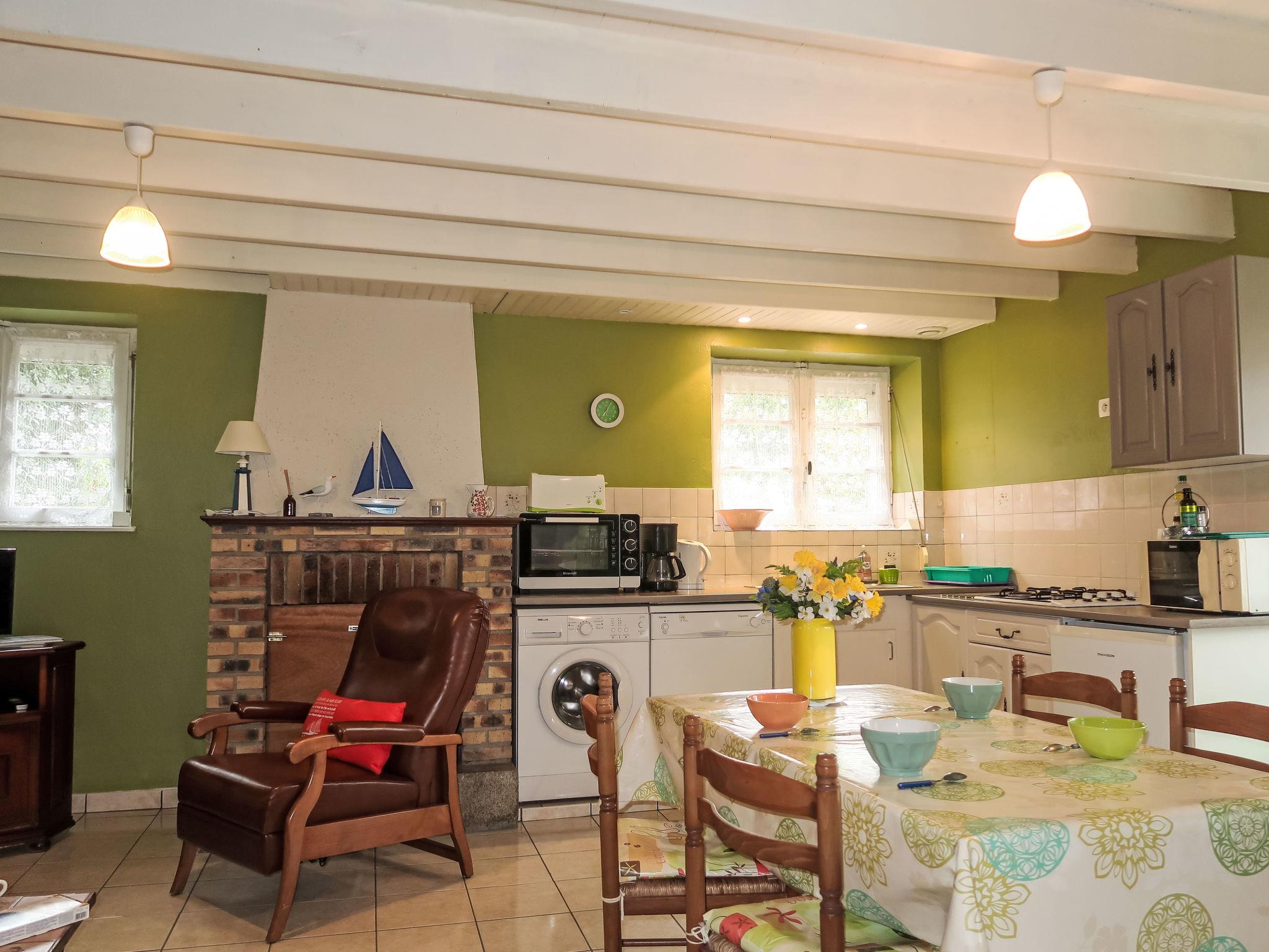 Single-family house "L'Egven", surrounded by meadows and fields. In the hamlet Legven 3 km from the centre of St. Cast-le-Guildo, 3 km from the centre of Matignon, 20 km from the centre of Dinard, 3.8 km from the sea. For shared use: garden 1'200 m2 with lawn and plants, parking on the premises. Supermarket 3 km, restaurant 3 km, bus stop 3 km, sandy beach 3.8 km. Golf course (18 hole) 3 km. Please note: the owner lives on the same property.