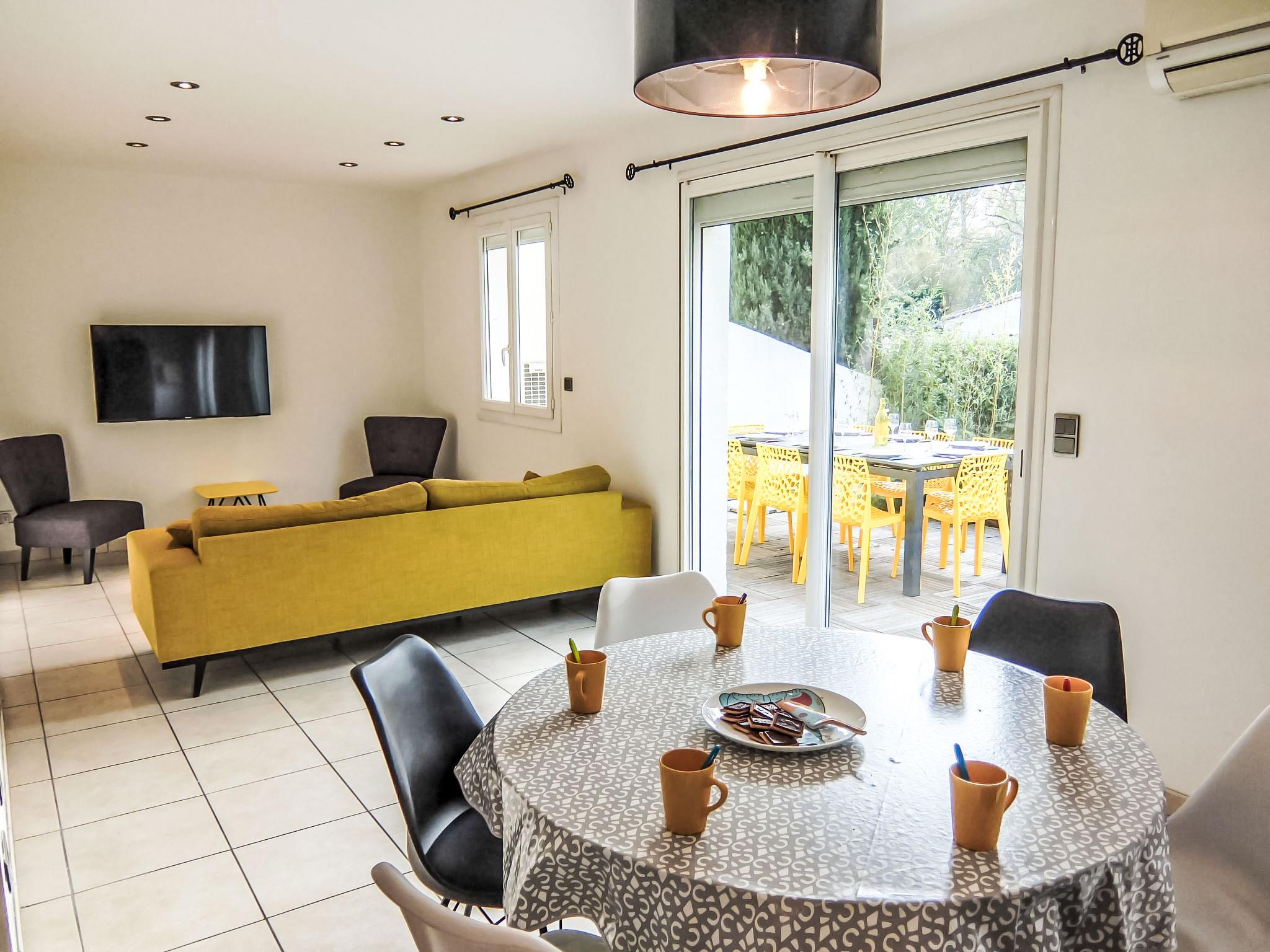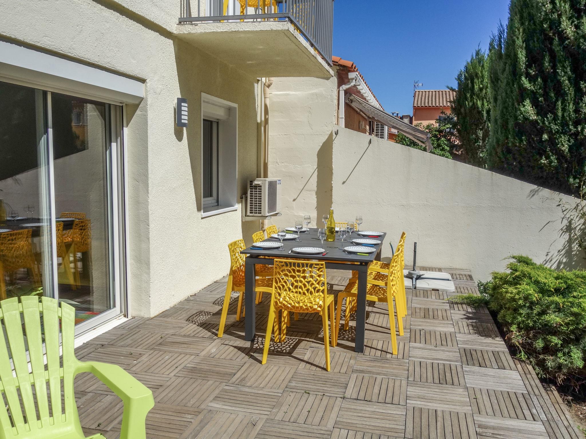 Beautiful terraced house "Villa de la Mer", 2 storeys. In the district of Las Planas, in a quiet position residential area (villas), 1.5 km from the sea, 1.5 km from the beach. Private: garden (fenced). In the house: table tennis. Public parking on the road. Shop 1.5 km, supermarket 500 m, restaurant 1 km, bus stop "Rapatel" 1 km, railway station "Elne" 7.3 km, sandy beach "Plage du pont tournant" 1.5 km. Sports harbour 1.5 km, golf course (27 hole) 4.5 km, sailing school 2 km, minigolf 3 km, riding stable 300 m, sports centre 2.5 km. Nearby attractions: Aqualand 3.5 km.