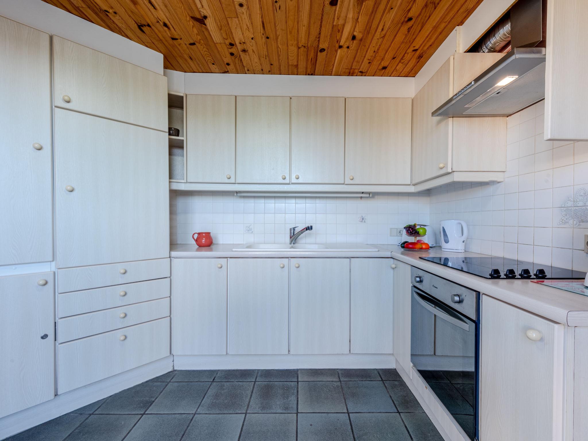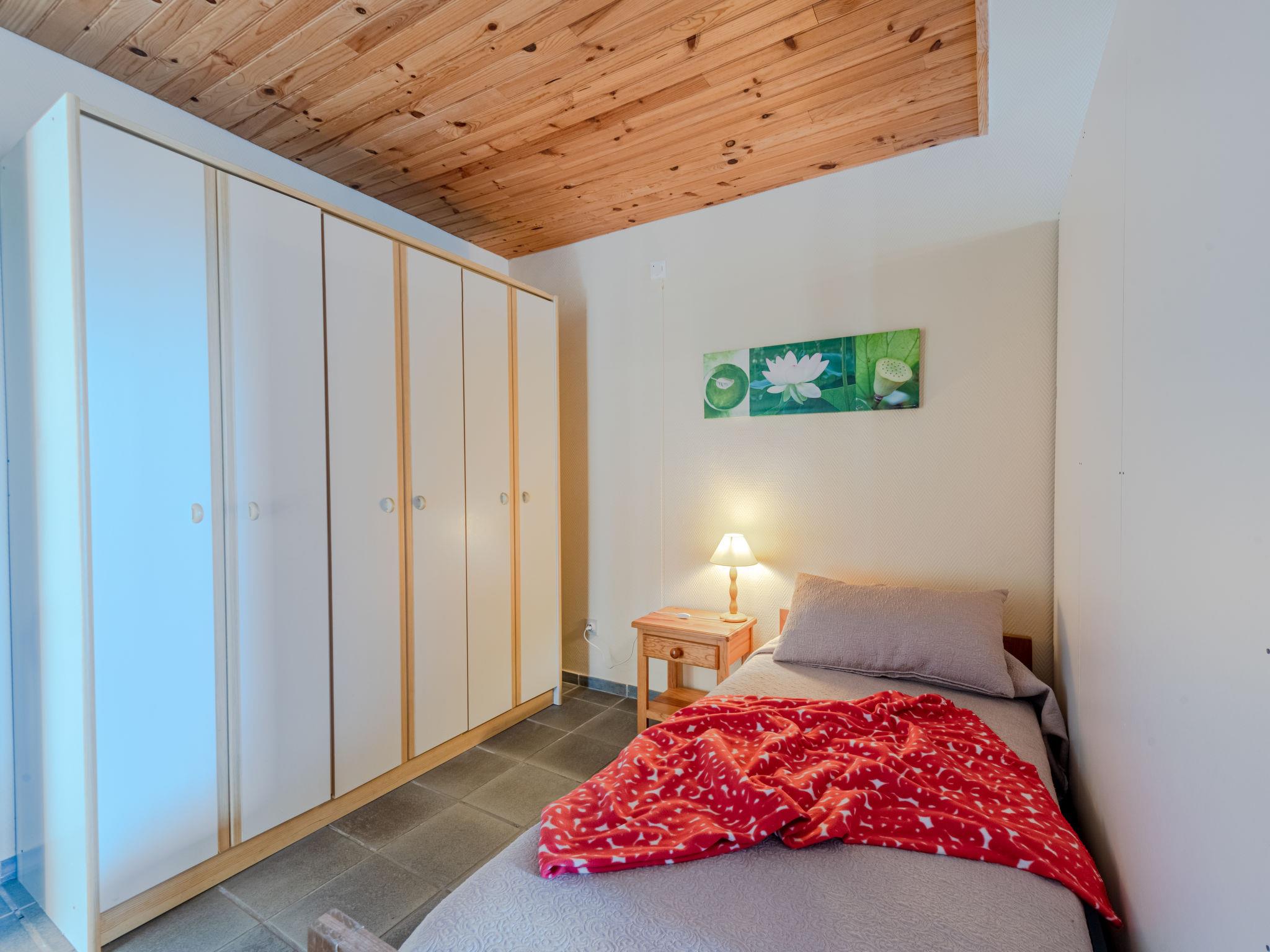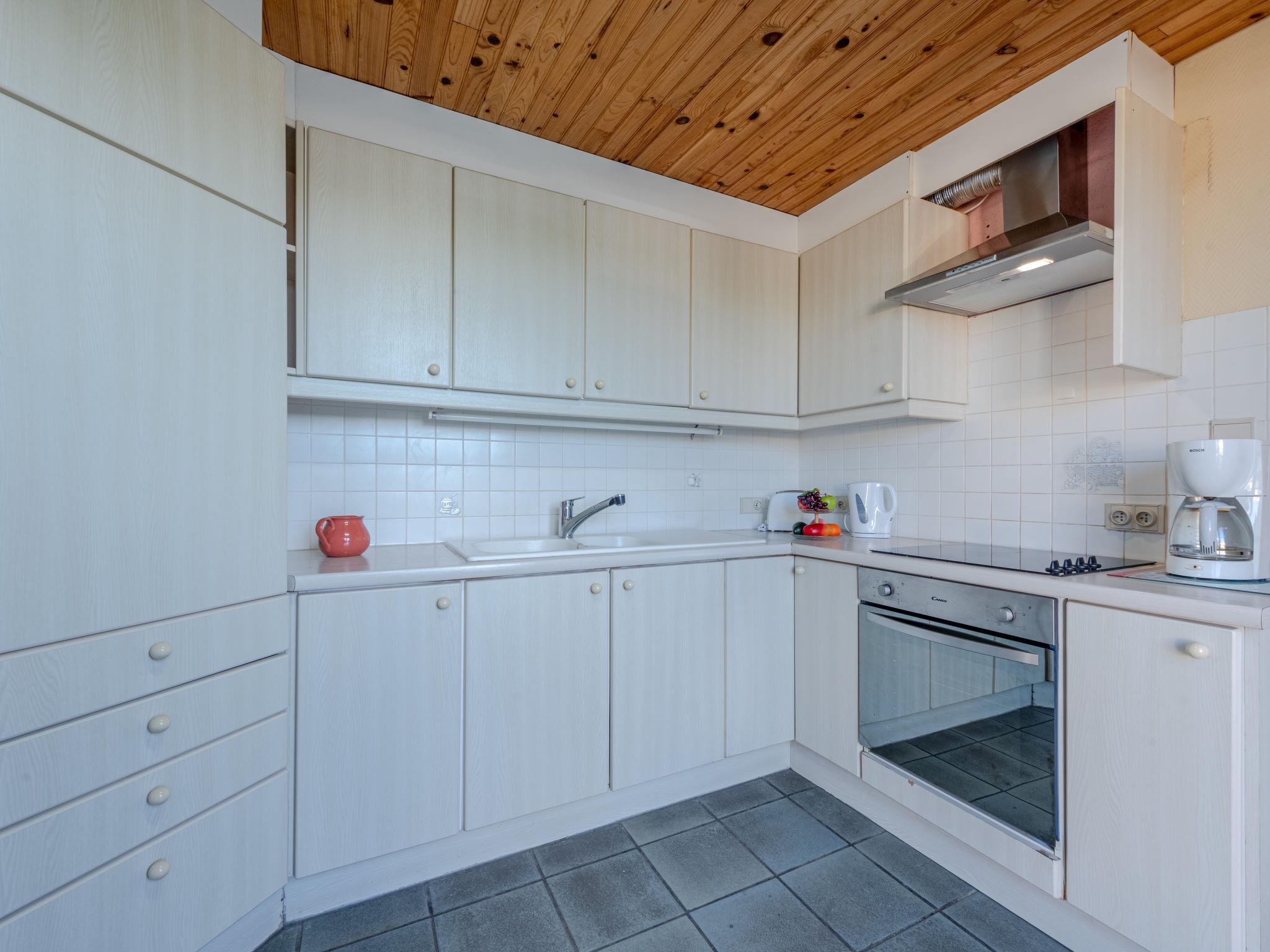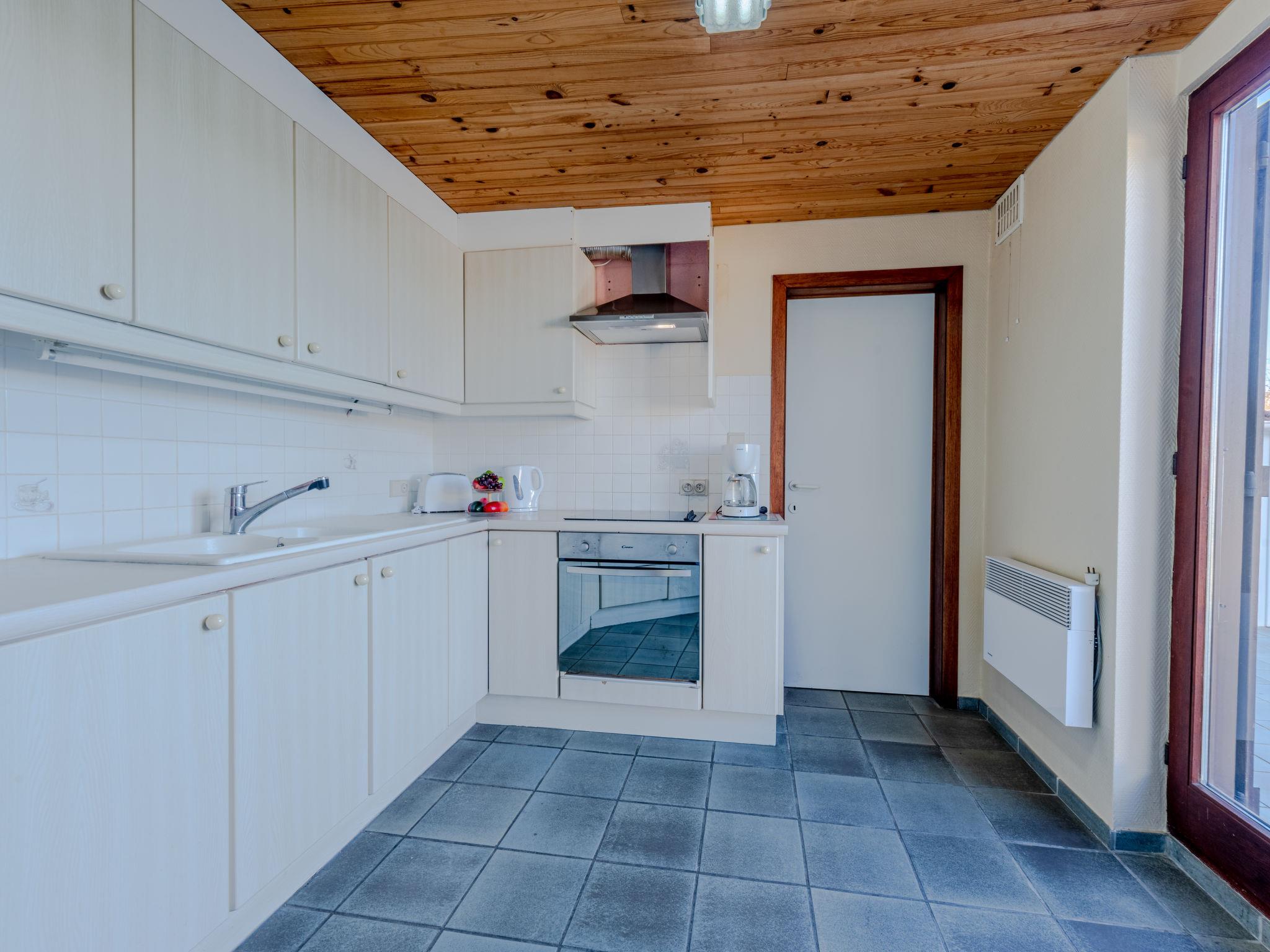 4-room terraced house 120 m2 on 2 levels. Living/dining room with TV. Exit to the terrace. 1 room 23 m2 with 1 bed (80 cm, length 190 cm), 1 french bed (180 cm, length 190 cm). Exit to the terrace. Open kitchen (4 hot plates, oven, microwave, freezer, electric coffee machine). Shower, sep. WC. Heating. Upper floor: (spiral staircase), 1 small room with 1 bed (80 cm, length 190 cm). 1 room with 2 beds (80 cm, length 190 cm). Terrace, north facing position terrace, south facing position, garden 250 m2. Terrace furniture. Facilities: washing machine. Internet (WiFi, extra). Please note: smoke alarm.