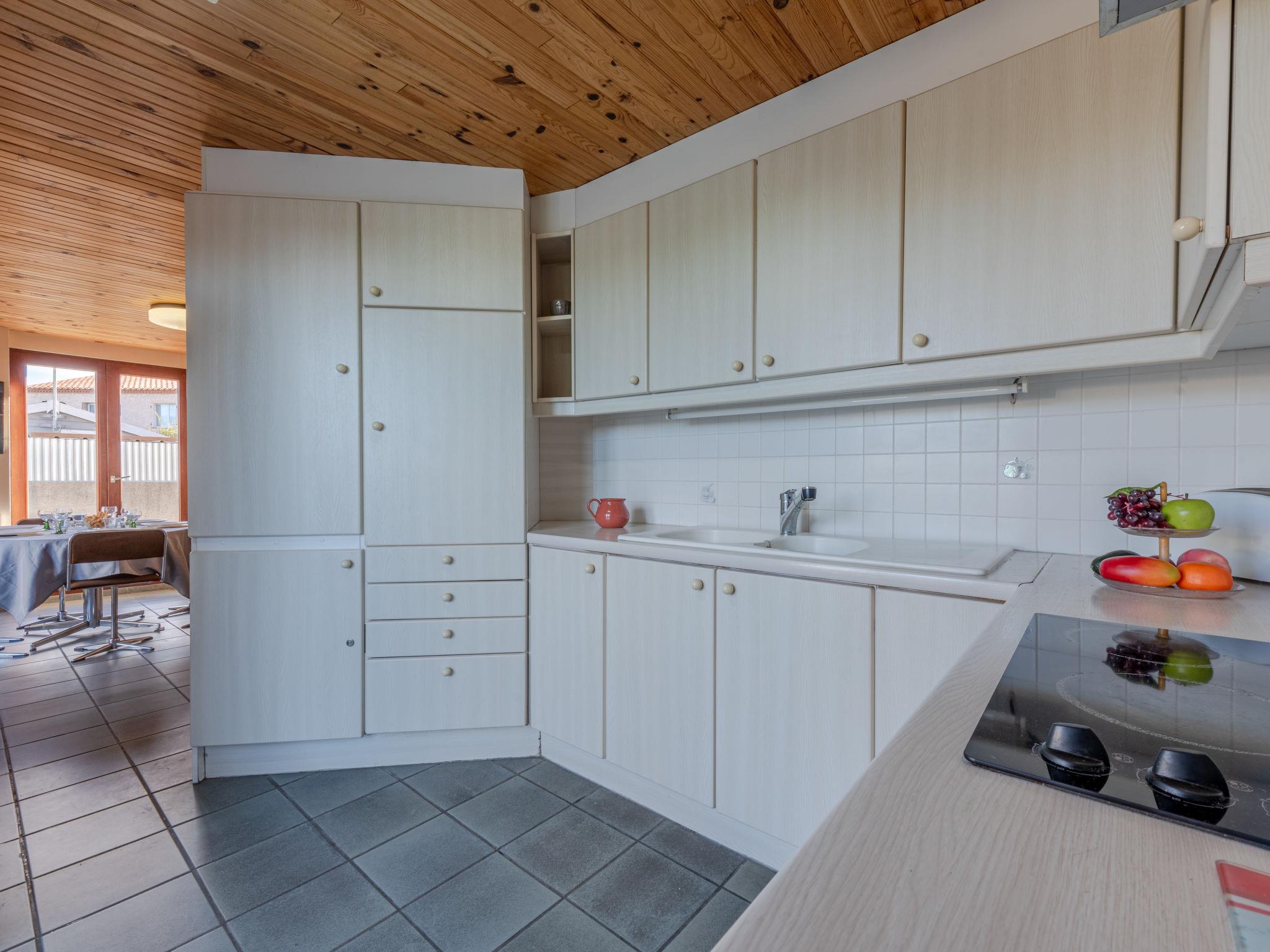 Terraced house "Lotissement du Stade". In the district of du Stade, 500 m from the sea, 500 m from the beach. Private: garden (fenced), parking at the house. Shop 750 m, supermarket 1.5 km, restaurant 900 m, bus stop 1 km, railway station "Elne" 9 km, sandy beach "Plage Nord" 500 m. Sports harbour 2.6 km, golf course (27 hole) 1.4 km, sailing school 4 km, minigolf 400 m, riding stable 3.5 km, sports centre 4.6 km. Nearby attractions: Aqualand 6.2 km. Please note: main road close by.