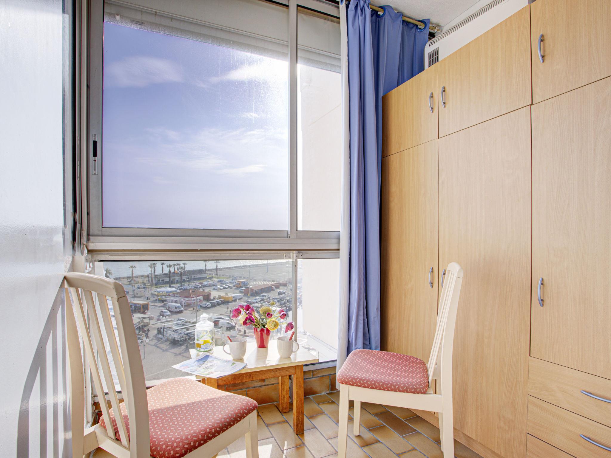 2-room apartment 40 m2 on 6th floor. Comfortable furnishings: living/dining room with TV (flat screen), air conditioning. 1 room with 1 french bed (140 cm, length 180 cm). Exit to the loggia. Sleeping alcove with 1 x 2 bunk beds (80 cm, length 180 cm). Kitchenette (4 hot plates, oven, dishwasher, microwave, freezer, electric coffee machine). Shower/WC. Electric heating. Very beautiful view of the sea and the port. Facilities: washing machine. Internet (WiFi, extra). Parking (fenced). Please note: smoke alarm. Instead of an enclosed bedroom, some sleeping areas are located in an open-plan area (gallery, alcove, etc.). Offer by a private individual according to Art. 155, IV of CGI.