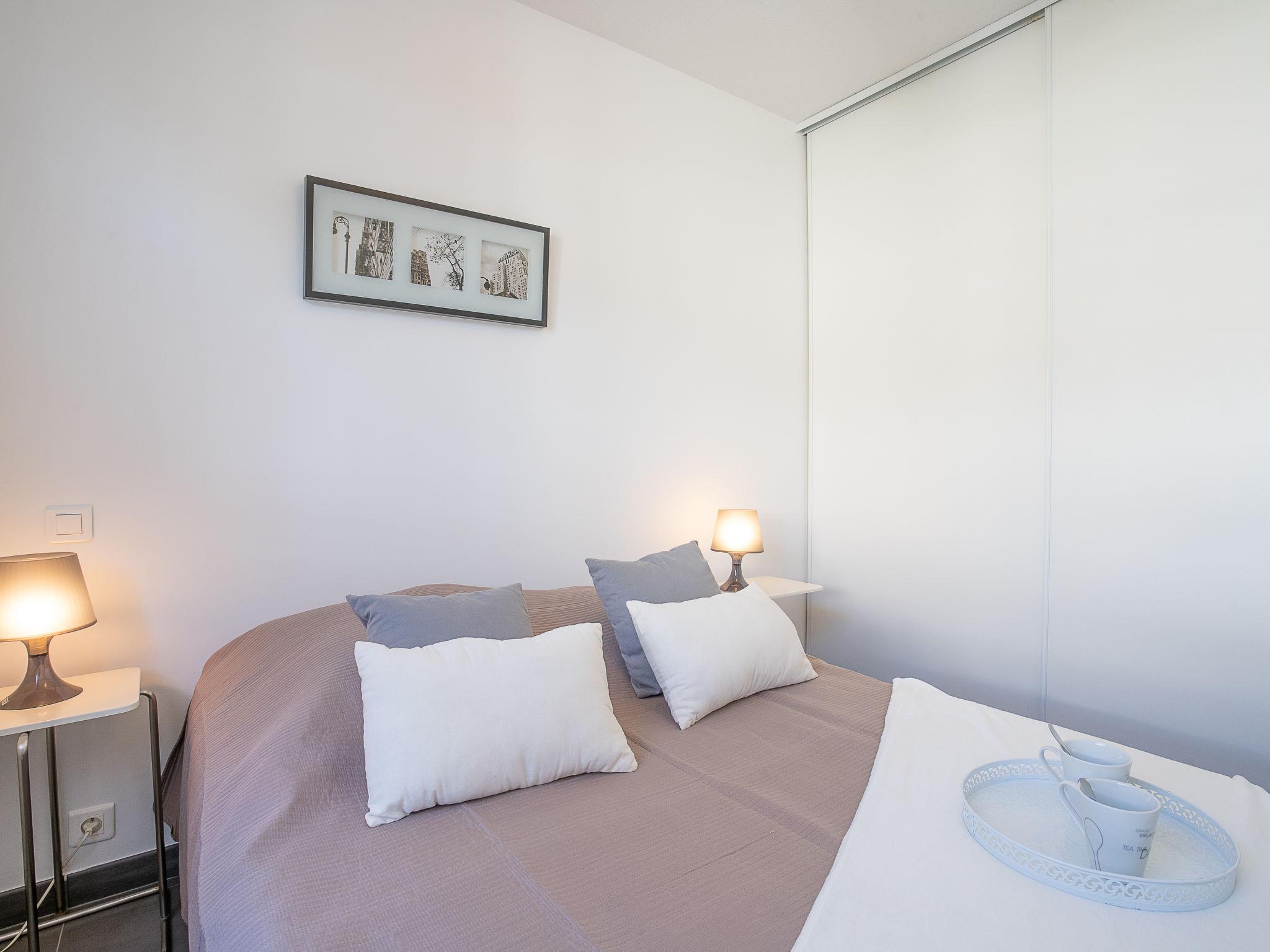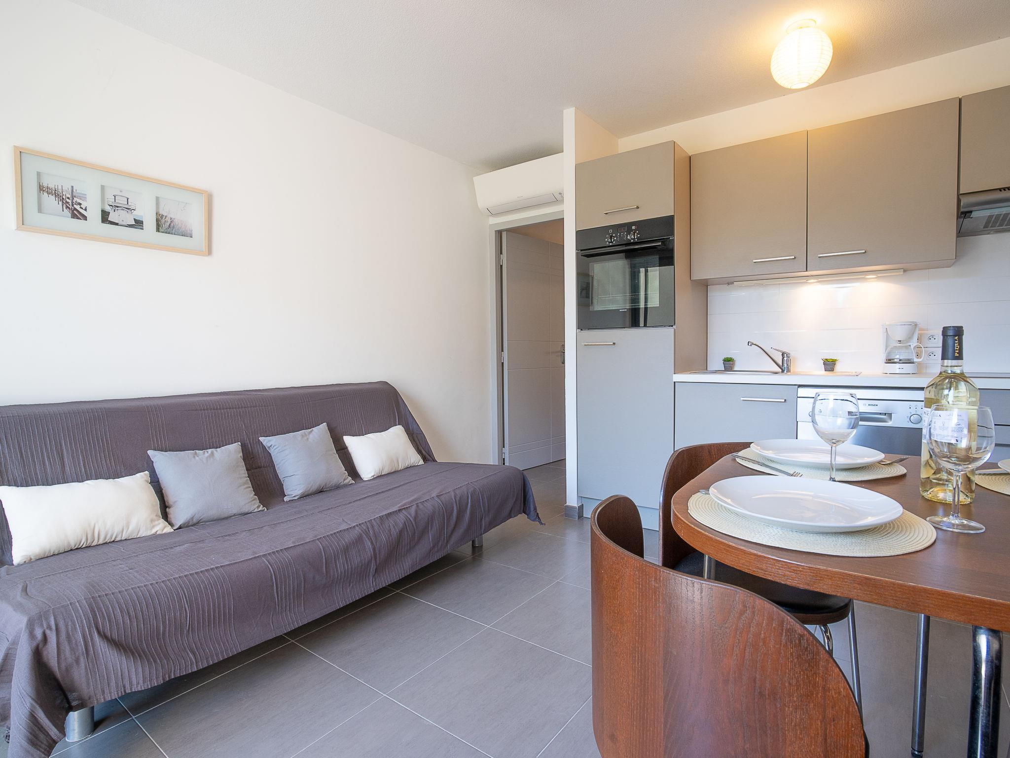 2-room apartment 33 m2 on 2nd floor. Living/dining room with 1 double sofabed (130 cm, length 190 cm), TV (flat screen). Exit to the terrace. 1 room with 1 french bed (140 cm, length 200 cm). Kitchenette (oven, dishwasher, 4 ceramic glass hob hotplates, microwave, freezer, electric coffee machine). Shower/WC. Air-conditioning. Terrace 10 m2, roofed. Terrace furniture. Beautiful view of golf course. Facilities: washing machine. Internet (WiFi, extra). Parking. Please note: smoke alarm. GOLF CLAIR- FR6665.815.15
