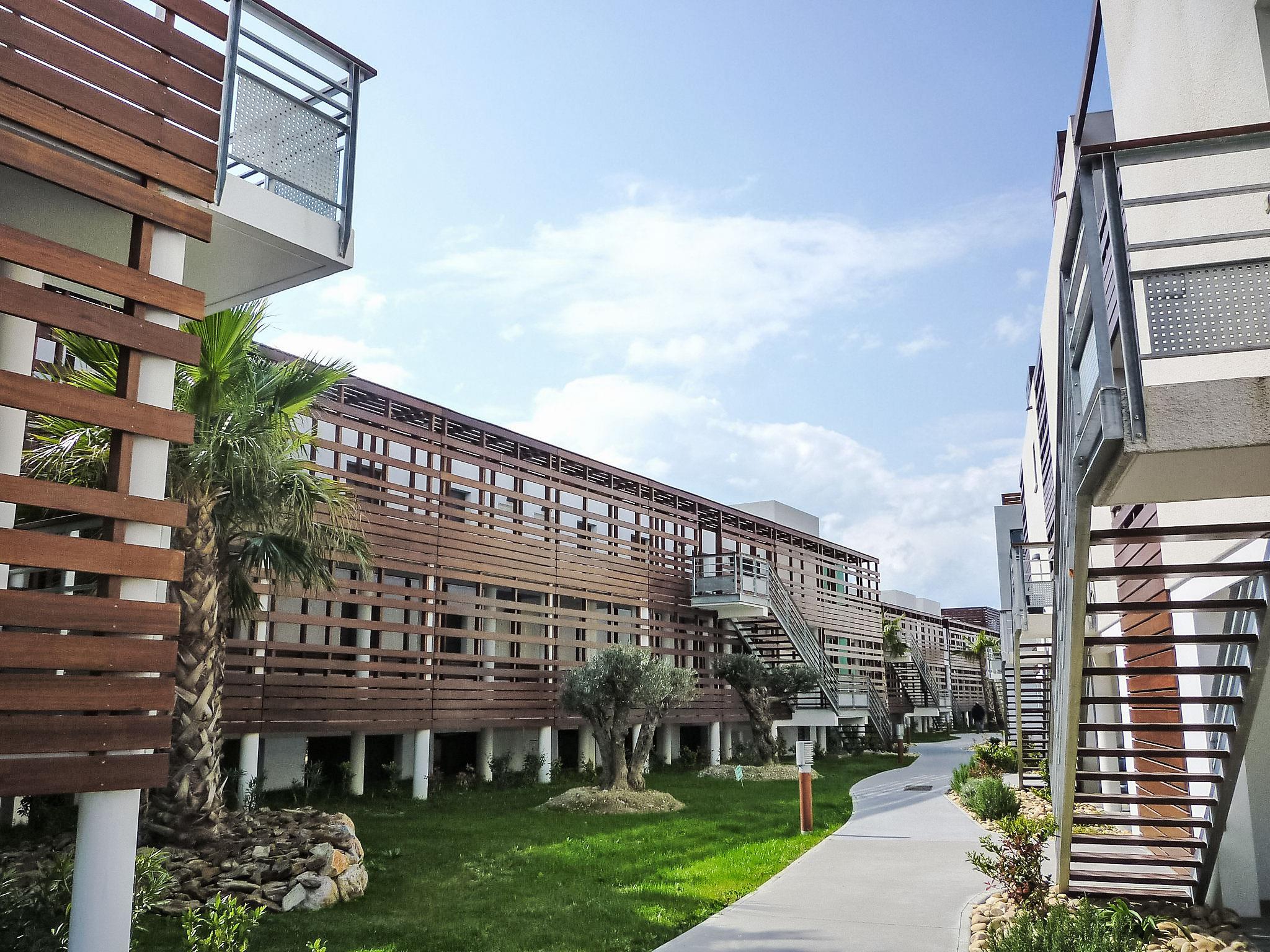 Modern residence "Le Golf Clair", 2 storeys. In the district of Golf, 1.6 km from the sea, 1.6 km from the beach, on the golf course. For shared use: swimming pool angular fenced (10 x 8 m, depth 150 cm, seasonal availability: 01.Jul. - 31.Aug.). In the complex: lift. Shop 2.2 km, supermarket 2.5 km, restaurant 200 m, bus stop 1.8 km, railway station "Elne" 8.4 km, sandy beach "Plage Nord, plage de l'Art" 1.6 km. Sports harbour 3.7 km, golf course (27 hole) 200 m, sailing school 5.5 km, minigolf 1.5 km, riding stable 4.5 km, sports centre 6 km. Nearby attractions: Saint Cyprien Golf Resort 200 m, Aqualand 7 km.