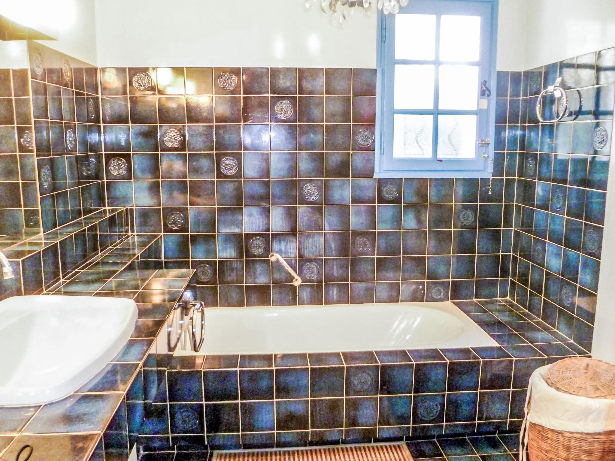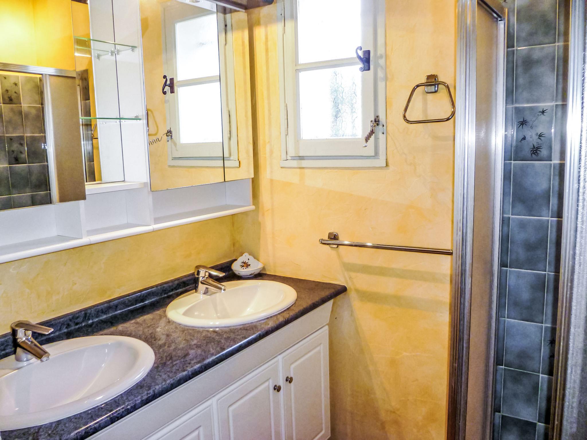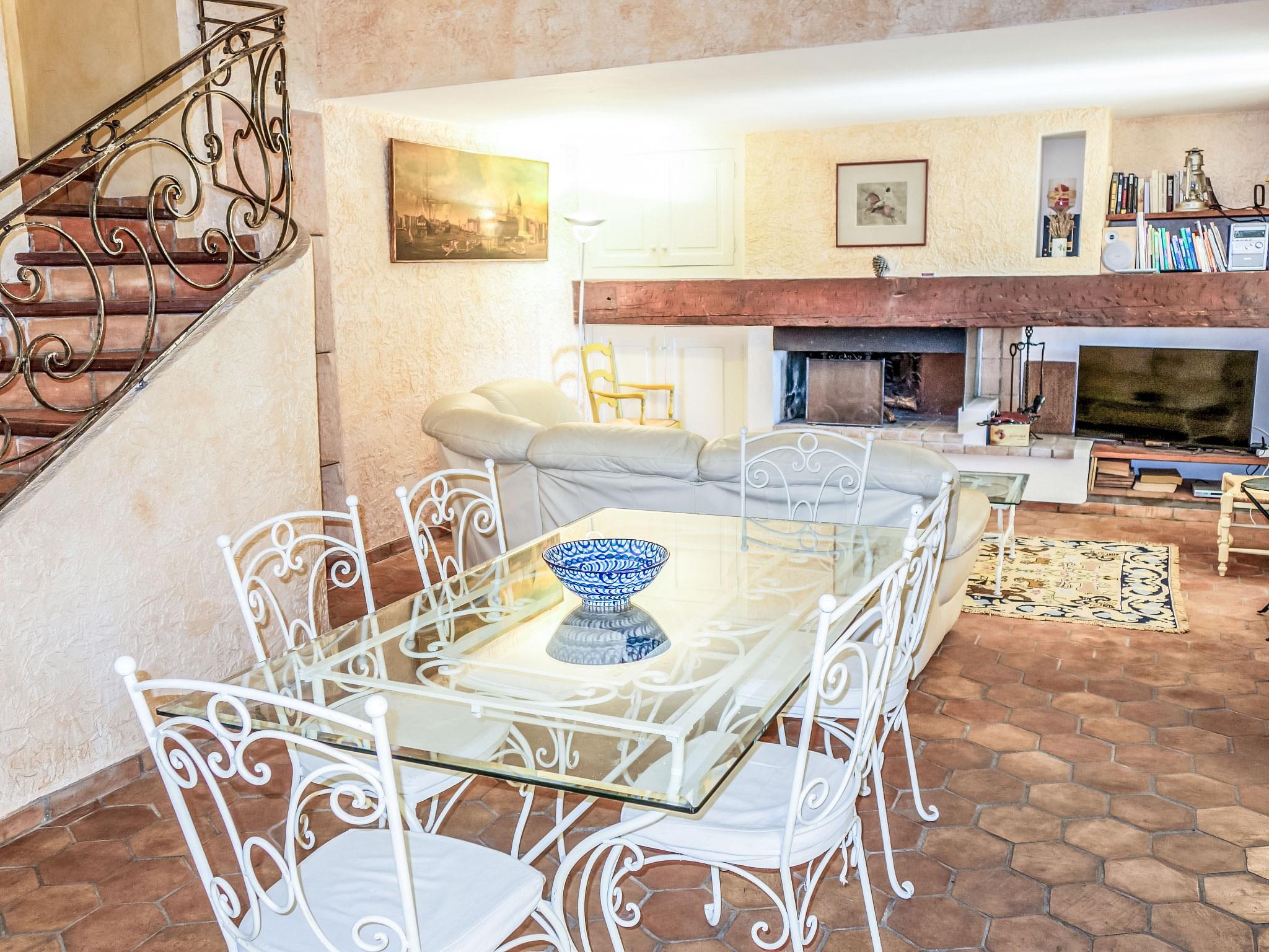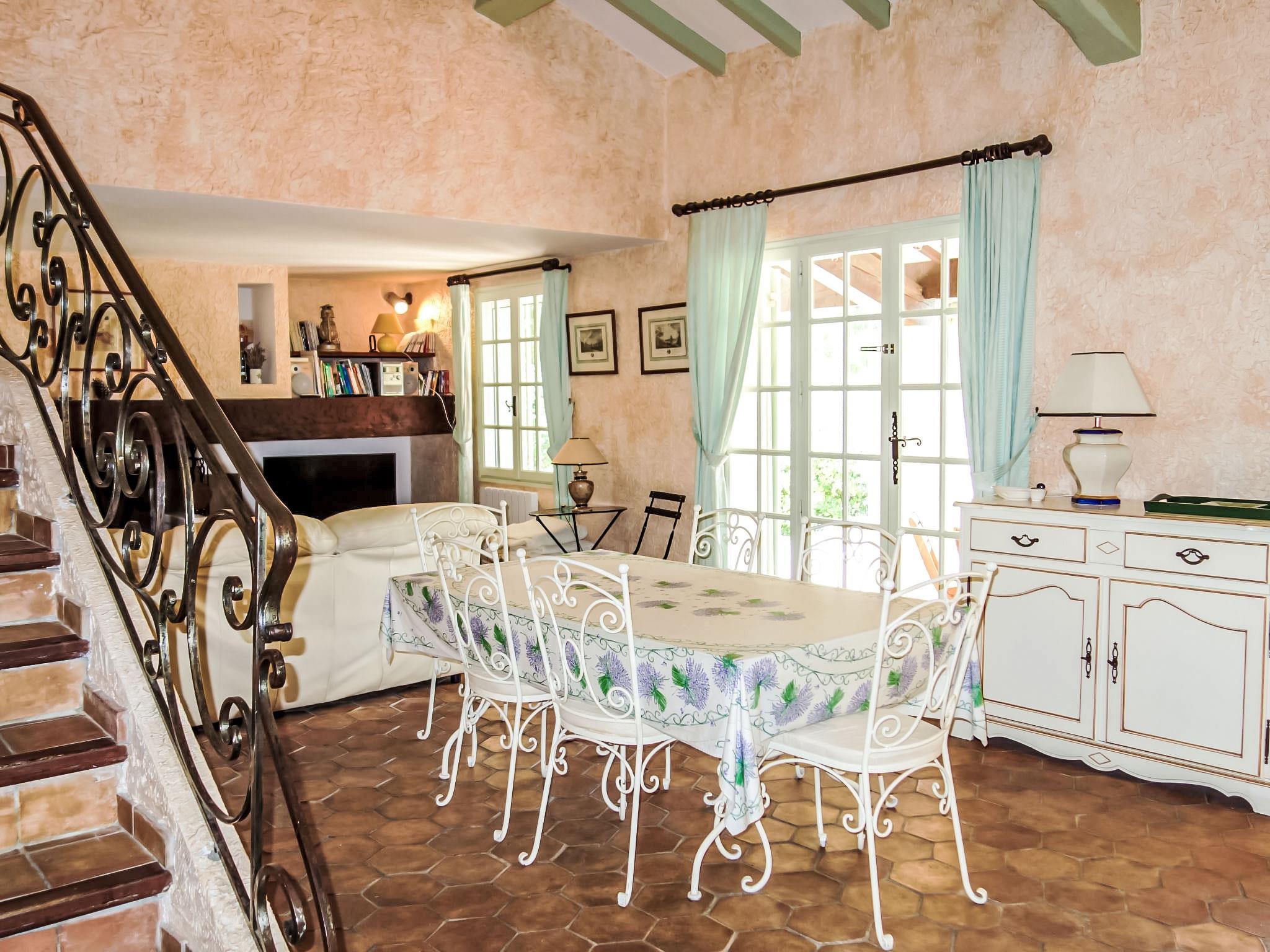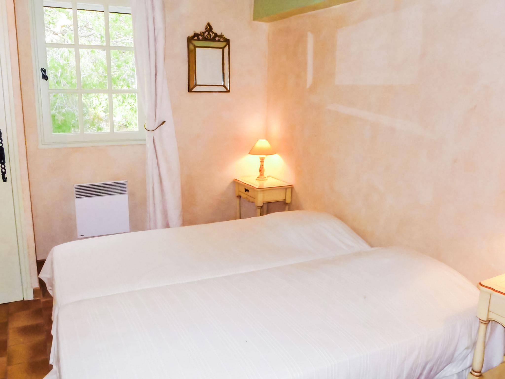 5-room villa 145 m2 on 2 levels. Comfortable furnishings: living/dining room with TV, hi-fi system, DVD and air conditioning. Exit to the terrace. 1 room with 1 french bed (160 cm, length 200 cm), bath/shower and air conditioning. Kitchen (oven, dishwasher, 3 ceramic glass hob hotplates, freezer, electric coffee machine, combination microwave). Sep. WC. Upper floor: 1 room with 2 beds (90 cm, length 200 cm). 1 room with 2 beds (80 cm, length 190 cm). 1 room with 1 french bed (160 cm, length 200 cm). Exit to the balcony. Shower, sep. WC, double hand-basin. Electric heating. Balcony 10 m2, south-west facing position, terrace 30 m2, roofed, south-west facing position. Terrace furniture, electric barbecue. Partial view of the sea. Facilities: washing machine, iron, baby cot for up to 2 year olds. Internet (WiFi, free). Parking (fenced 3 cars). Please note: TV only FR. Smoke alarm. 83112 000182 WX