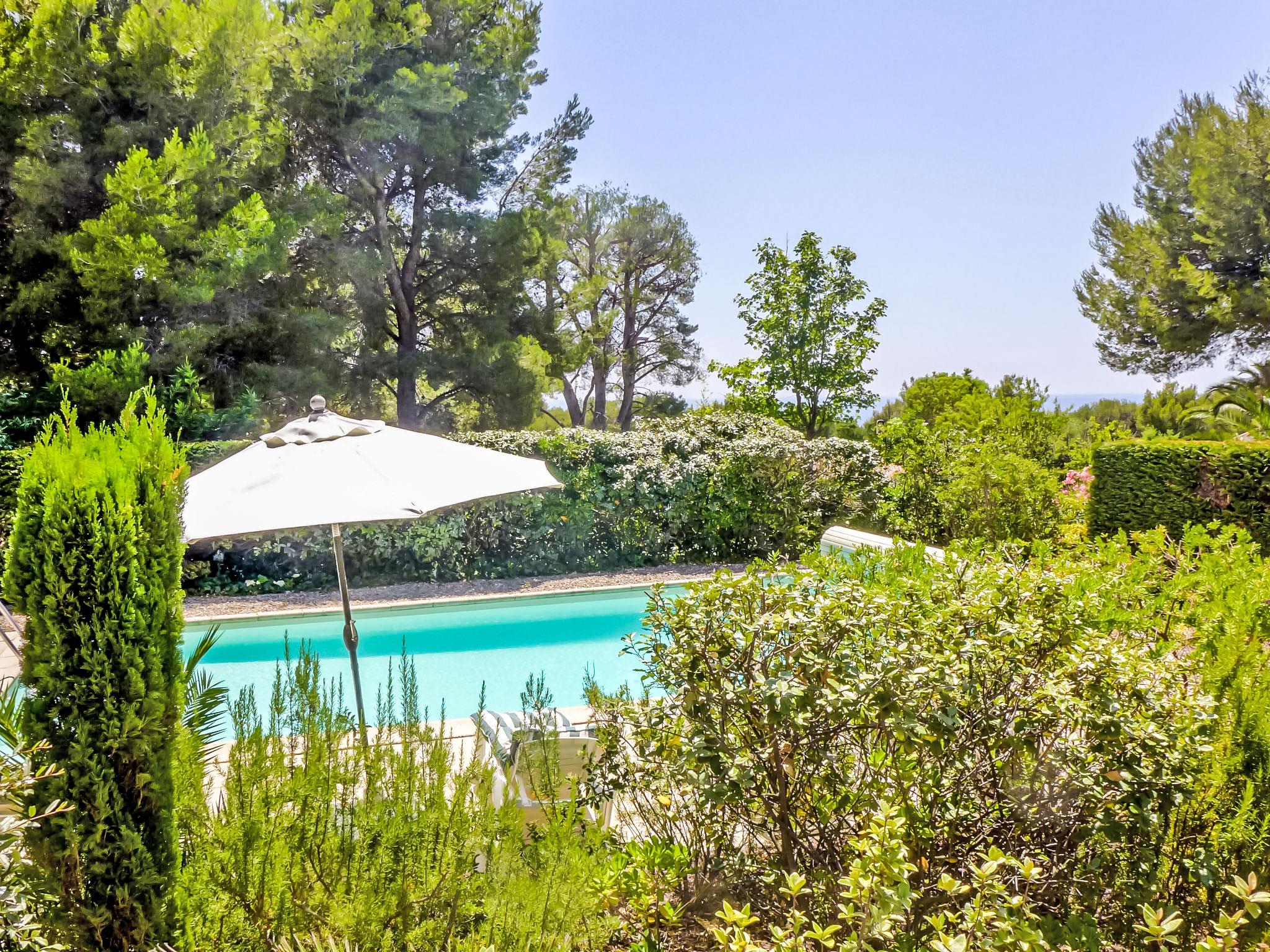 Port d'Alon: Comfortable villa "Domaine Port d'Alon", 2 storeys, surrounded by trees. Outside the resort, 5 km from the centre of Saint-Cyr-sur-Mer, in a quiet position in the residential district, 800 m from the sea, in the countryside. Private: garden 1'850 m2 (fenced) wildlife garden and trees, swimming pool angular (10 x 5 m, depth 110 - 180 cm, seasonal availability: 15.Jun. - 28.Sep.) with shutter cover. Grocery 5 km, restaurant 5 km, bus stop "Fregate" 7 km, sandy beach "La Madrague" 5 km, shingle beach "Calanque de Port d'Alon" 800 m, outdoor swimming pool 600 m. Sports harbour 5 km, golf course (18 hole) 5 km, tennis 400 m. Nearby attractions: Aqualand 4 km. Hiking paths: Sainte Baume, Sainte Victoire, Calanques Port-Cros, Porquerolles, Ile verte, Embiez, Figuerolles, Cassis. Please note: car recommended. Residence with electric gates. The keys‘ handover takes place by the agency Interhome in SaintCyr La Madrague, 4 km. The villa is situated in the "Port d'Alon" urbanization on a steep coastline over the sea. The development is guarded 24 hours/day.