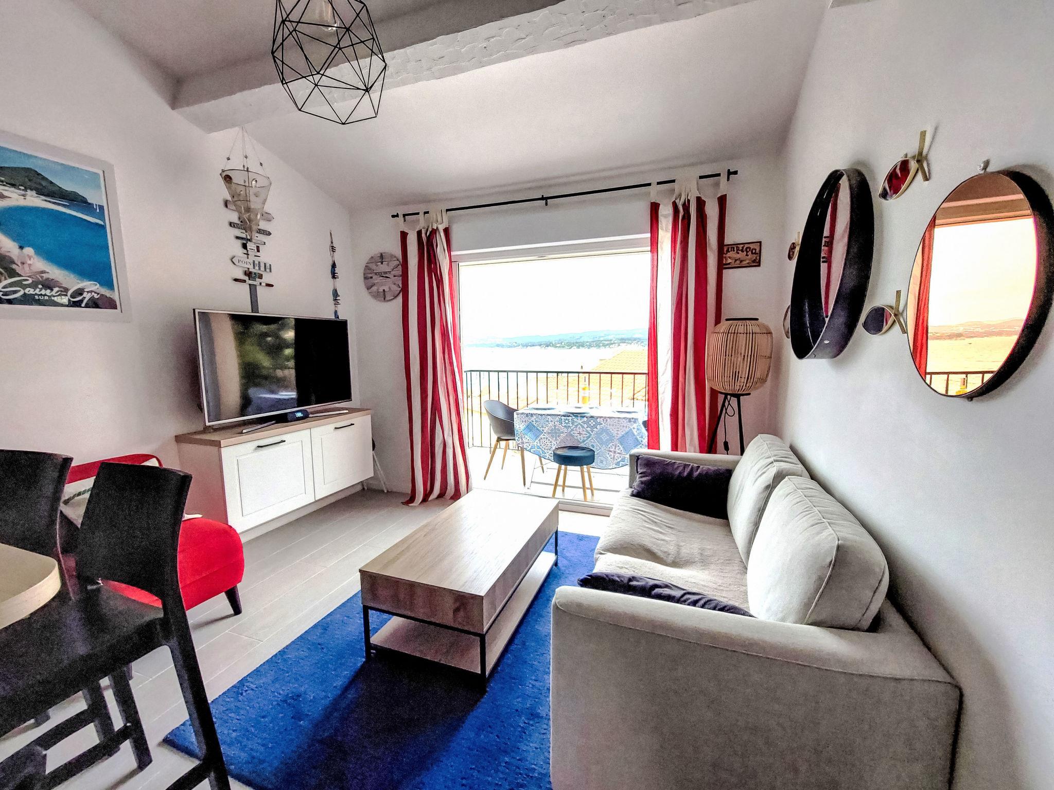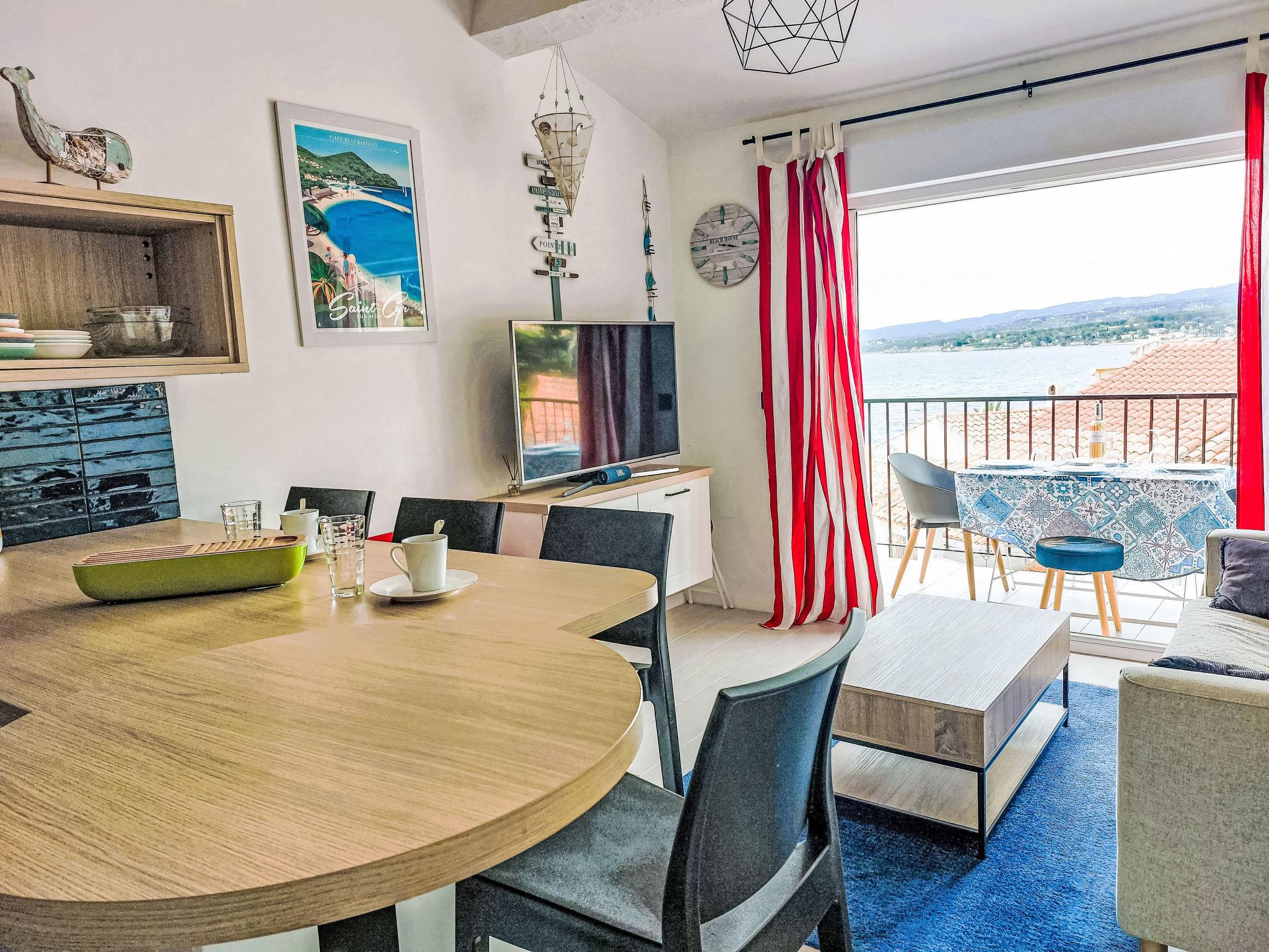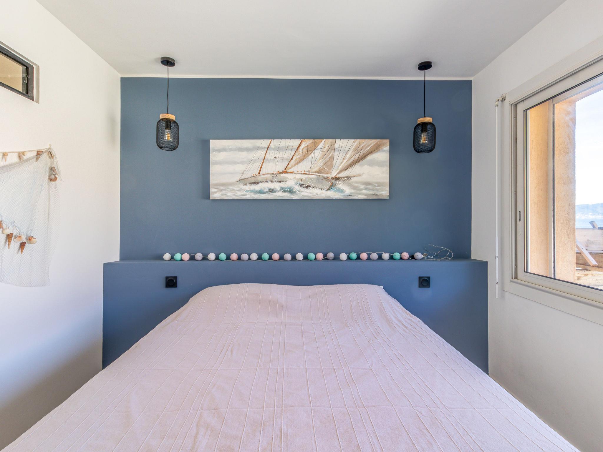3-room terraced house 50 m2 on 2 levels. Bright, fully renovated in 2020, comfortable and beautiful furnishings: upper floor: 1 room with 1 french bed (1 x 160 cm, length 200 cm), air conditioning. Shower, sep. WC. 2nd upper floor: living/dining room with TV and air conditioning. Exit to the terrace. 1 small room with 1 pull-out bed (2 x 80 cm, length 190 cm), air conditioning. Open kitchen (oven, dishwasher, 2 induction hot plates, toaster, kettle, microwave, freezer, electric coffee machine, Capsules for coffee machine (Nespresso) extra). Forced-air heating. Terrace 5 m2. Terrace furniture. Very beautiful view of the sea and the port. Facilities: washing machine. Internet (WiFi, free). Garage, height 270 cm, width 350 cm. Please note: TV only FR. Smoke alarm. access to the house is through the garage on the ground floor. 83112000646Z5