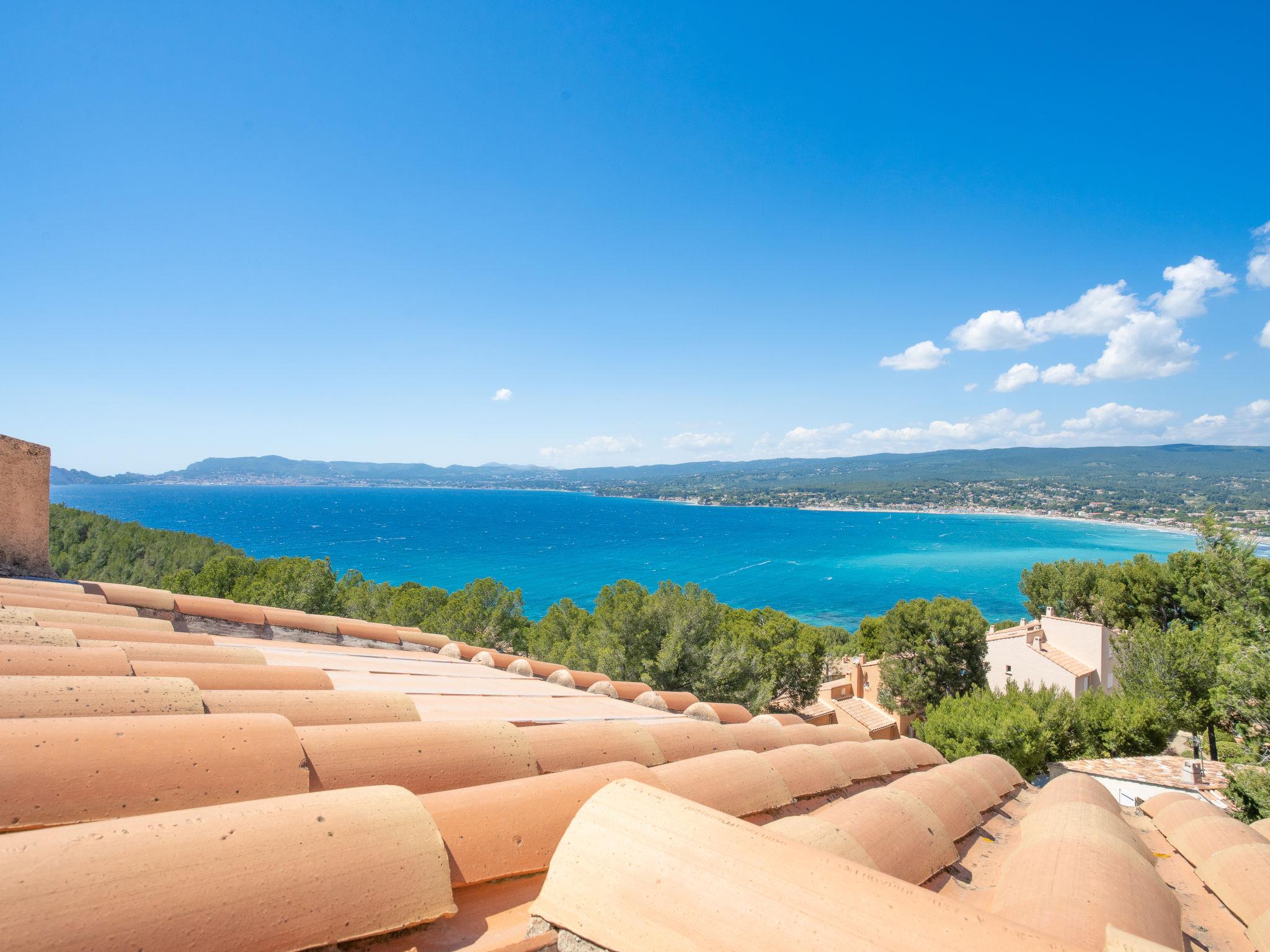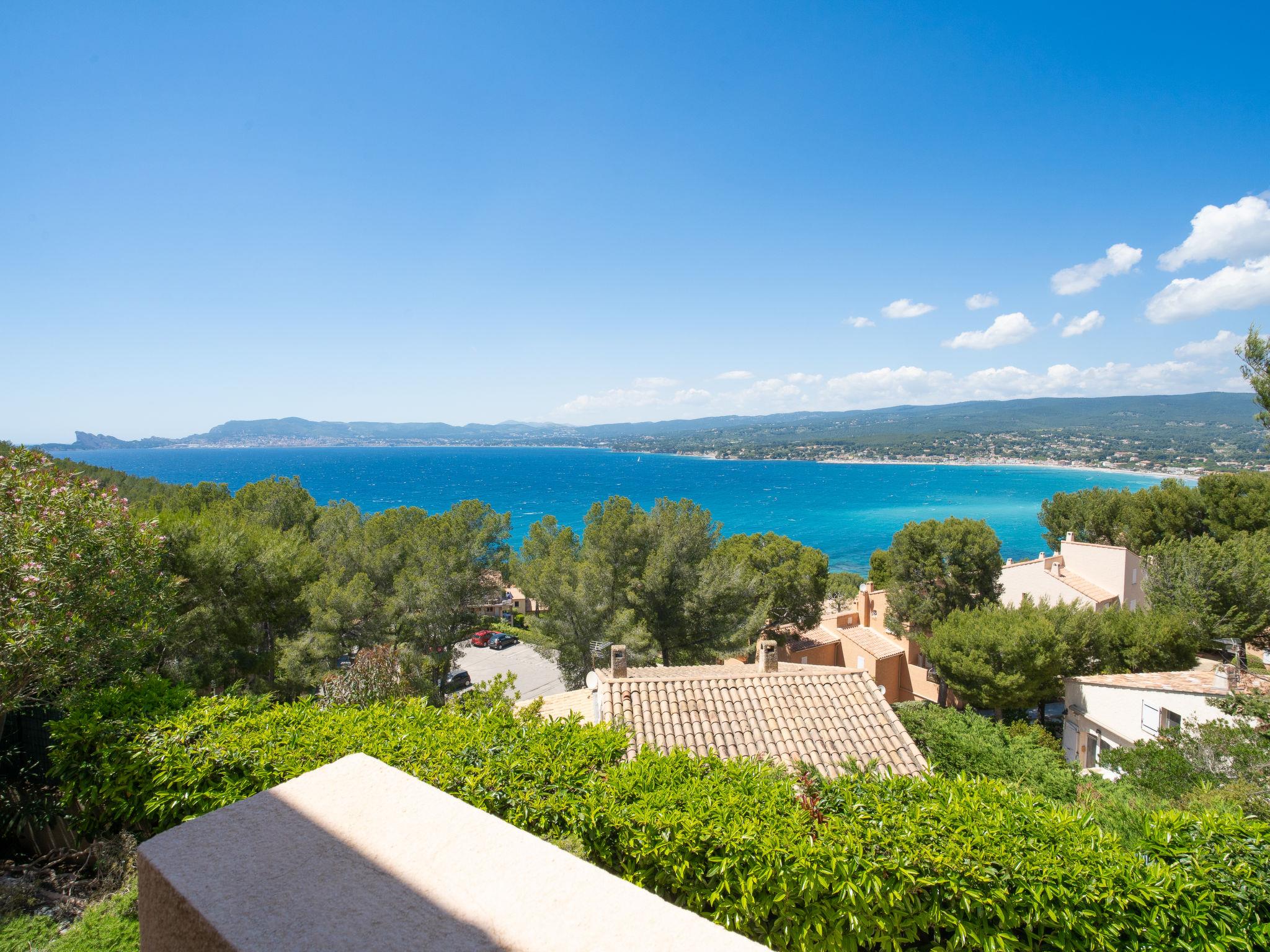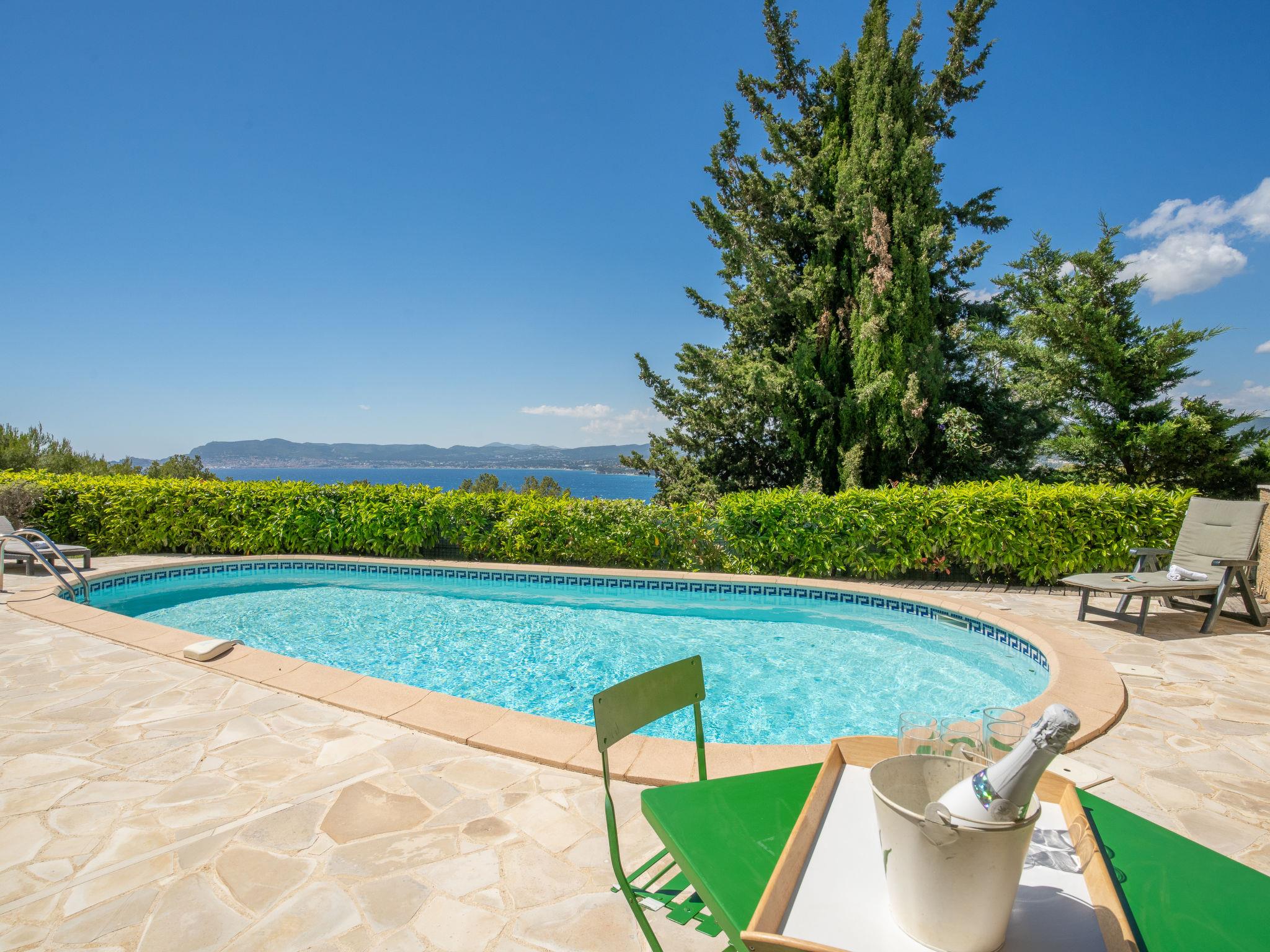 6-room villa 150 m2. Practical and beautiful furnishings: living/dining room with TV (flat screen), hi-fi system and air conditioning. Exit to the terrace. Kitchen (oven, dishwasher, 3 induction hot plates, microwave, freezer, electric coffee machine) with dining nook and TV. Exit to the terrace. Shower, sep. WC. On the lower ground floor: small living/dining room with TV and air conditioning. Exit to the swimming pool. Entrance hall with 1 double sofabed (130 cm, length 190 cm). 1 room with 1 french bed (140 cm, length 190 cm). Exit to the swimming pool. Kitchenette (2 induction hot plates, microwave). Shower/WC. Upper floor: 1 room with 1 french bed (160 cm, length 200 cm). Exit to the balcony. 1 room with 1 x 2 bunk beds (90 cm, length 190 cm). 1 room with 1 french bed (140 cm, length 190 cm). Bathroom, sep. WC, double hand-basin. Electric heating, air-conditioning, forced-air heating. Balcony 10 m2, terrace 30 m2, roofed, north-west facing position. Terrace furniture, barbecue. Marvellous panoramic view of the sea and the countryside. Facilities: washing machine, iron. Internet (WiFi, free). Parking (fenced 2 cars). Please note: TV only FR. Smoke alarm. 83112000235CG