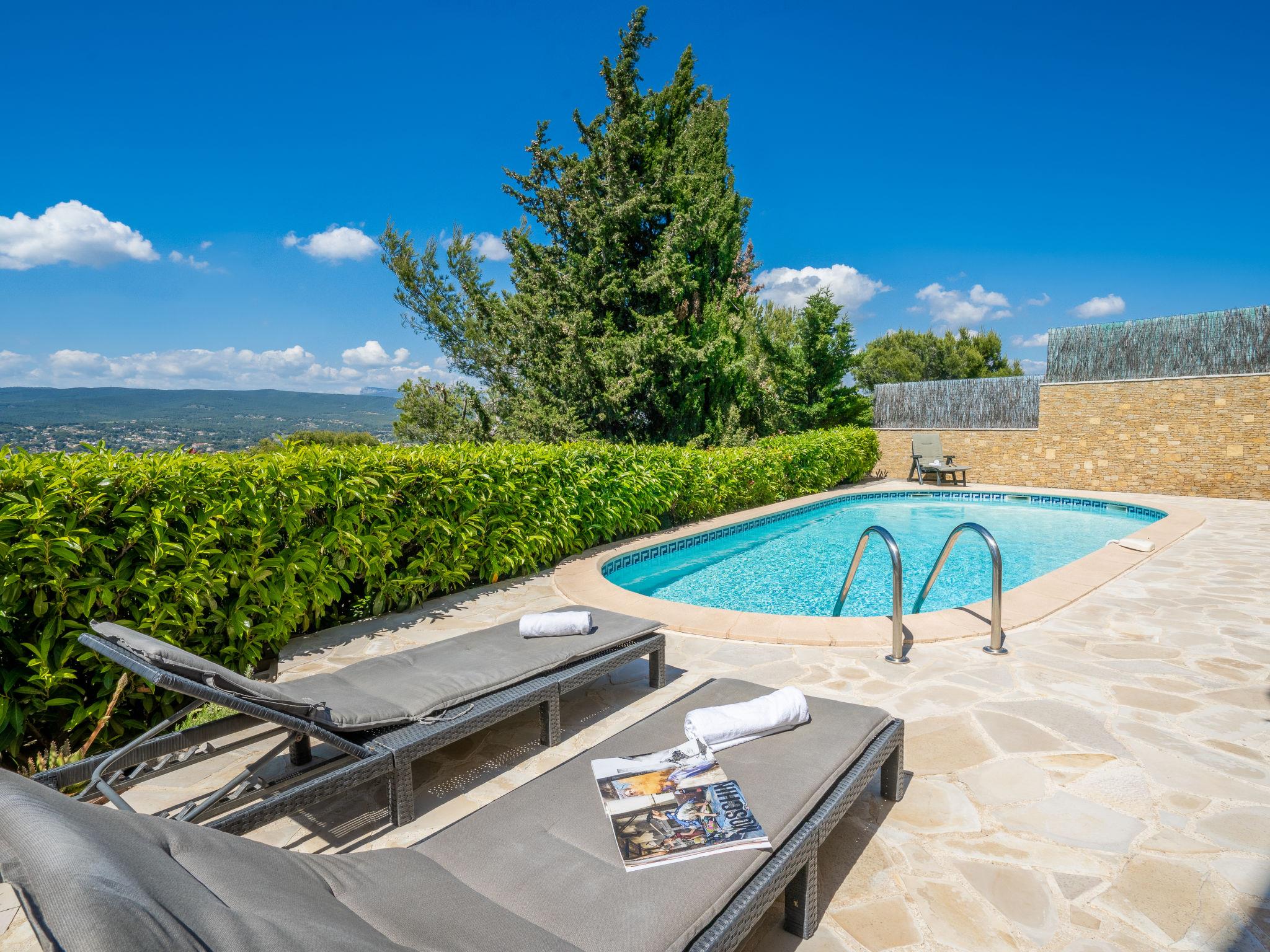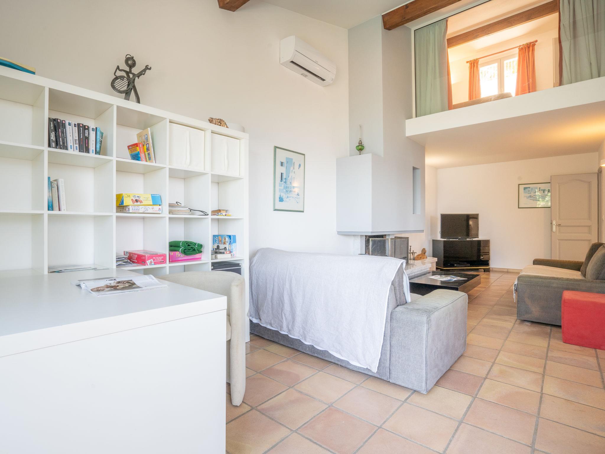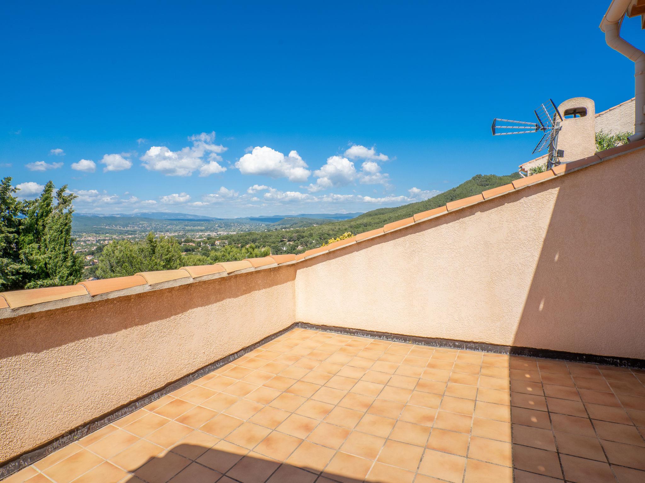 6-room villa 150 m2. Practical and beautiful furnishings: living/dining room with TV (flat screen), hi-fi system and air conditioning. Exit to the terrace. Kitchen (oven, dishwasher, 3 induction hot plates, microwave, freezer, electric coffee machine) with dining nook and TV. Exit to the terrace. Shower, sep. WC. On the lower ground floor: small living/dining room with TV and air conditioning. Exit to the swimming pool. Entrance hall with 1 double sofabed (130 cm, length 190 cm). 1 room with 1 french bed (140 cm, length 190 cm). Exit to the swimming pool. Kitchenette (2 induction hot plates, microwave). Shower/WC. Upper floor: 1 room with 1 french bed (160 cm, length 200 cm). Exit to the balcony. 1 room with 1 x 2 bunk beds (90 cm, length 190 cm). 1 room with 1 french bed (140 cm, length 190 cm). Bathroom, sep. WC, double hand-basin. Electric heating, air-conditioning, forced-air heating. Balcony 10 m2, terrace 30 m2, roofed, north-west facing position. Terrace furniture, barbecue. Marvellous panoramic view of the sea and the countryside. Facilities: washing machine, iron. Internet (WiFi, free). Parking (fenced 2 cars). Please note: TV only FR. Smoke alarm. 83112000235CG