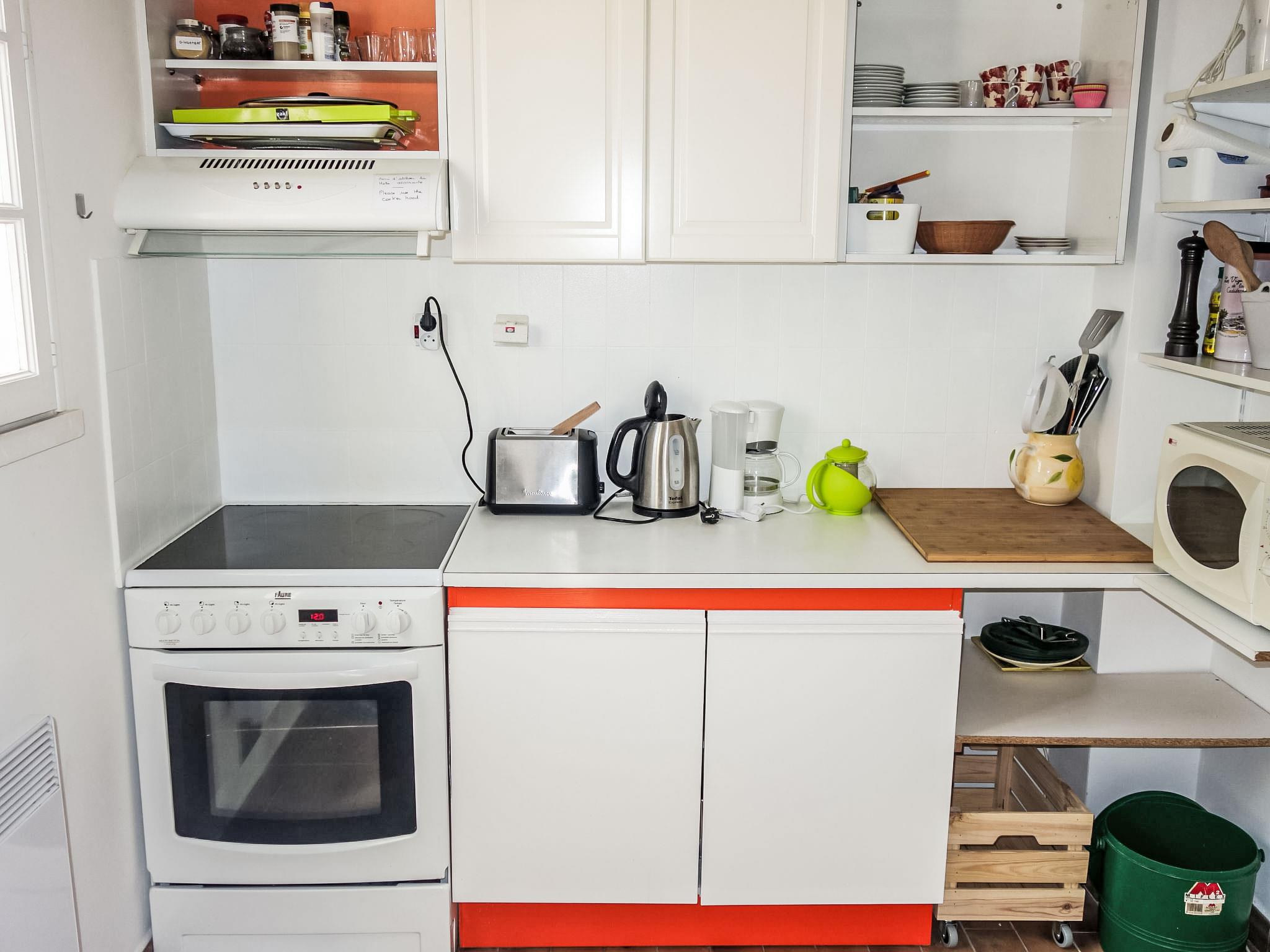 3-room apartment 65 m2 on 1st floor. Spacious and bright, partly renovated in 2018, comfortable furnishings: living/dining room with 1 double sofabed (140 cm, length 190 cm), TV and air conditioning. Exit to the terrace. 1 room with 1 french bed (160 cm, length 200 cm). 1 room with 2 beds (90 cm, length 190 cm). Kitchen (oven, dishwasher, 4 ceramic glass hob hotplates, microwave, freezer, electric coffee machine, Capsules for coffee machine (Nespresso + Filtre) extra). Bathroom, sep. WC. Electric heating. Large terrace 20 m2, north facing position. Terrace furniture, electric barbecue. View of the sea. Facilities: washing machine, iron, children's high chair, baby cot for up to 2 year olds. Internet (WiFi, free). Please note: TV only FR. Smoke alarm. 83112 000237 3G