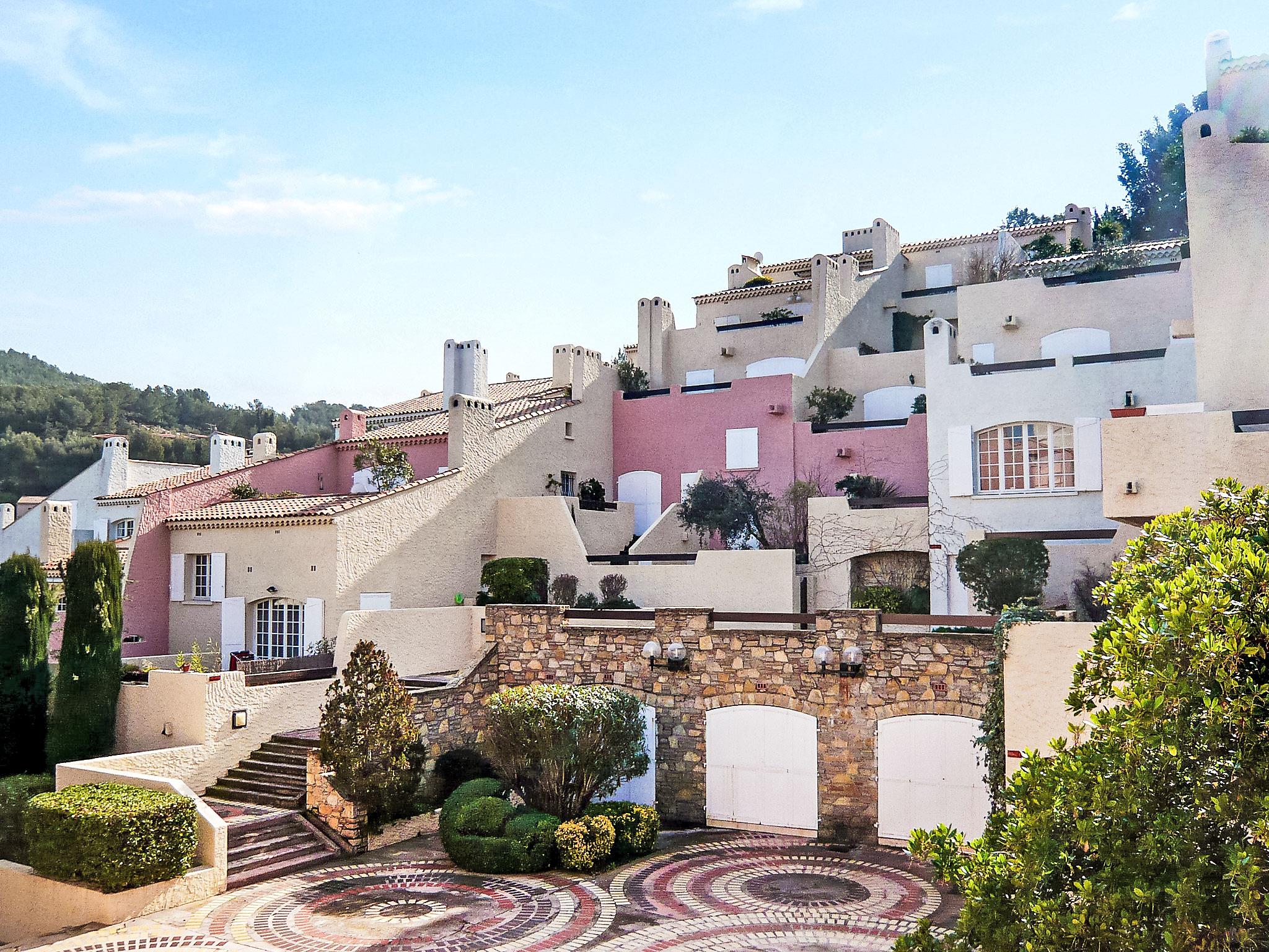 La Madrague: Residence "Hameau la Madrague". In an elevated position, 200 m from the sea. Parking (limited number of spaces). Grocery 100 m, supermarket 3 km, restaurant 200 m, bus stop "Le Viguier" 2.1 km, railway station "Saint Cyr les Lecques-La Cadière" 3.1 km, sandy beach "La madrague" 300 m, rocky beach "la reinette" 200 m. Sports harbour 300 m, golf course (18 hole) 4 km, tennis 2 km. Nearby attractions: Aqualand 3 km. Hiking paths: Sainte Baume, Sainte Victoire, Calanques Port-Cros, Porquerolles, Ile verte, Embiez, Figuerolles, Cassis. Please note: the keys‘ handover takes place by the agency INTERHOME in St Cyr /La Madrague. The photograph shows a typical example. Additional accommodations can be booked. Please note: apartments accessible via long sets of steps. Traffic prohibited to vehicles in the residence. The grocers shop is situated 100 m away and is open from 1st April to 30th September.