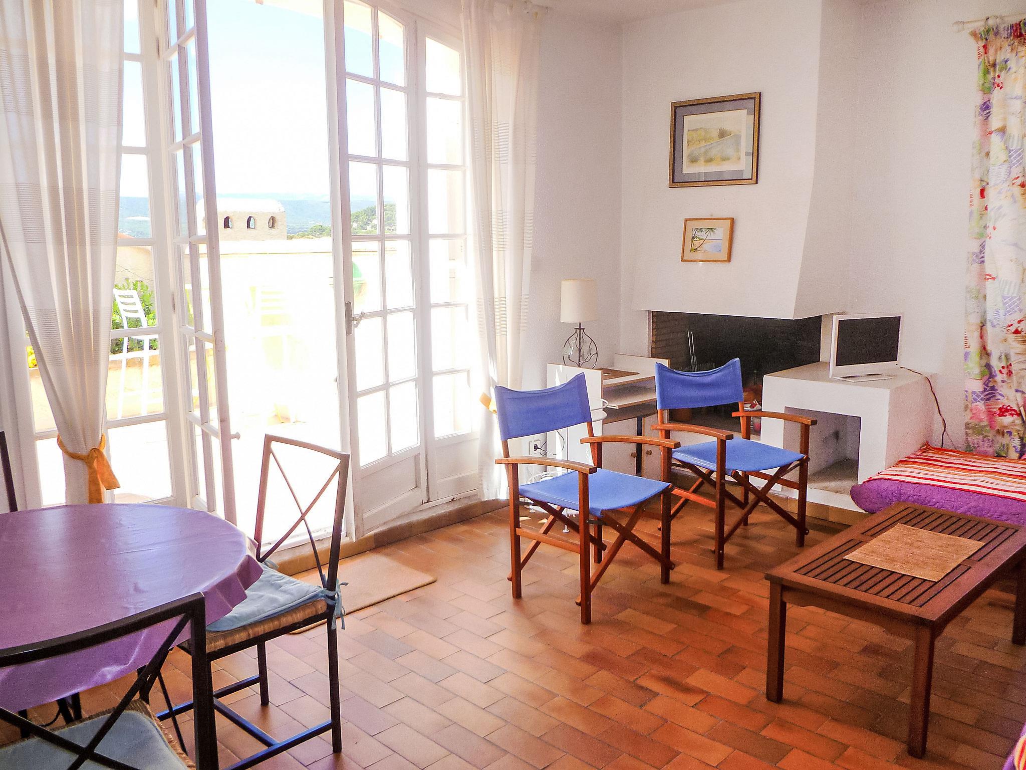 3-room apartment 40 m2 on 3rd floor. Living/dining room with TV. Exit to the terrace. 1 room with 1 double bed (2 x 80 cm, length 190 cm). Small sleeping alcove 8 m2, with sloping ceilings, ceiling height 80 - 300 cm with 2 beds (80 cm, length 190 cm). Exit to the terrace. Open kitchen (oven, dishwasher, 4 ceramic glass hob hotplates, toaster, kettle, microwave, freezer, electric coffee machine). Bath/WC. Electric heating. Terrace 15 m2, north-west facing position and north-east facing position. Terrace furniture, electric barbecue. Facilities: washing machine. Internet (WiFi, extra). Please note: maximum 1 pet/ dog allowed. TV only FR. Smoke alarm. Please note: the attic cabin is separate, accessible from the terrace. Cabin dimensions: length 4.70 m / 1.80 m width. Free parking area with limited number, in the parking lot of the residence enclosed by an electric gate at the top of the residence. Instead of an enclosed bedroom, some sleeping areas are located in an open-plan area (gallery, alcove, etc.). 83112 000267 I1